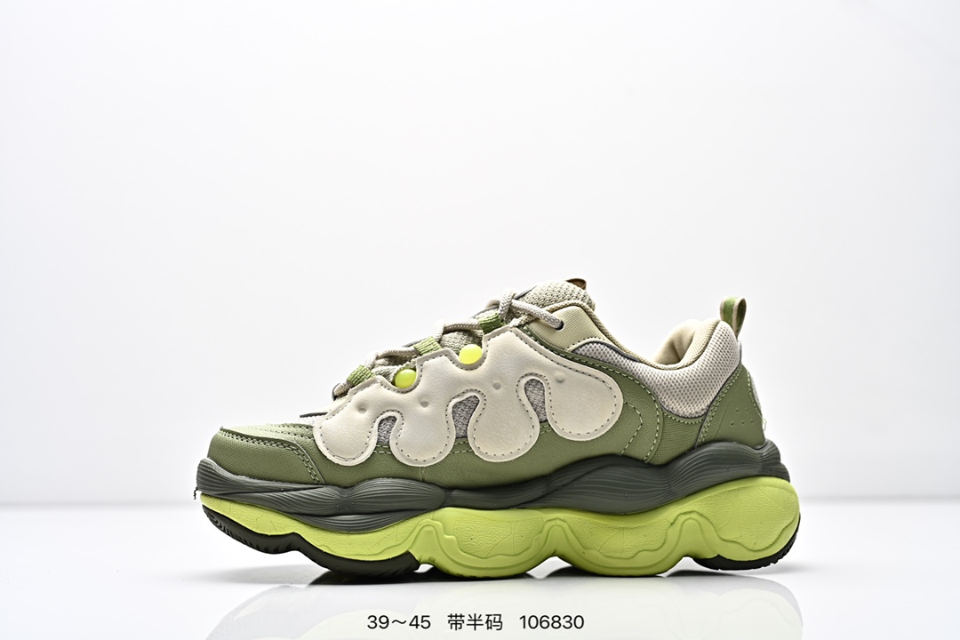从其复古鞋面提炼元素 结合板鞋鞋底做现代拼接的混搭风格设计 鞋侧身的TPU 保留滑板的耐磨性与包裹性 3厘米的厚底 增高且拉长腿部线条比例大底设计灵感来源于专业的滑板动作 磨双桥动作成型 EVA 橡胶材质 脚感舒适