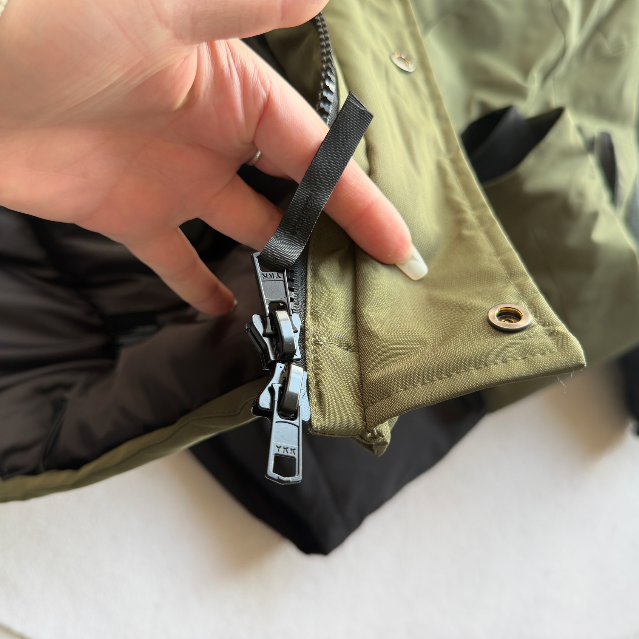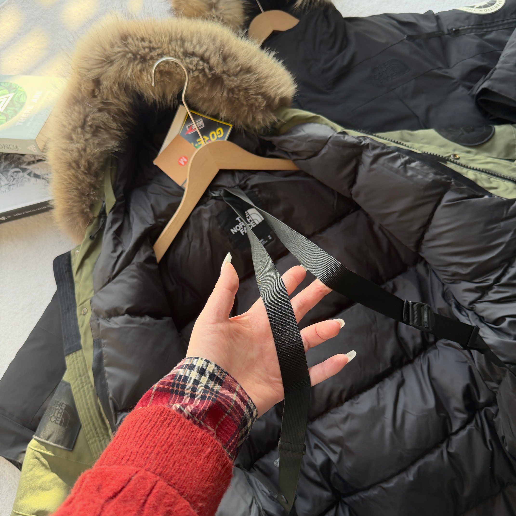 官网同步发售 a1596成新一代校服后的审美新星日系支线 略微中长款的版型 结合机能性的外观 确实是好看耐穿的一件羽绒外套 相比一些细节也比常规北面要复杂的多就导致了去操作它的人很少 整体的版型和机能性的外料不允许它像96轻薄型面料 一样有着特别蓬松的外观 但保暖度却是更出色的 连帽款毛领可拆卸 七颗按扣连接帽子 带有帽檐的细节 多口袋复合设计 正面魔术贴开合侧边拉链 内里两个网袋和拉链 常规内袋 腰部和下摆均有调节扣可以调节