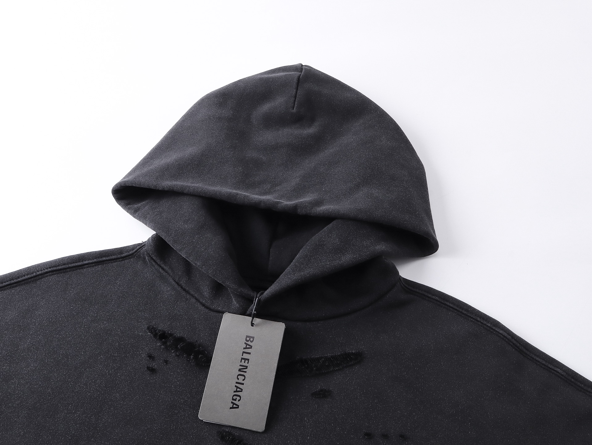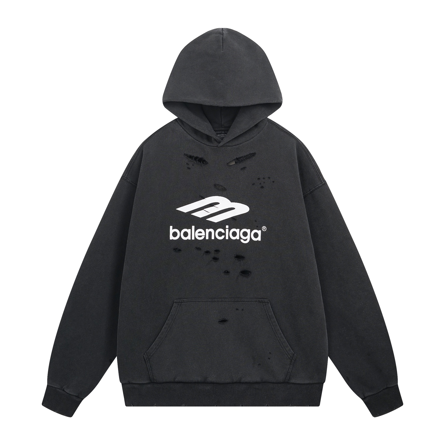 实拍图 顶级版本 官网品质 BALENCI GA 巴黎BALENCI GA 25新款 3M经典LOGO胸前印花洗水磨烂连帽卫衣 砖柜同步 洗水超重工艺 欢迎对比