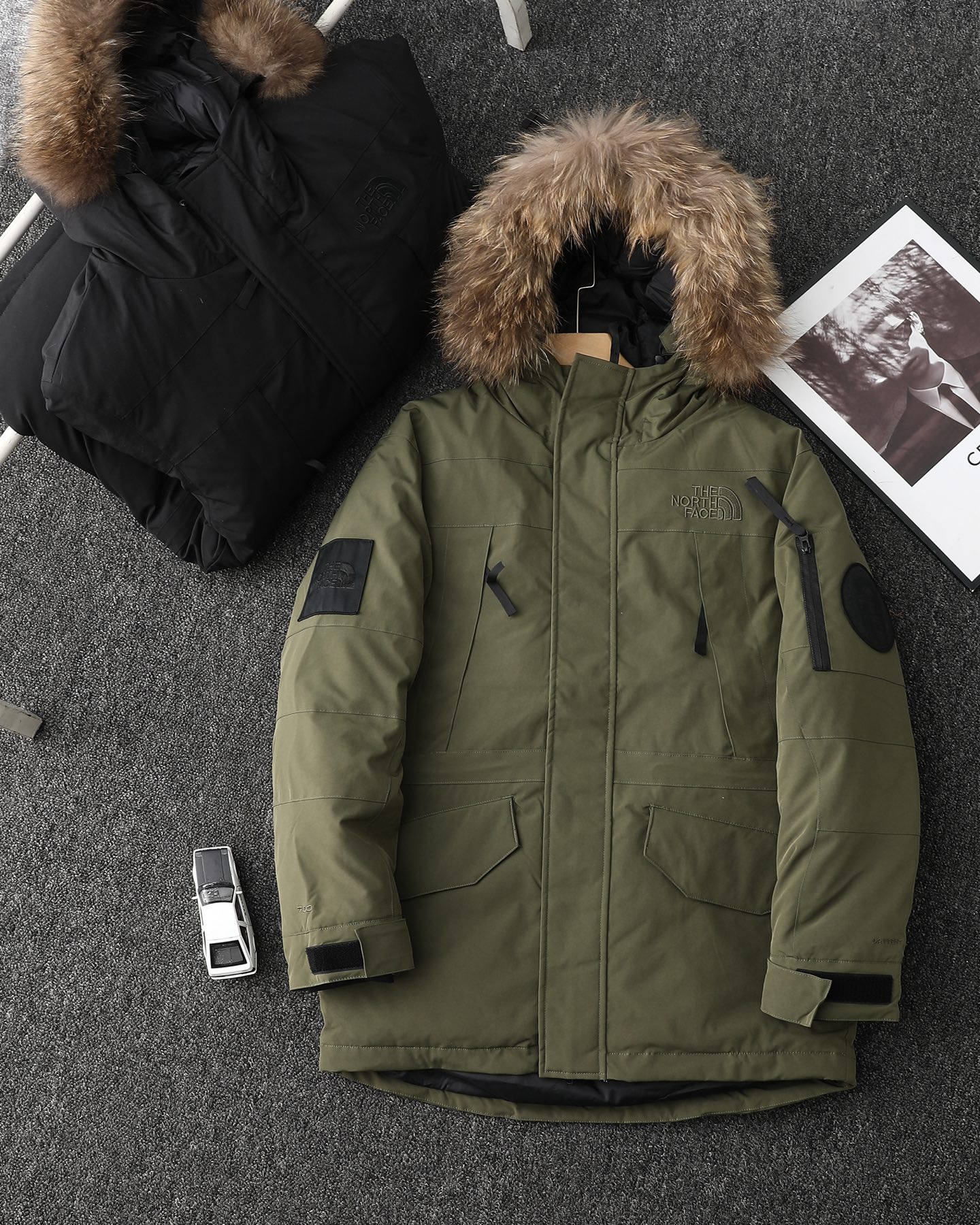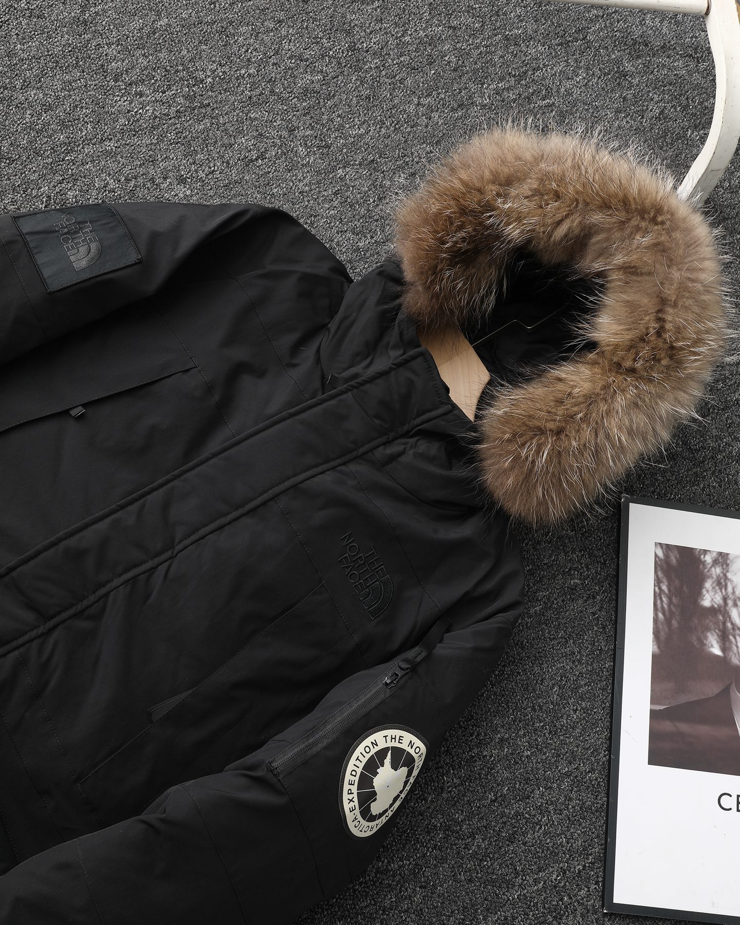 面料采用GORE TEX三层防水防风面料 鹅绒填充 真材实料 绝绝子 顶级的户外面料韧性高 耐磨损 抗撕裂都是最顶级的 全身压胶缝制工艺 超高的冲绒量 经典毛领中长款派克服版型 男女通穿 毛领可拆卸 帽前两侧和帽后都有调节抽绳 可根据使用环境自由选择造型 右臂品牌徽标标识图腾 左臂极地远征袖章 配备的口袋全部采用YKK拉链 小物收纳方便实用 整件衣服超级厚实 我称之为 行走的被窝