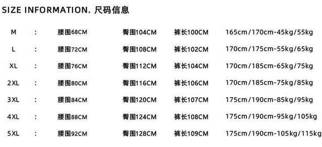 尺码 M 5XL