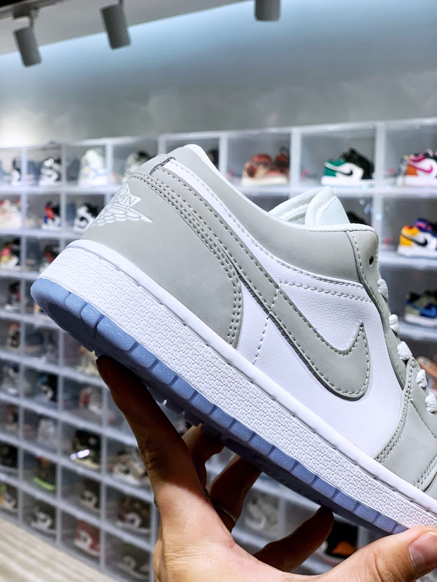 Nike Air Jordan 1 Low Wolf Grey 低帮 灰白小Dior AJ1 乔丹1代 aj1 乔1 低邦 灰白小迪奥 乔丹篮球鞋系列 夏季新品 dior灰 这款鞋子的配色神似奢品dior发售过的低帮天价鞋 鞋身采用剖层革以及合层革 配色采用狼灰色搭配梦幻蓝的鞋底 高贵典雅的的同时增加了一些青春感 鞋身采用白色皮革打造 搭配灰色框架覆盖层 鞋身两侧Swoosh Logo以灰色点缀 白色鞋舌上Jumpmacn Logo采用灰色点缀 后跟Wingsc Logo则以白色刺绣呈现 最后以白色中底搭配冰蓝透明外底完善设计收尾