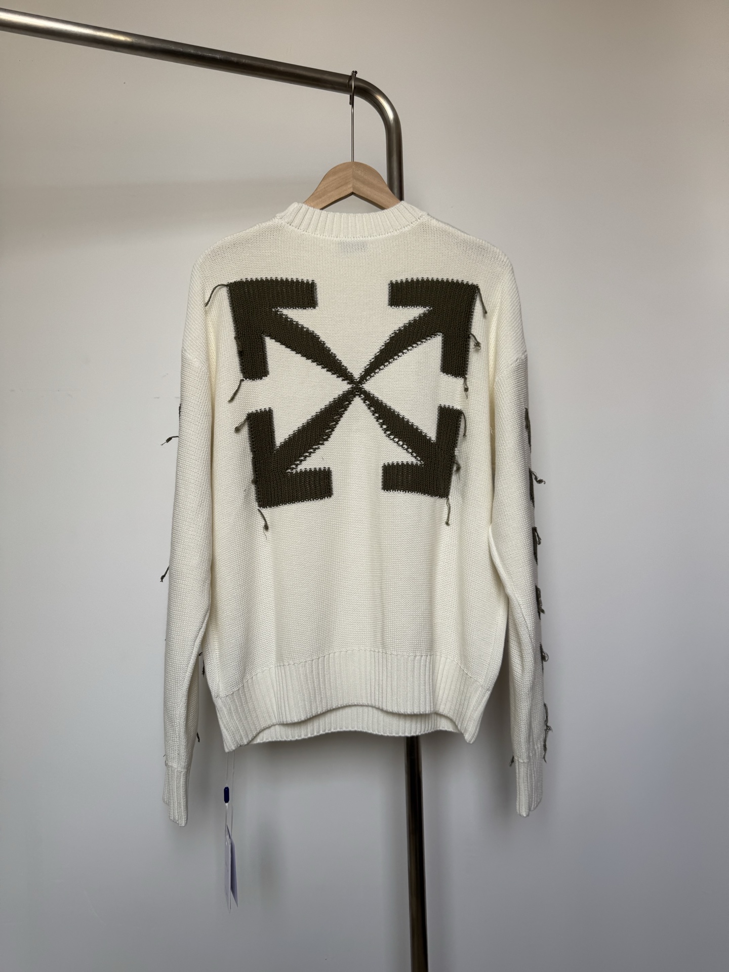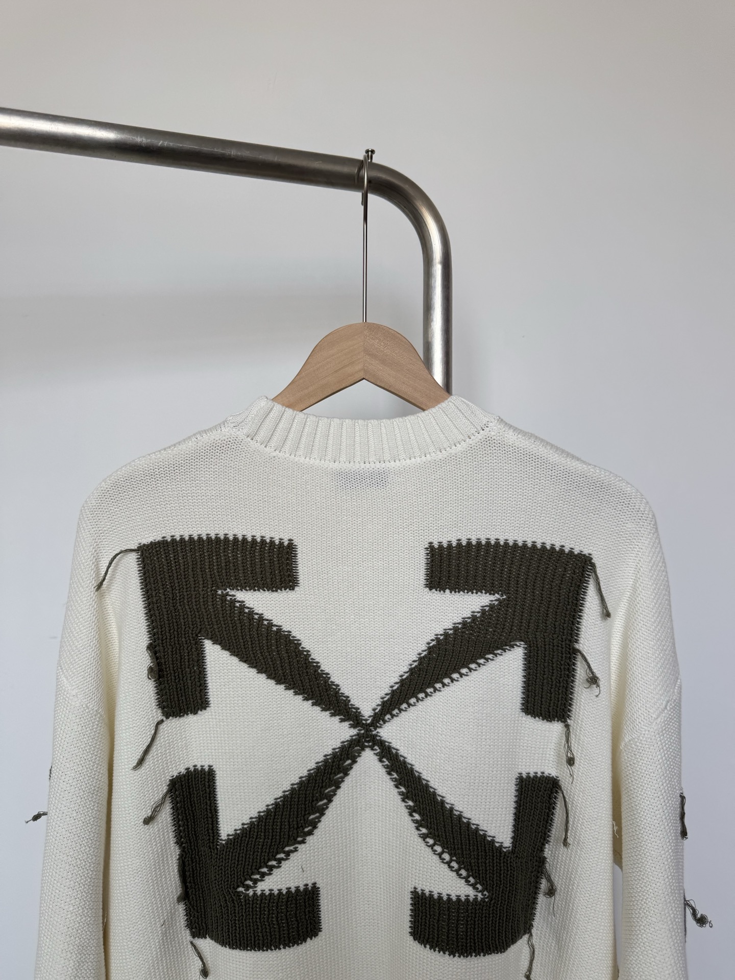 OFF WHITE经典爆款OW21FW流苏箭头图案圆领套头毛衣男女同款