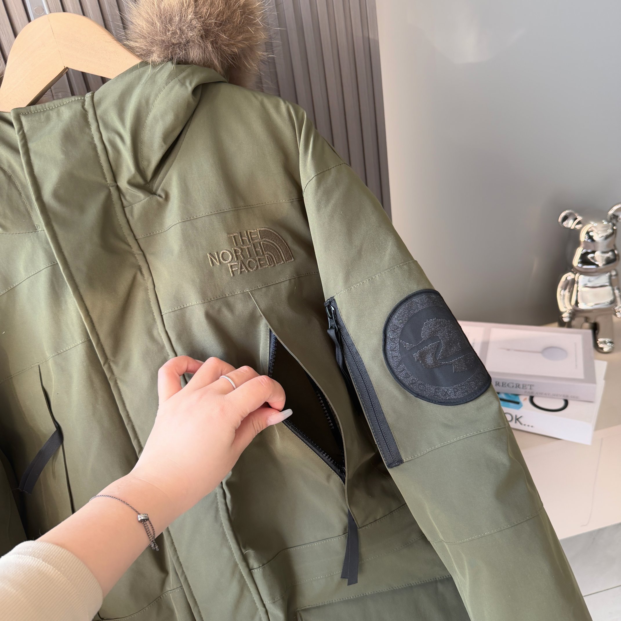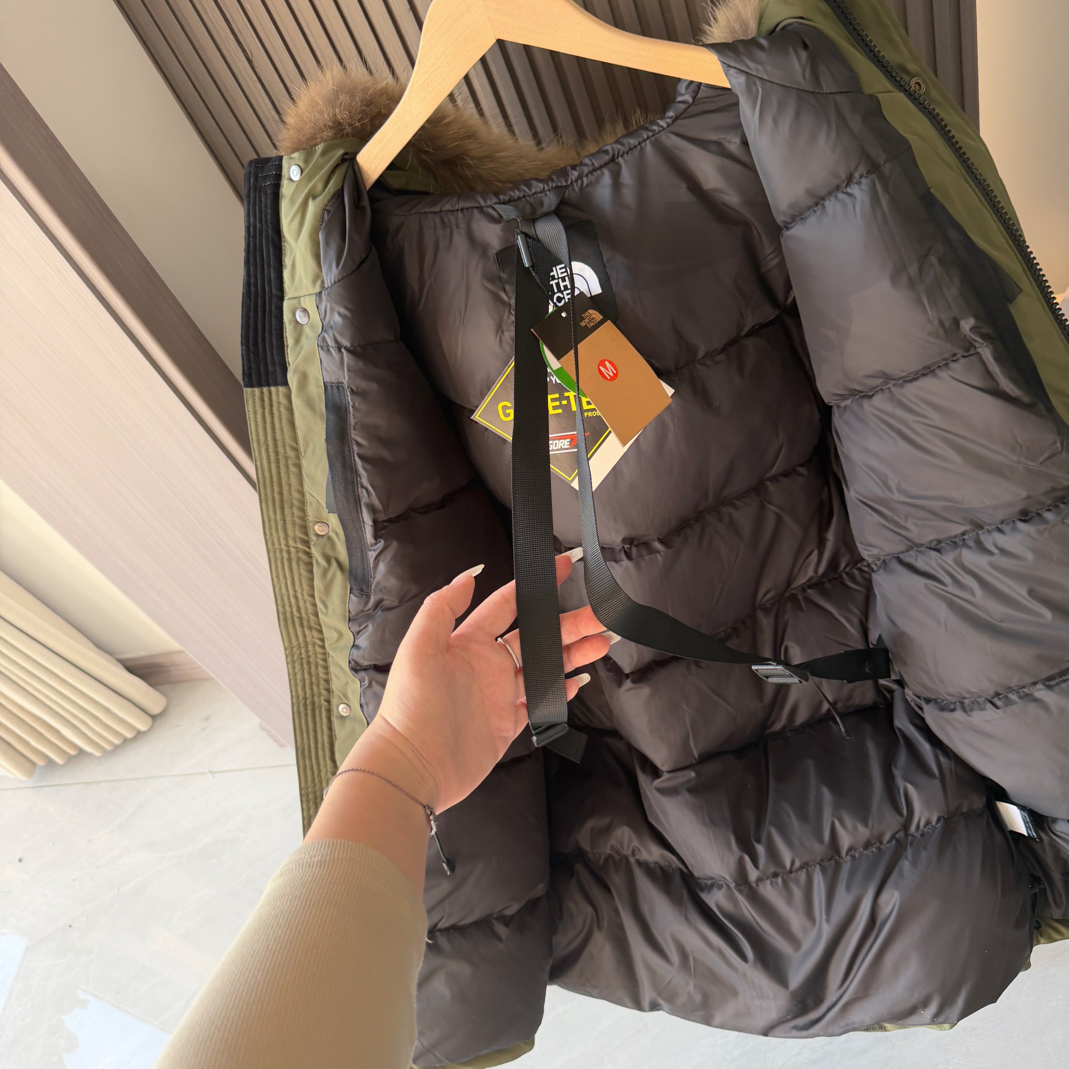 官网同步发售 a1596成新一代校服后的审美新星日系支线 略微中长款的版型 结合机能性的外观 确实是好看耐穿的一件羽绒外套 相比一些细节也比常规北面要复杂的多就导致了去操作它的人很少 整体的版型和机能性的外料不允许它像96轻薄型面料 一样有着特别蓬松的外观 但保暖度却是更出色的 连帽款毛领可拆卸 七颗按扣连接帽子 带有帽檐的细节 多口袋复合设计 正面魔术贴开合侧边拉链 内里两个网袋和拉链 常规内袋 腰部和下摆均有调节扣可以调节
