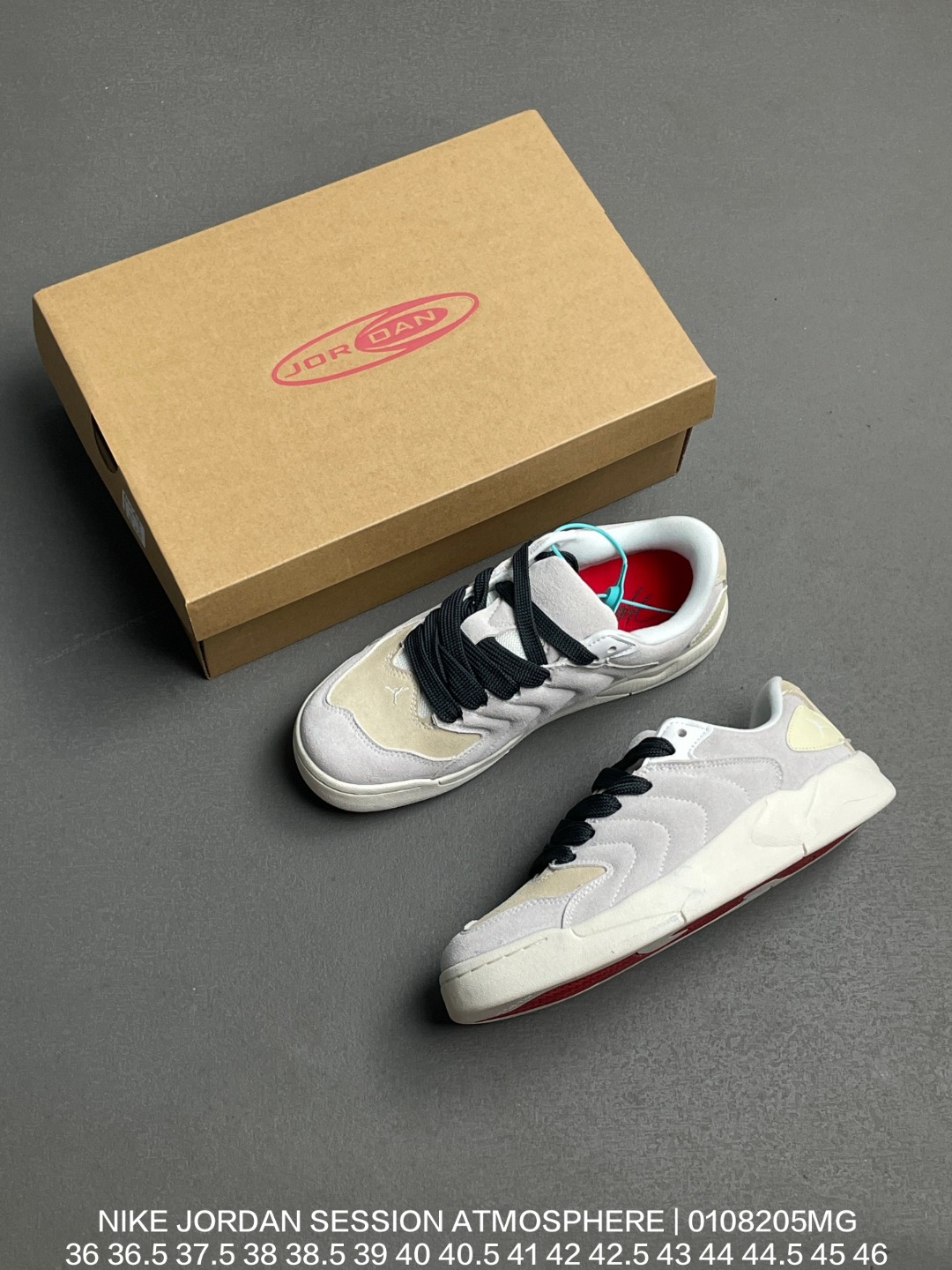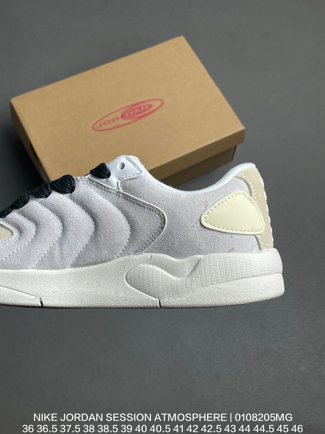 Nike 耐克 耐克 乔丹 NIKE JORDAN SESSION ATMOSPHERE 简约舒适篮球鞋 防滑耐磨 低帮 运动板鞋 Nike Rise 麂皮鞋面温柔又质感 搭配白色鞋带与牛筋底 甜酷融合好特别 设计灵感 融合90年代滑板鞋轮廓与篮球元素 主打街头复古风格 后跟点缀Jumpman Logo12 鞋款特点 材质 全皮质 翻毛皮鞋面 加厚内衬设计 被描述为 复古百搭 适合多种街头穿搭