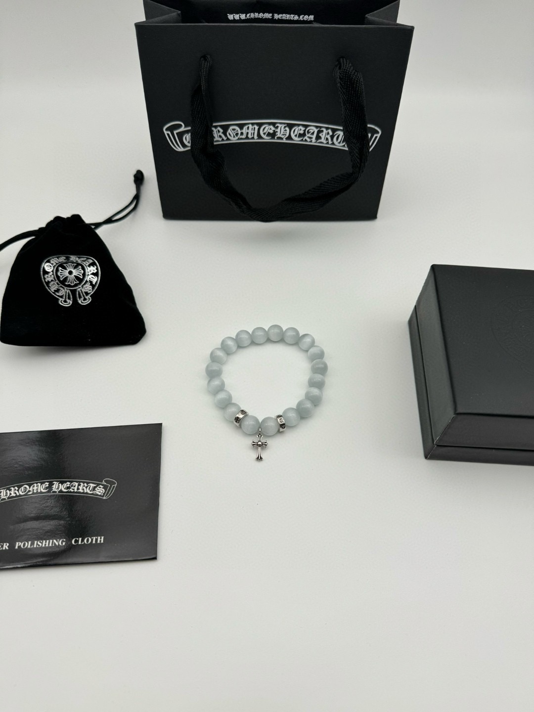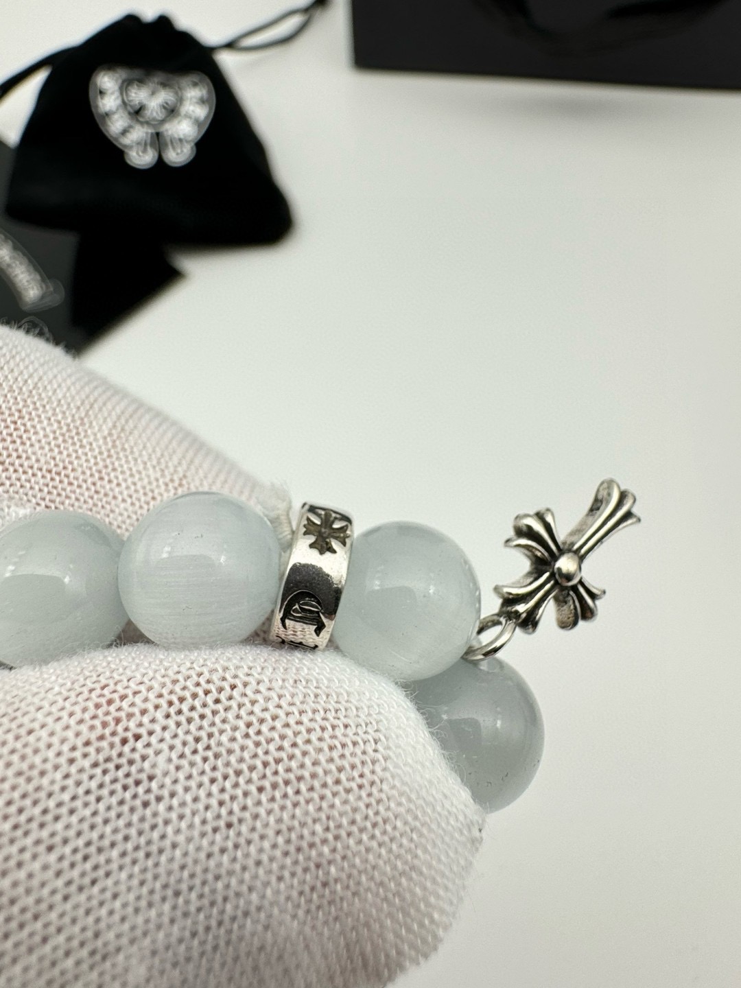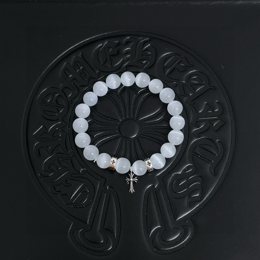 三珠 Chrome hearts克罗心白色猫眼石泰银手链
