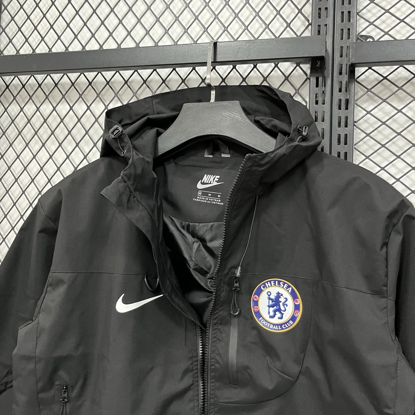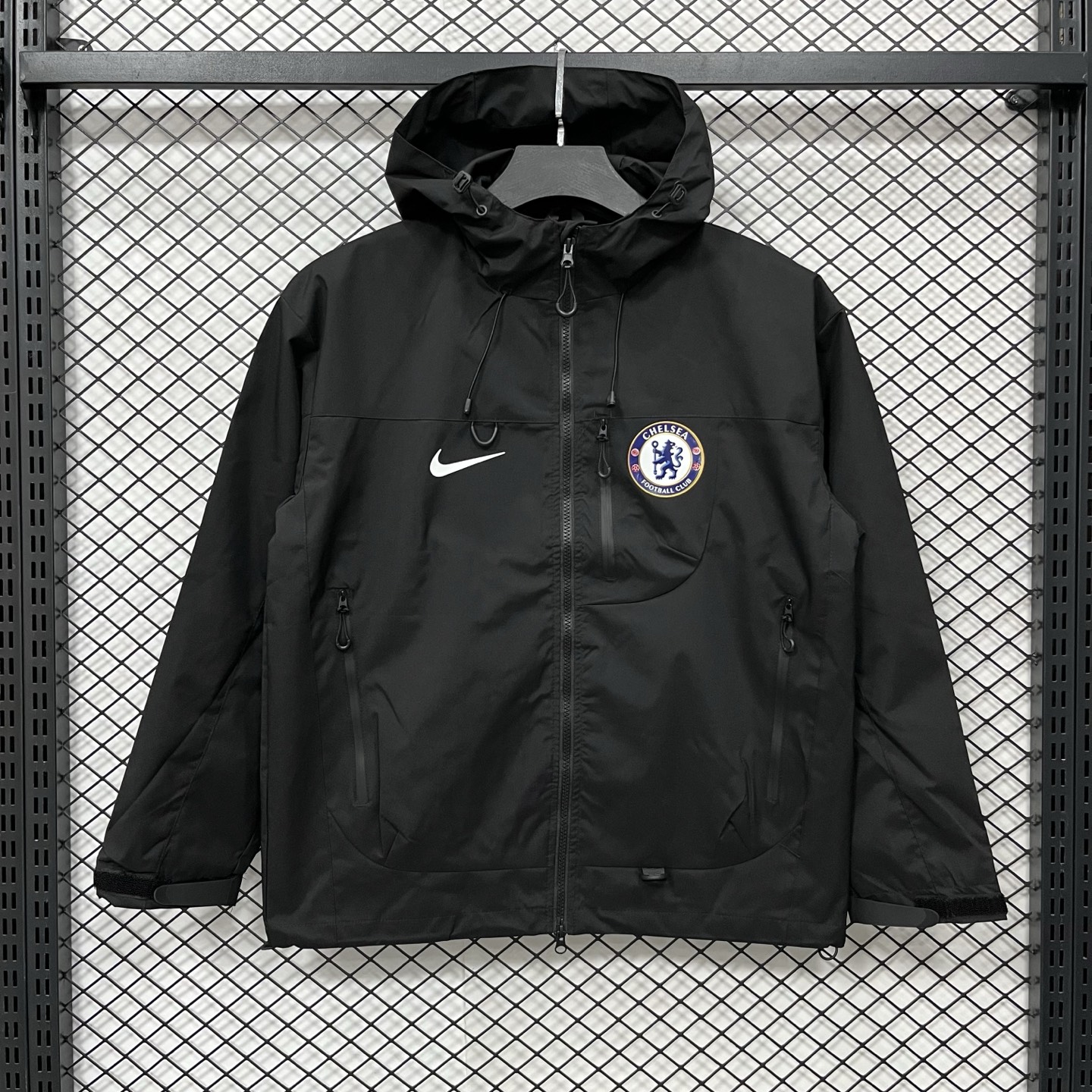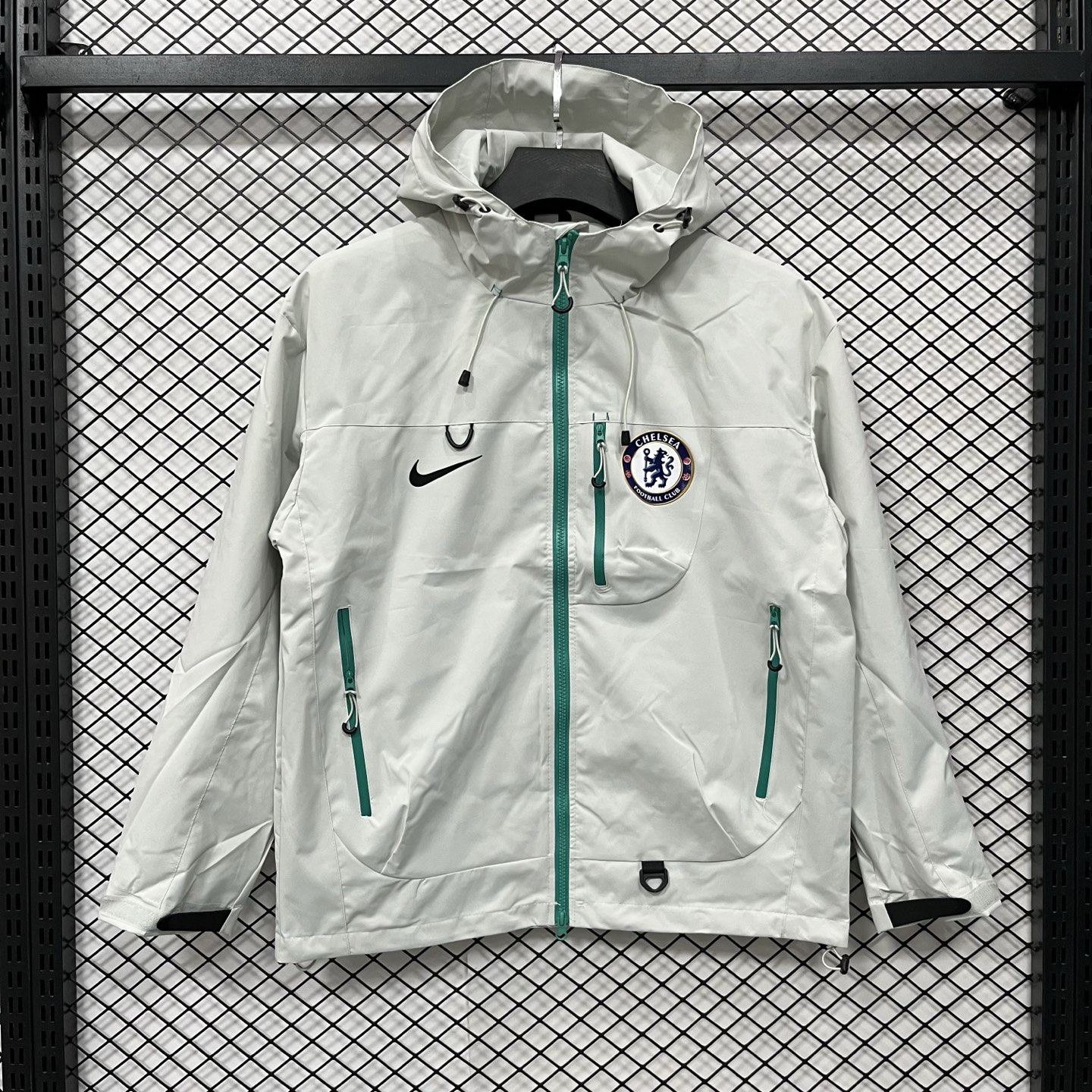 得物品质 耐克 Nike 足球切尔西队 休闲简约连帽 户外 登山防水防风透气冲锋衣 多拉链口袋设计情侣 男女款 黑色 白色 浅蓝色S 3XL
