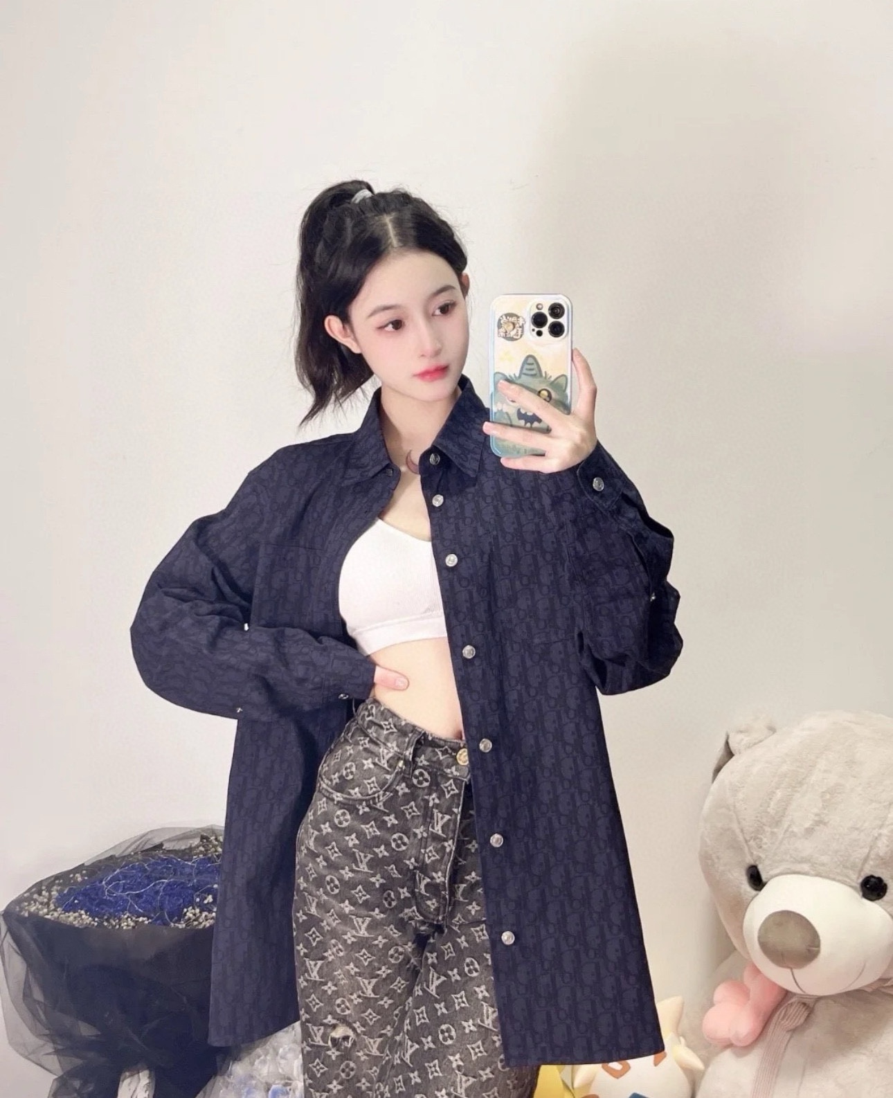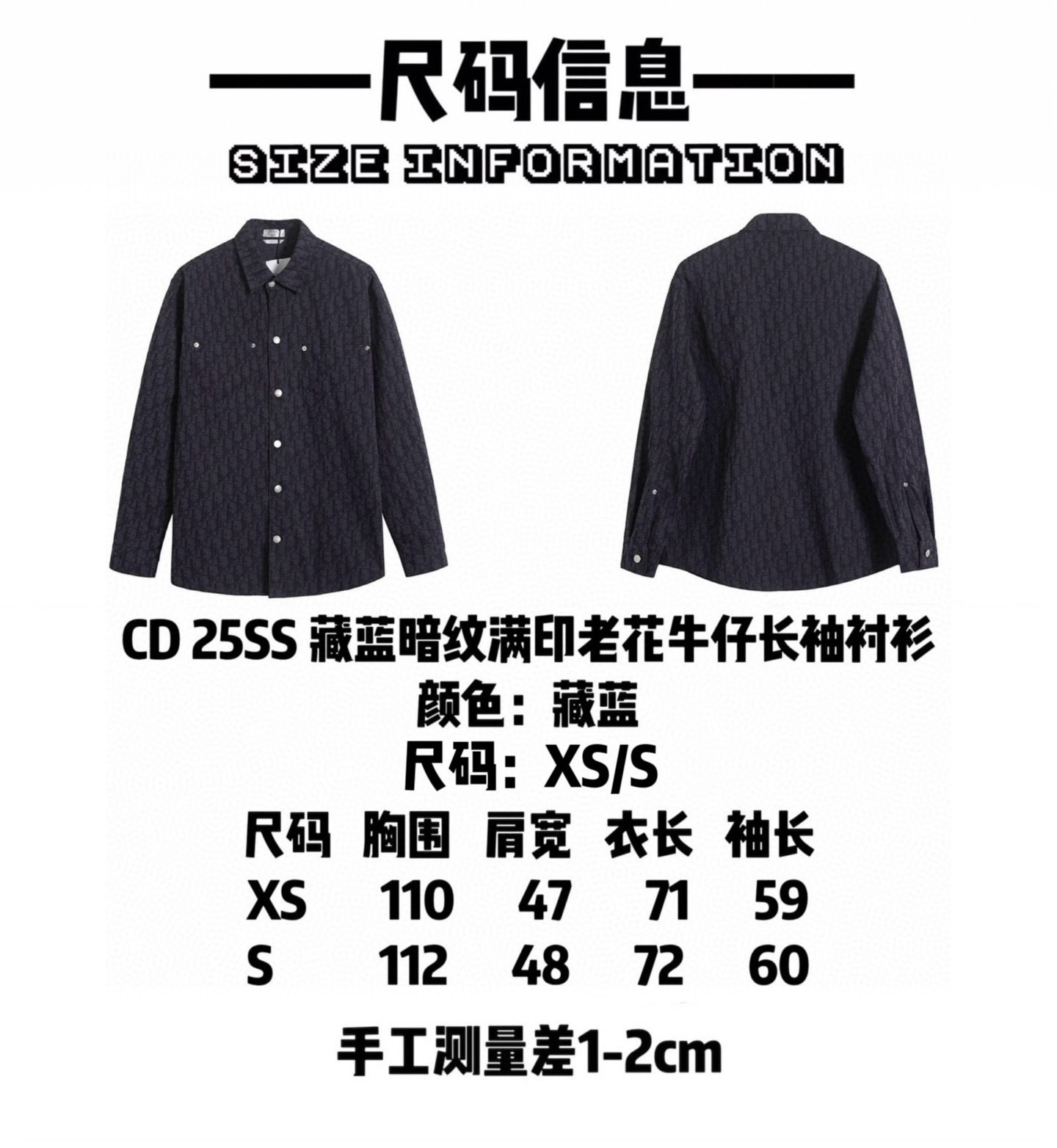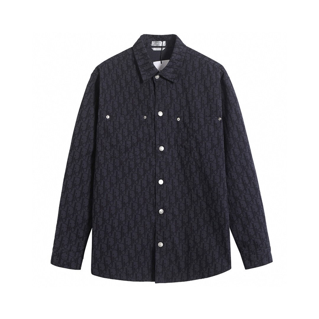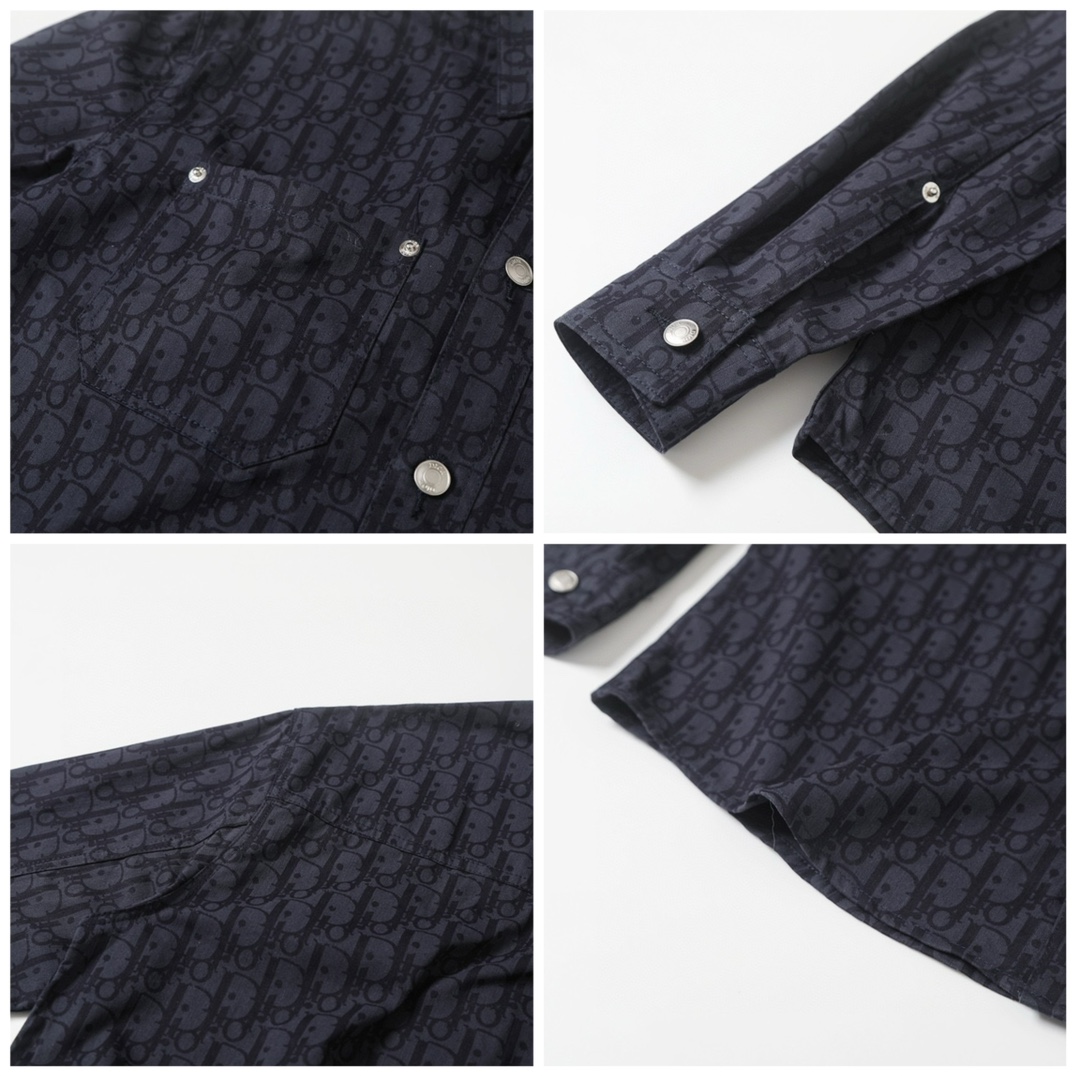 迪奥 𝘾𝙝𝙧𝙞𝙨𝙩𝙞𝙖𝙣 𝘿𝙞𝙤𝙧 CD 25FW 藏蓝暗纹满印老花牛仔长袖衬衫