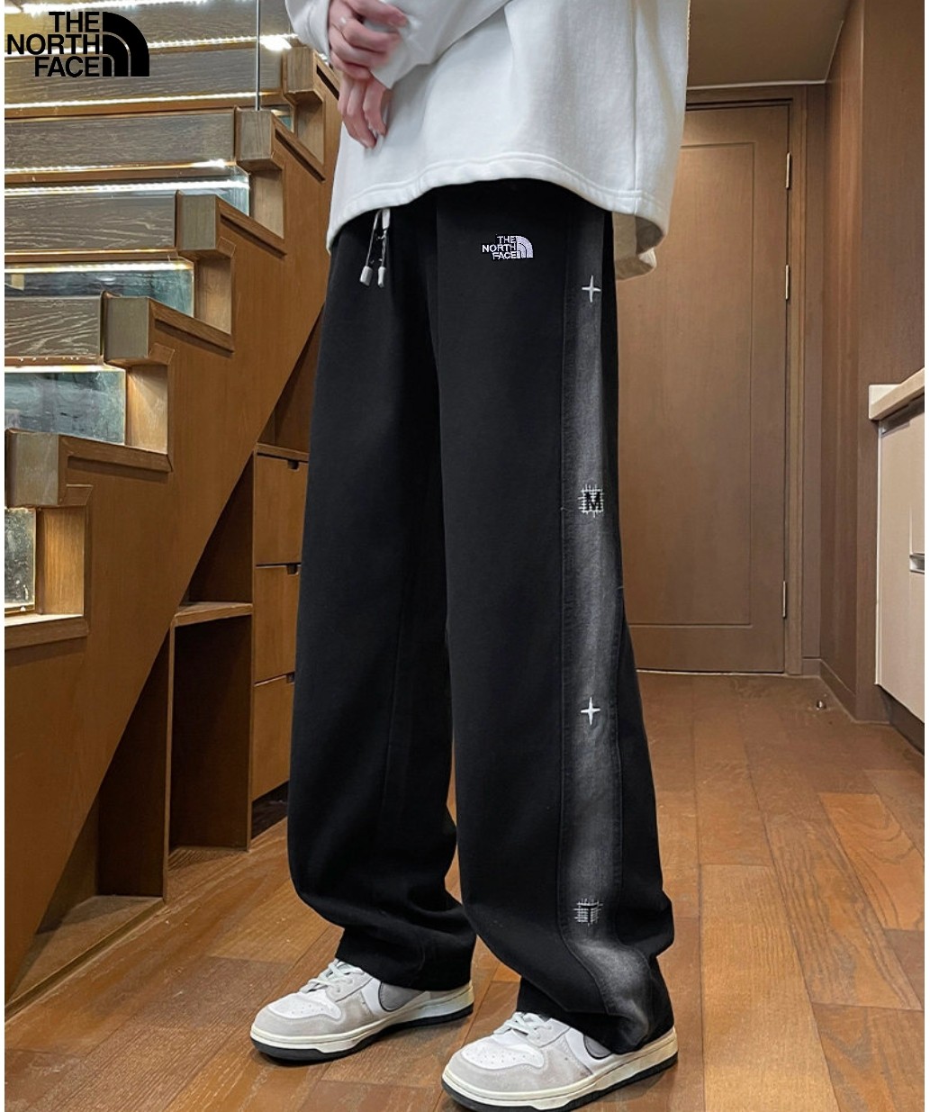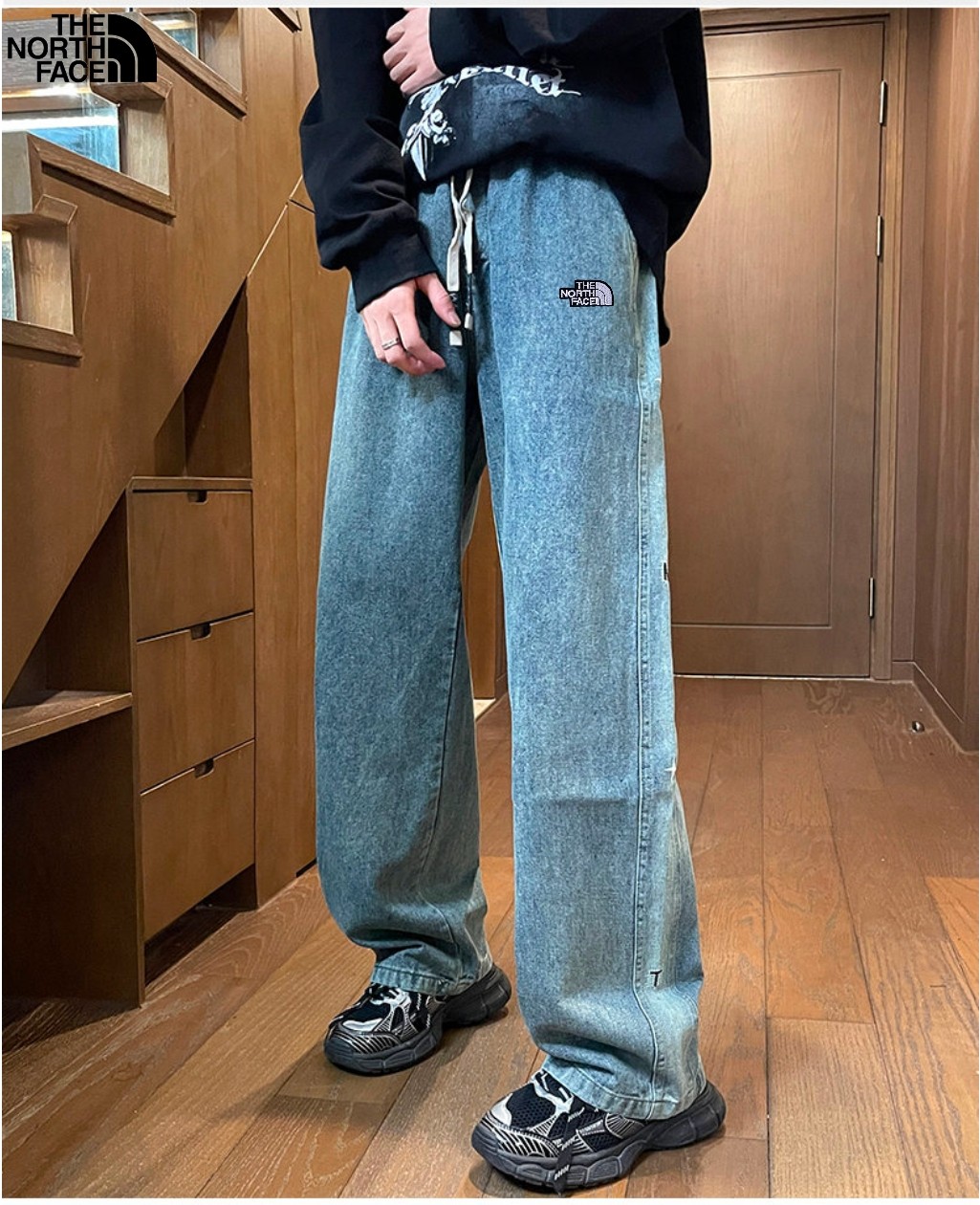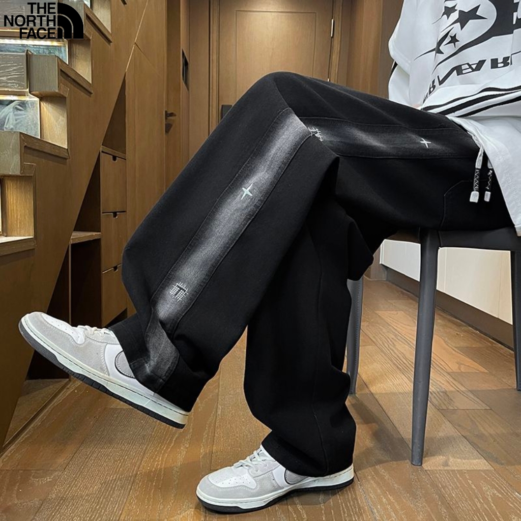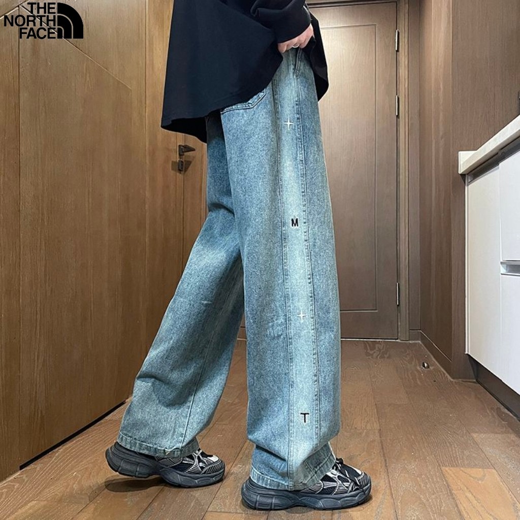 北面The North face秋冬新款 海外版25ss新款两色重工水洗刺绣美式复古串标洗旧直筒牛仔裤 休闲裤 裤子版型宽松 细节完美 水洗牛仔面料耐磨耐脏 立体裁剪宽松版型 进口机器印花反复水洗不会开裂脱落 男女同款情侣款 颜色 黑色 牛仔蓝
