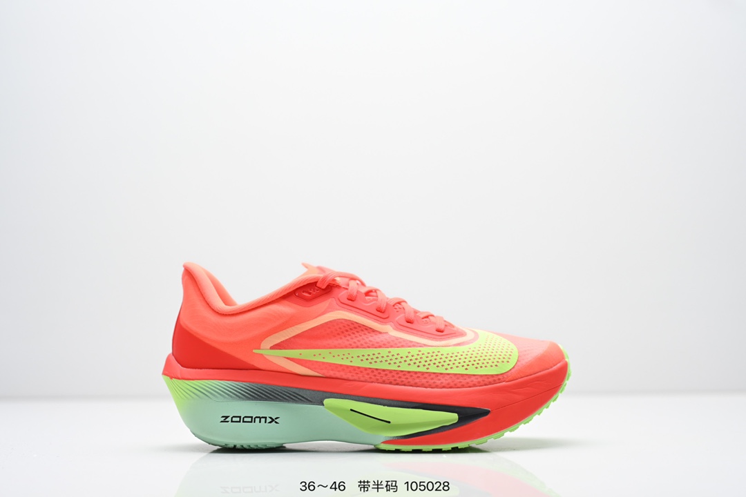 NIKE耐克Zoom Fly 6 马拉松碳板米黑跑步鞋男女同款运动鞋FN8455 001春新款ZOOM FLY 6 PRM缓震轻便跑步鞋 这款鞋在继承了 Nike Zoom Fly 5 的基础上 承诺为跑者带来更上一层楼的体验 它还继承了 Nike Vaporfly 3 和全新 Nike Alphafly 3 的设计风格 展现出更为简约和轻盈的外形 尤其是鞋跟部分 进行了重大改造 不仅提升支撑性 也增加了美观度 在 ZoomX 泡棉成功的基础上 Zoom Fly 6 引入更进一步的缓冲系统 为软硬适中和快速响应之间提供更好的平衡 满足长距离跑和短跑的需求 随着鞋跟和整体结构的可能改进 Zoom Fly 6 为跑者提供更好的稳定性和舒适度 这对于需要适应各种地形和跑步条件的跑者来说尤为重要 对于鞋面的改良 使用新的材料或构造技术 以实现更好的贴合和透气性 这将进一步提升鞋子的舒适度和性能