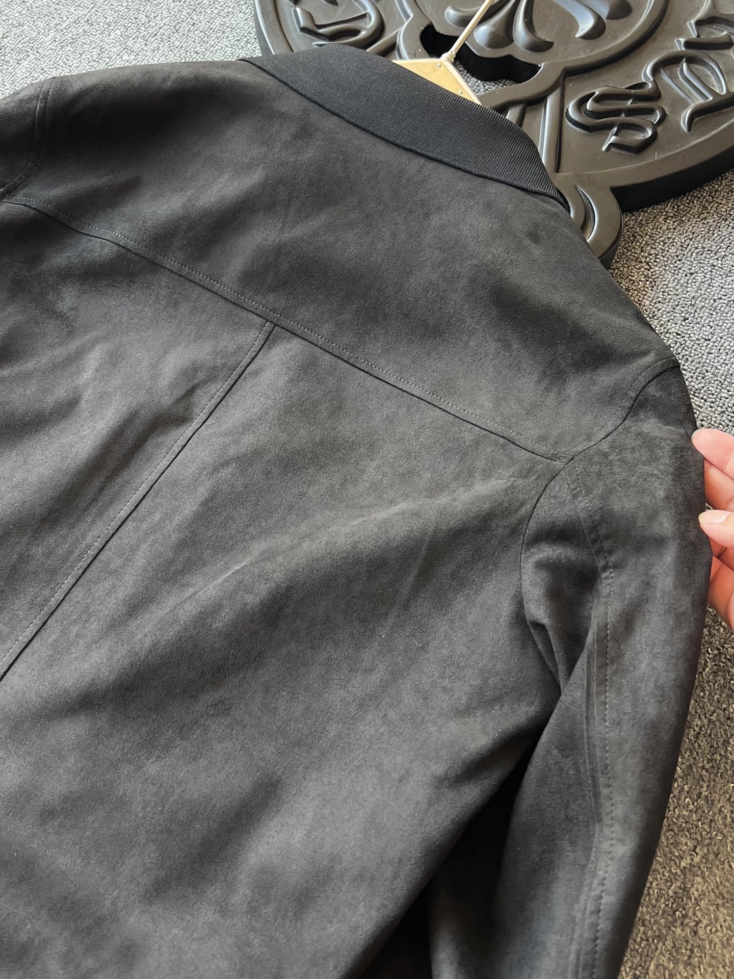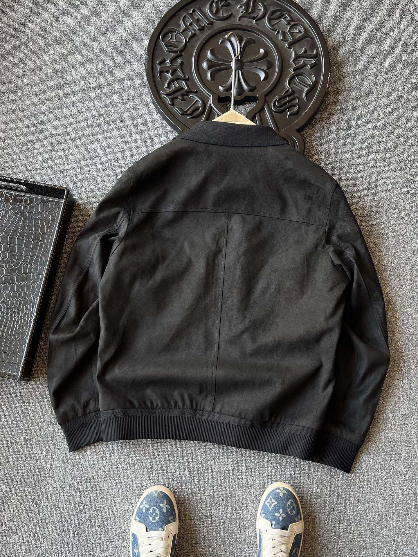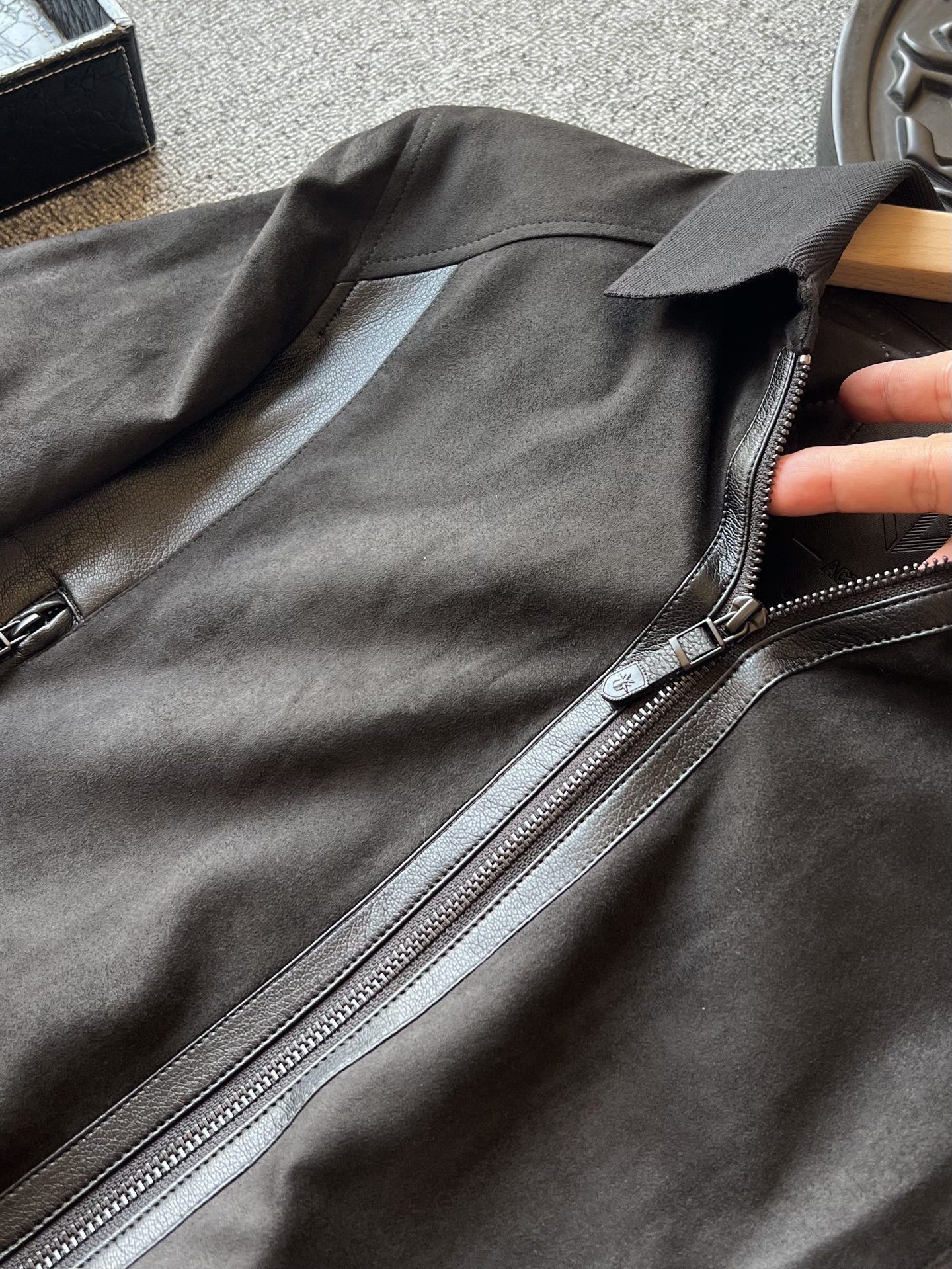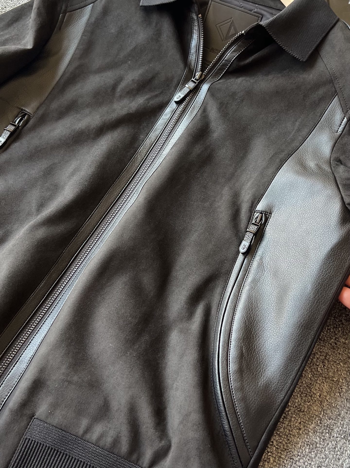 细节细节再细节 Dior家商场新款四色羊皮麂皮翻领加厚皮衣 全身用了麂皮在多处采用拼接羊皮方式 彰显精致奢贵感 门襟做了哑光羊皮包边 双侧贯穿式弧形拼接同色调羊皮 同时做了弧形拉链式口袋设计感拉满 针织领口袖口以及下摆 拉手袢带有Dior小蜘蛛logo标识 天花板级做工 一件衣服穿十年耐久性