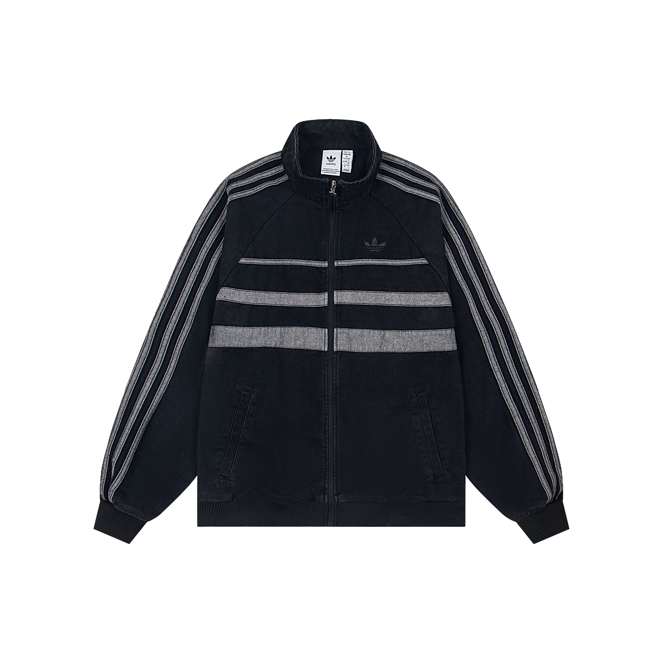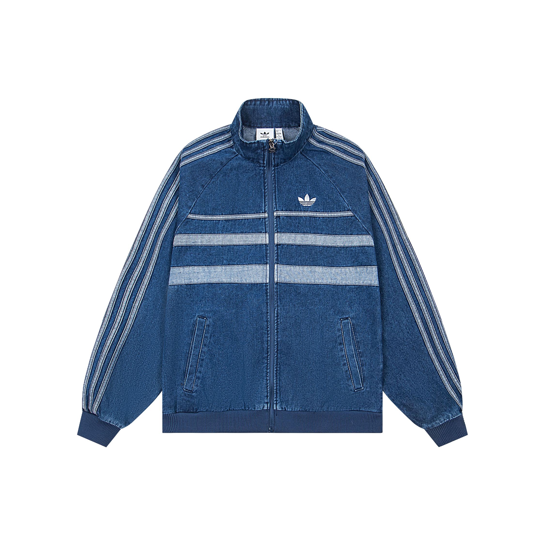 150173395 - 款 Adidas阿迪达斯三叶草秋季三条杠刺绣小标牛仔外套男女