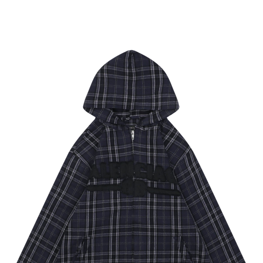 巴黎世家 Balenciaga BLCG 25FW 88蓝格纹贴布绣套装连帽外套 正确版本 欢迎对比