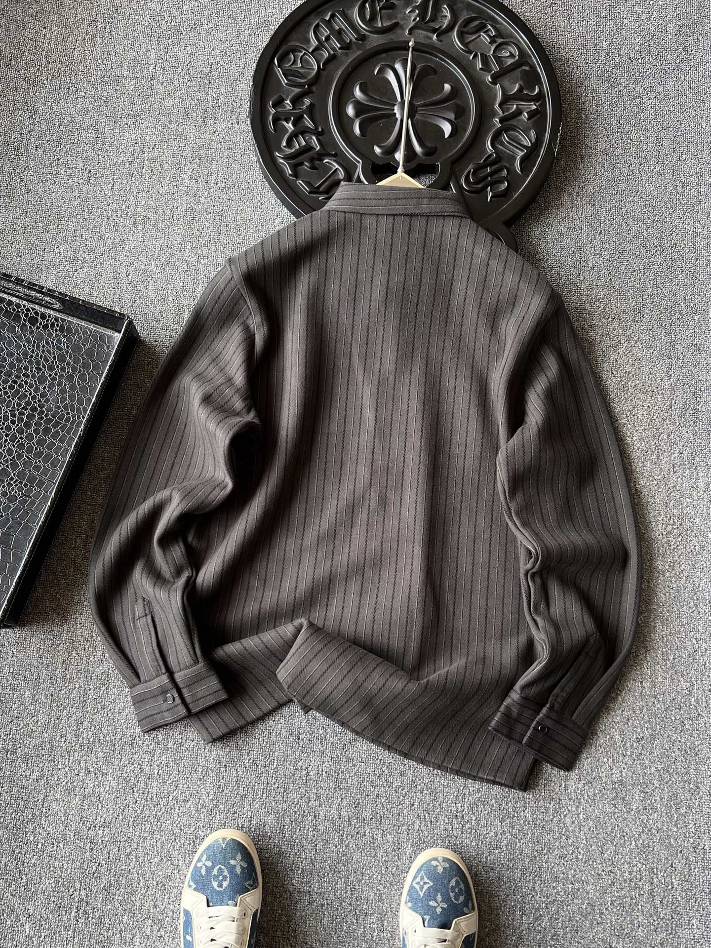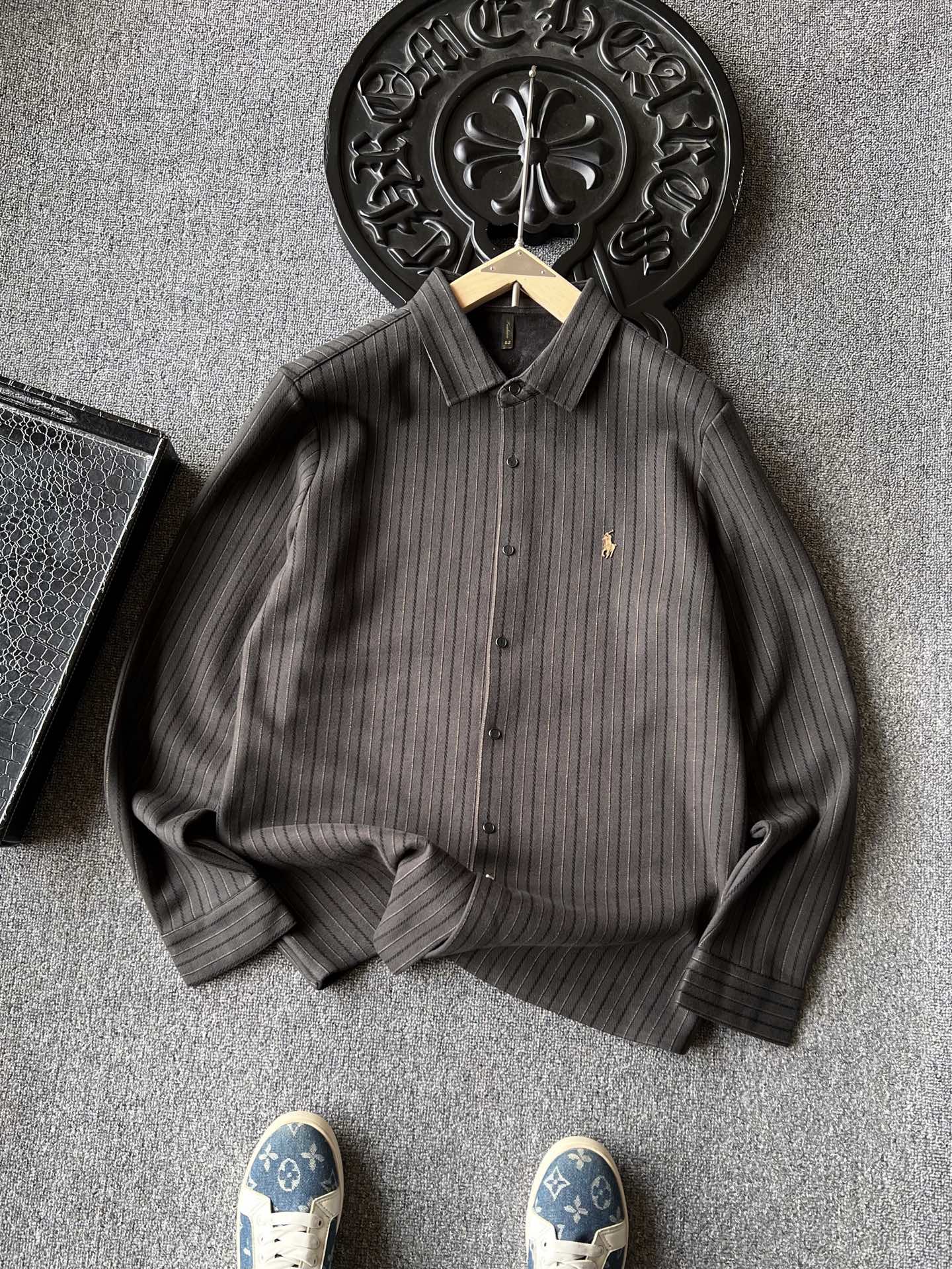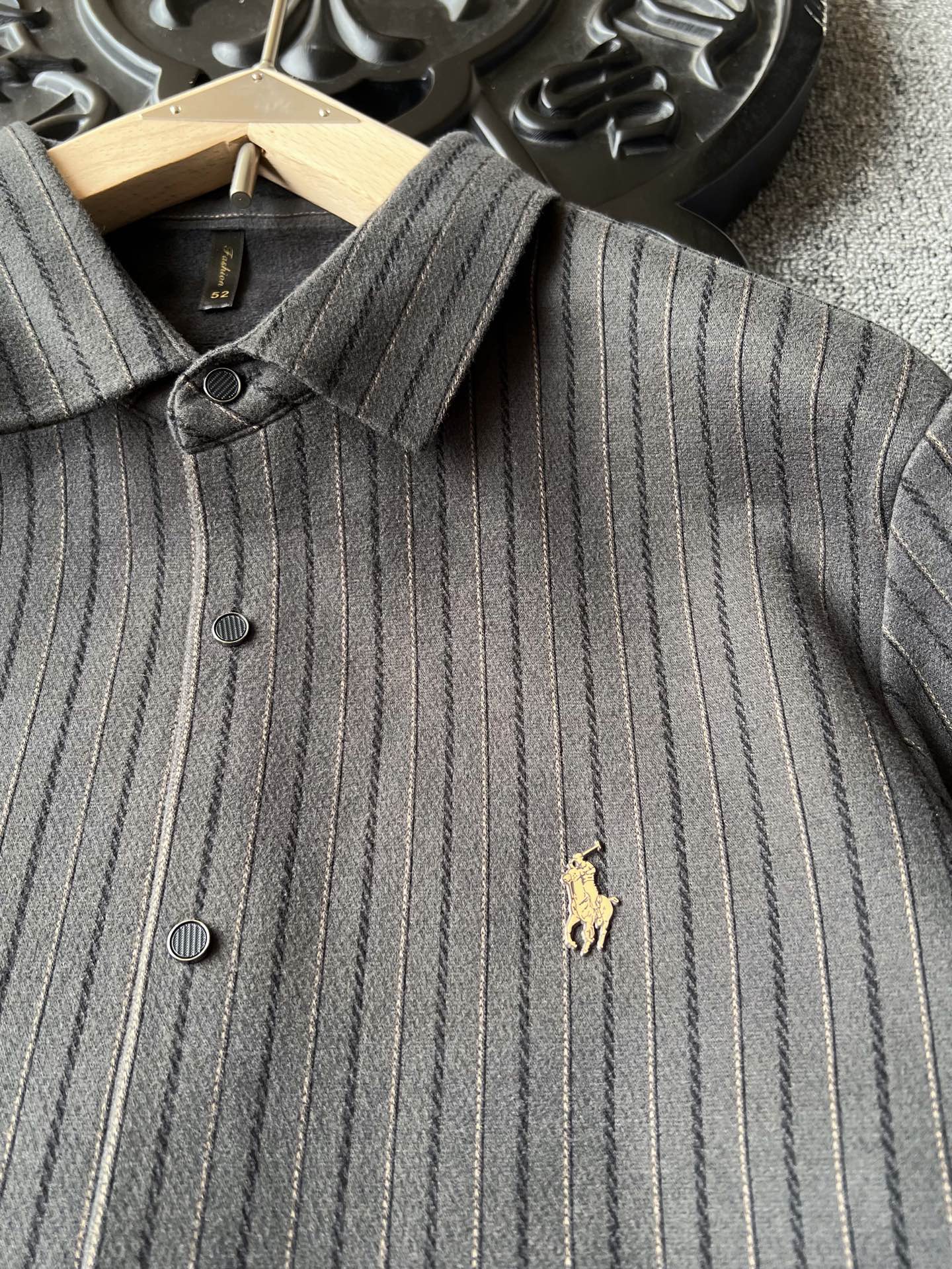 细节细节再细节 Ralph Lauren家商场新品一体色织竖条纹超柔羊毛蚕丝衬衫外套 胸前立体拉夫劳伦Polo棕标 手绘线条肌理 十分精致 高端定制浮雕五金纽扣细节 外穿内搭高级感拉满