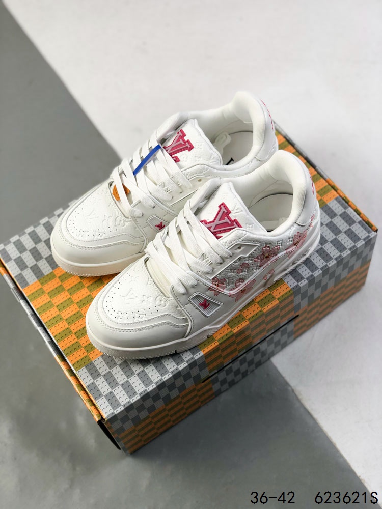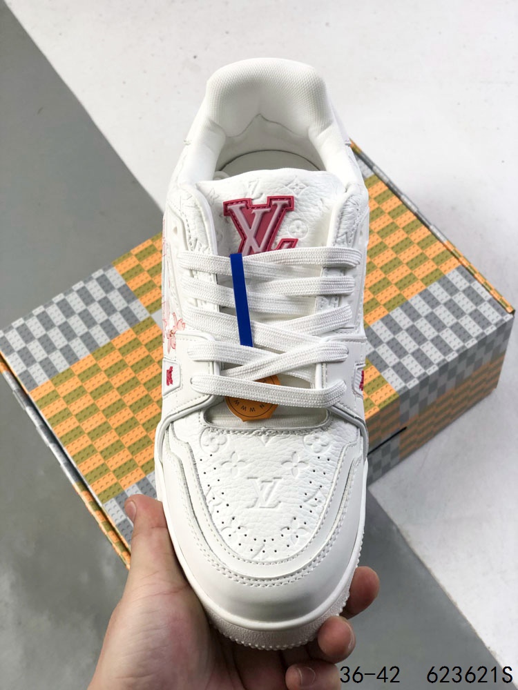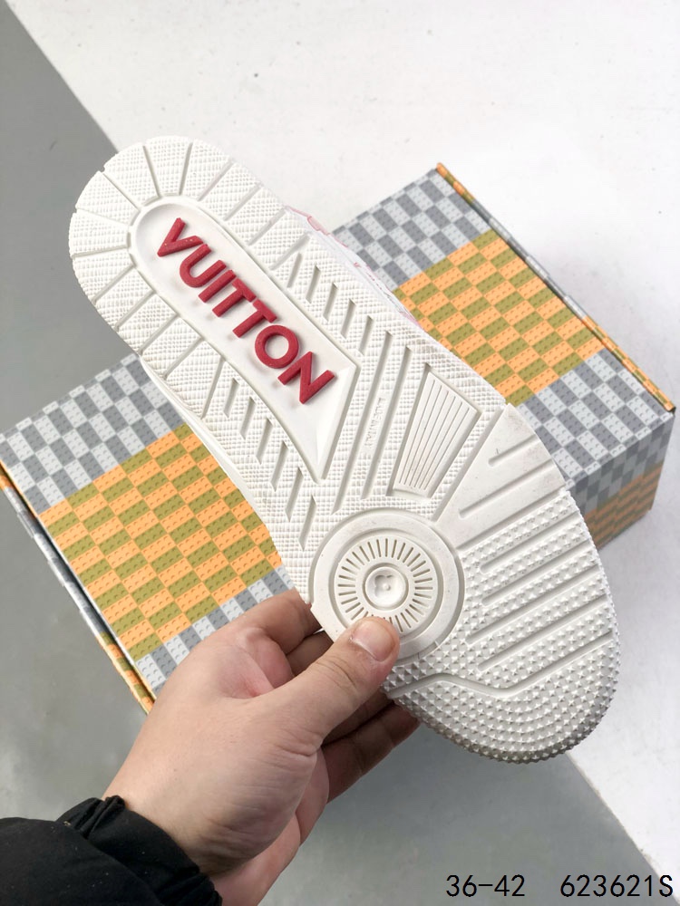 公司级 LV路易威登Louis vuitton Trail Sneaker Low 休闲运动文化百搭篮球板鞋 致TPR光泽鞋底 耐弯折滴塑支持片 鞋垫嵌入超软脚感乳胶材质的篮球鞋