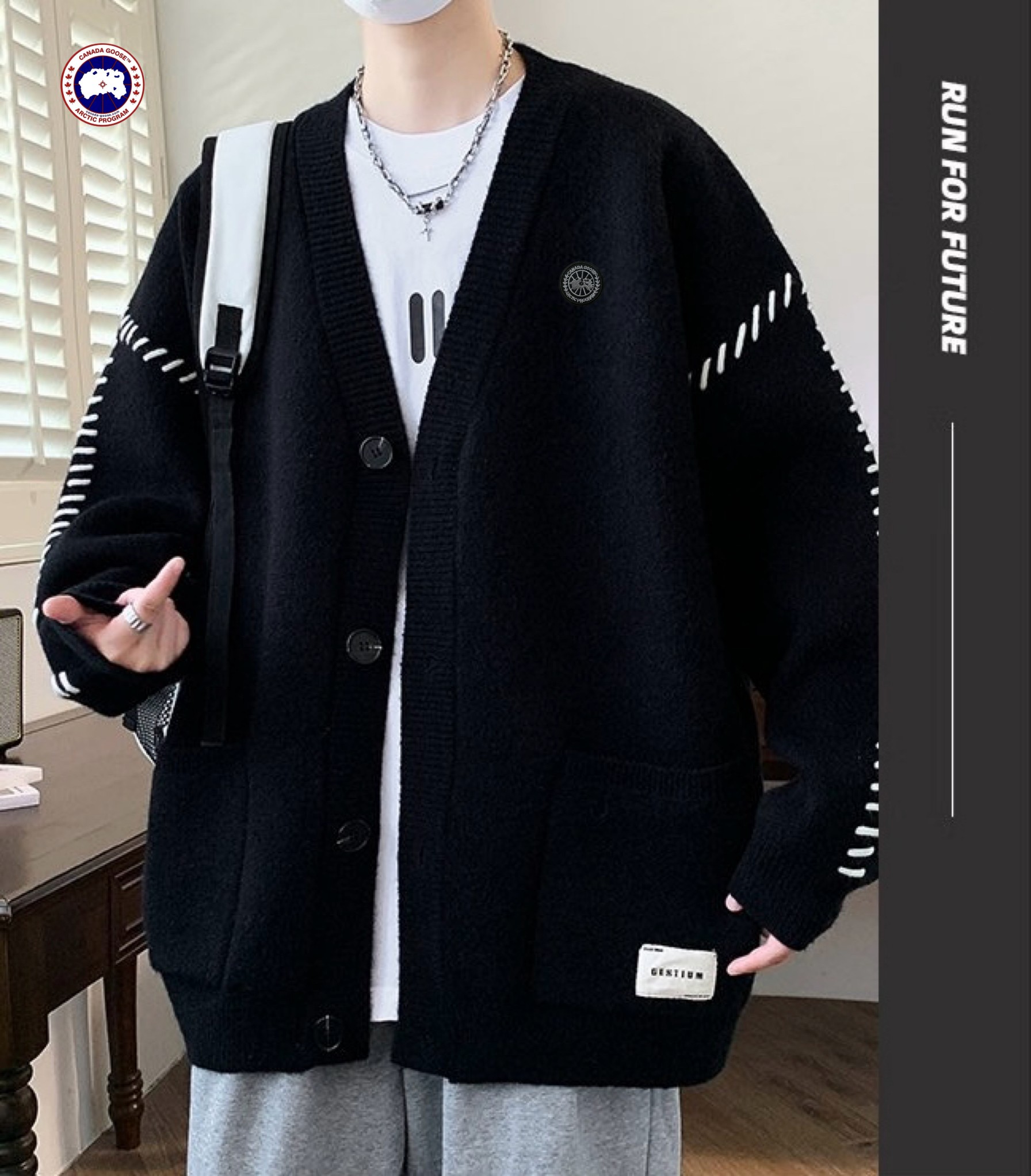 Canada Goose大鹅海外版26ss新款四色高品质刺绣宽松版拼色情侣款毛衣