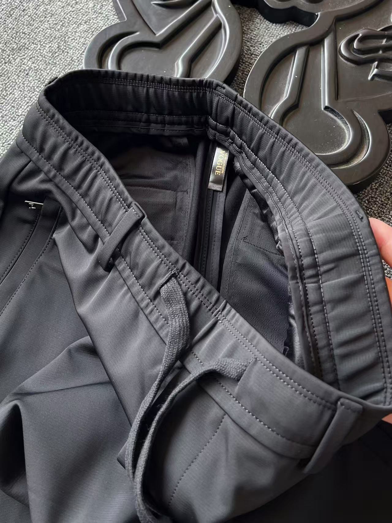 细节细节再细节 Kolon家商场新品直口松紧腰长裤 可商务穿搭 可休闲户外运动 双侧暗门襟拉链设计 裤后同样做了双内嵌式口袋 后腰口下方可隆小树立体凹凸标识 轮廓镶嵌金属丝细节 十分精致 内里全包边双包条精湛做工 业界天花板