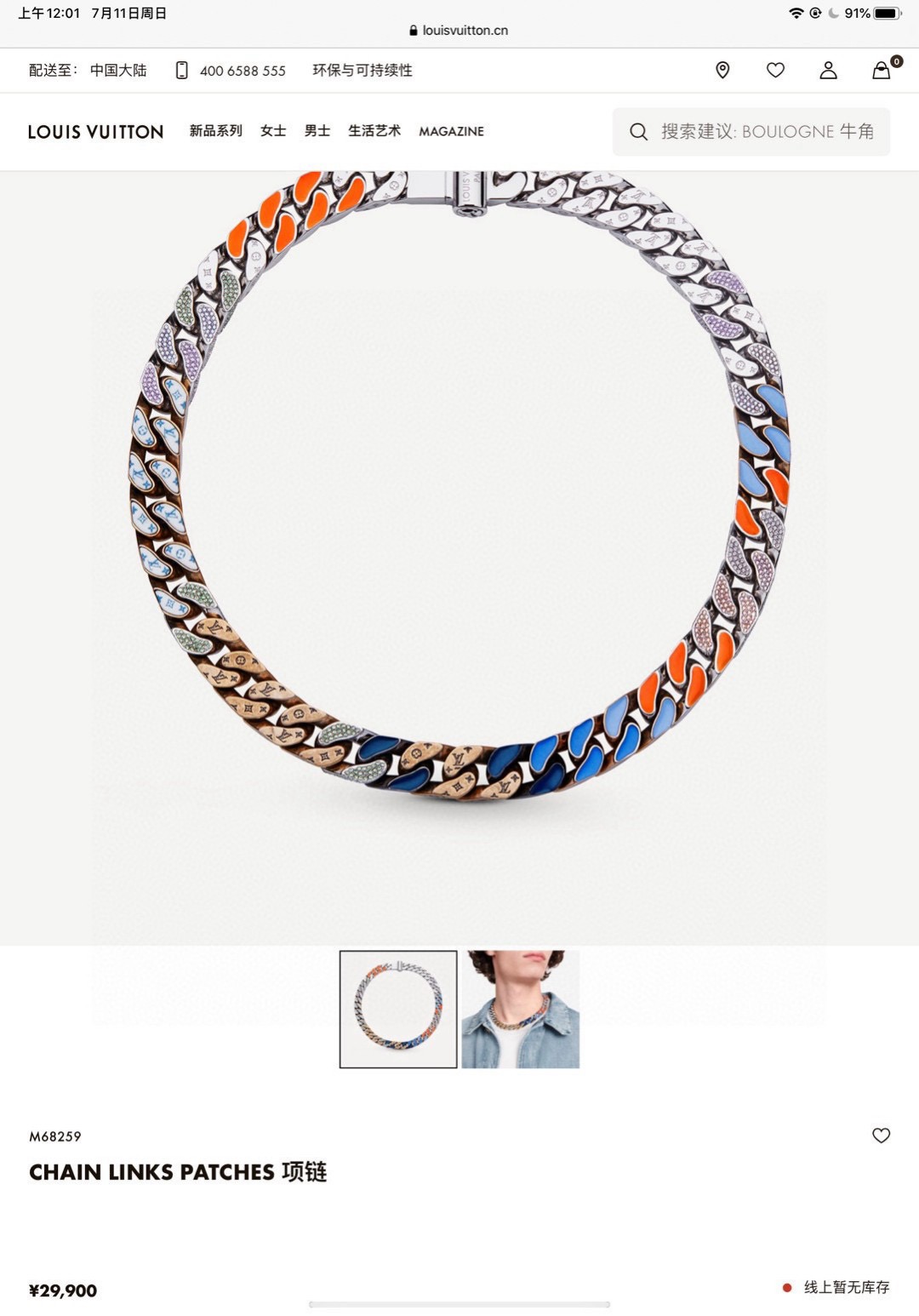 LV路易威登 宽版古巴项链 吴亦凡疯狂小杨哥网红明星同款酷