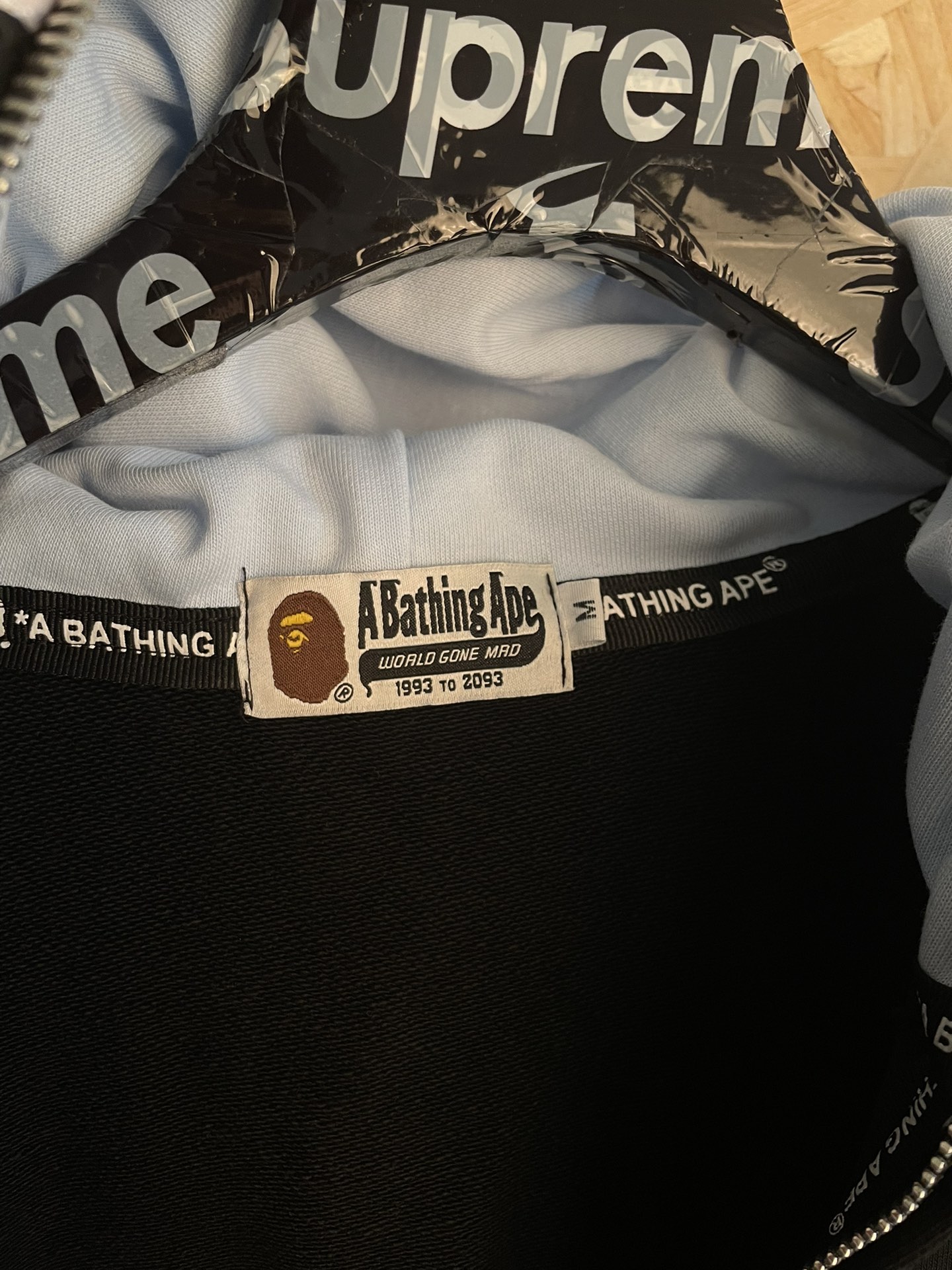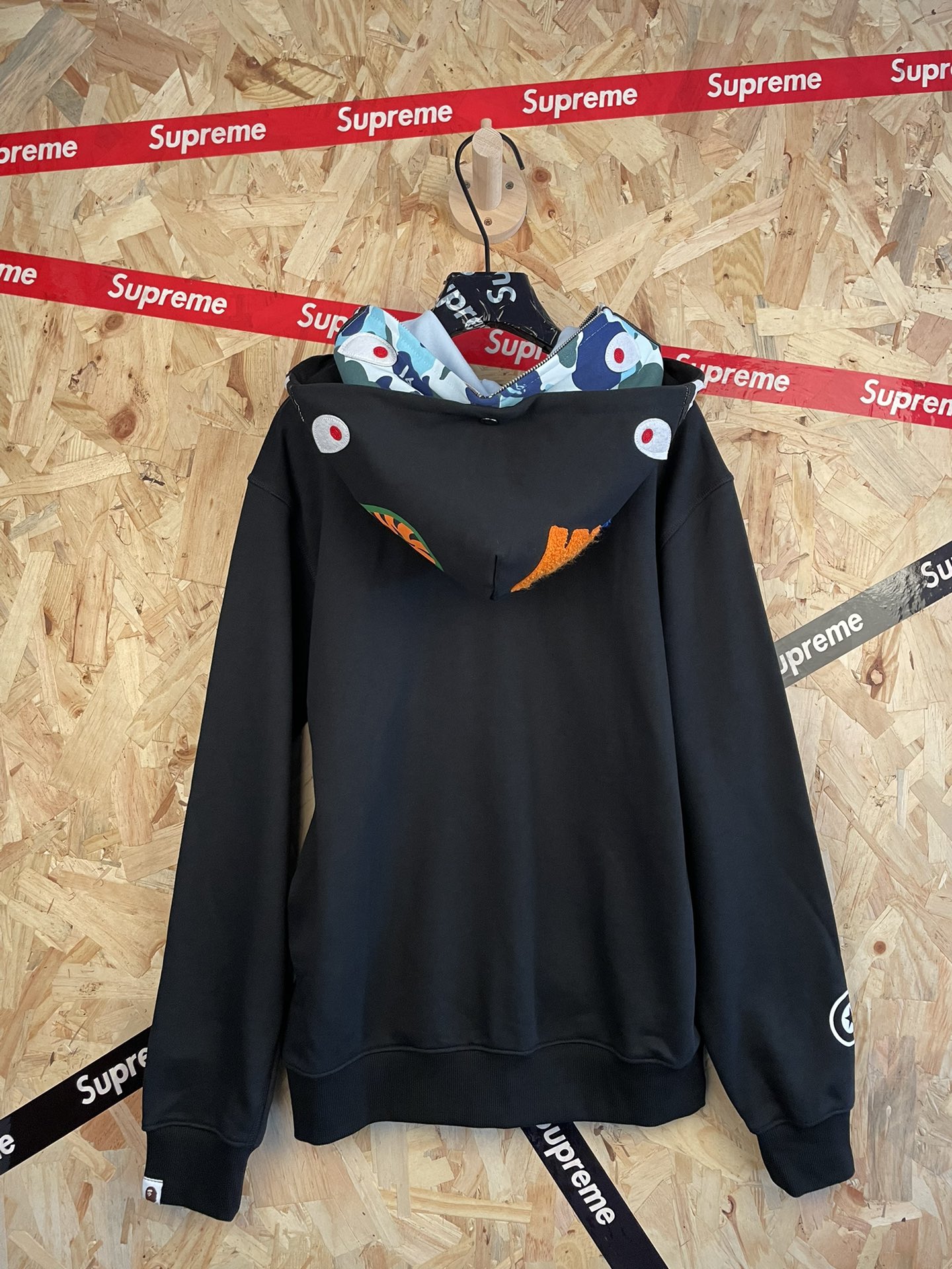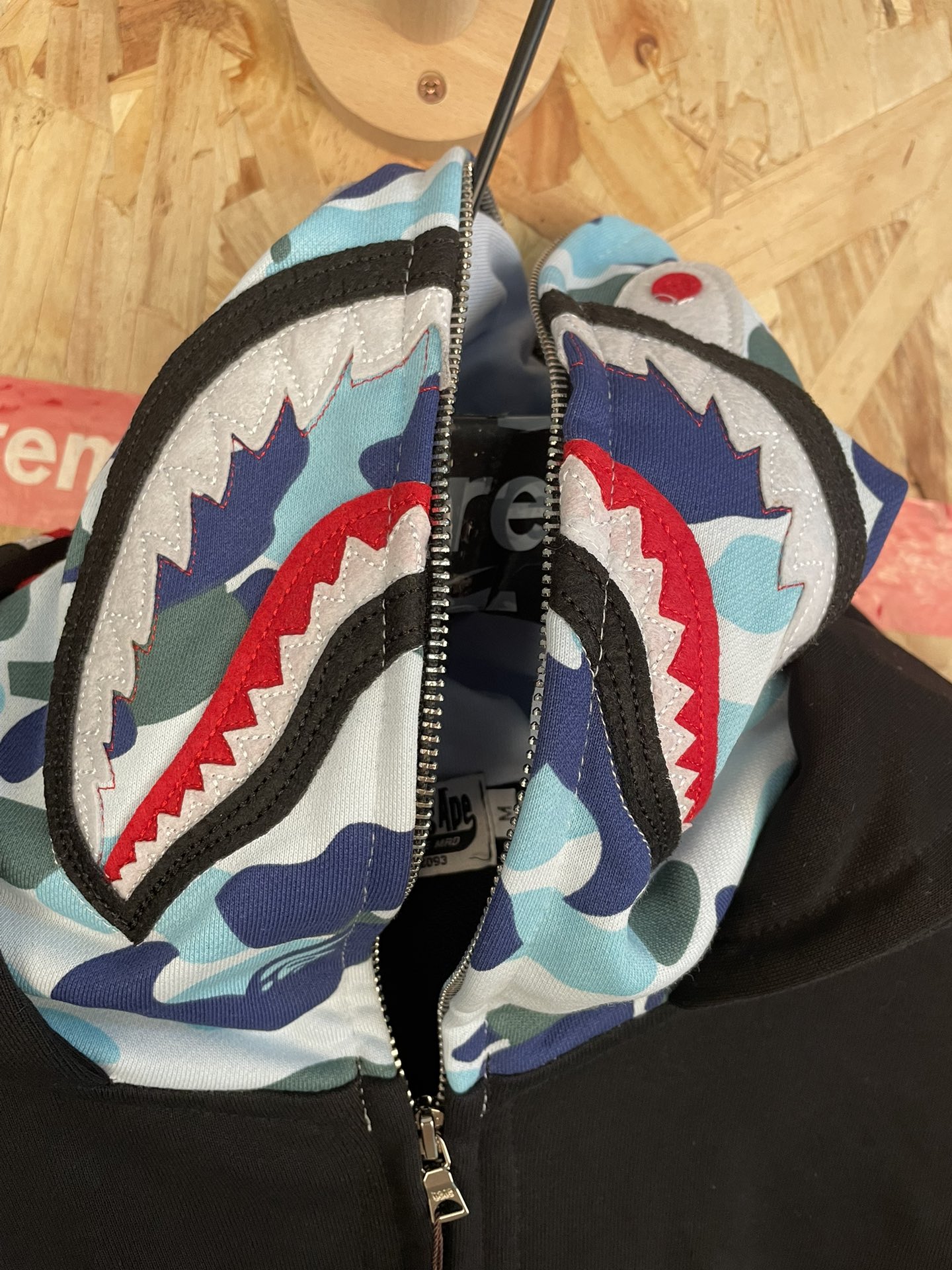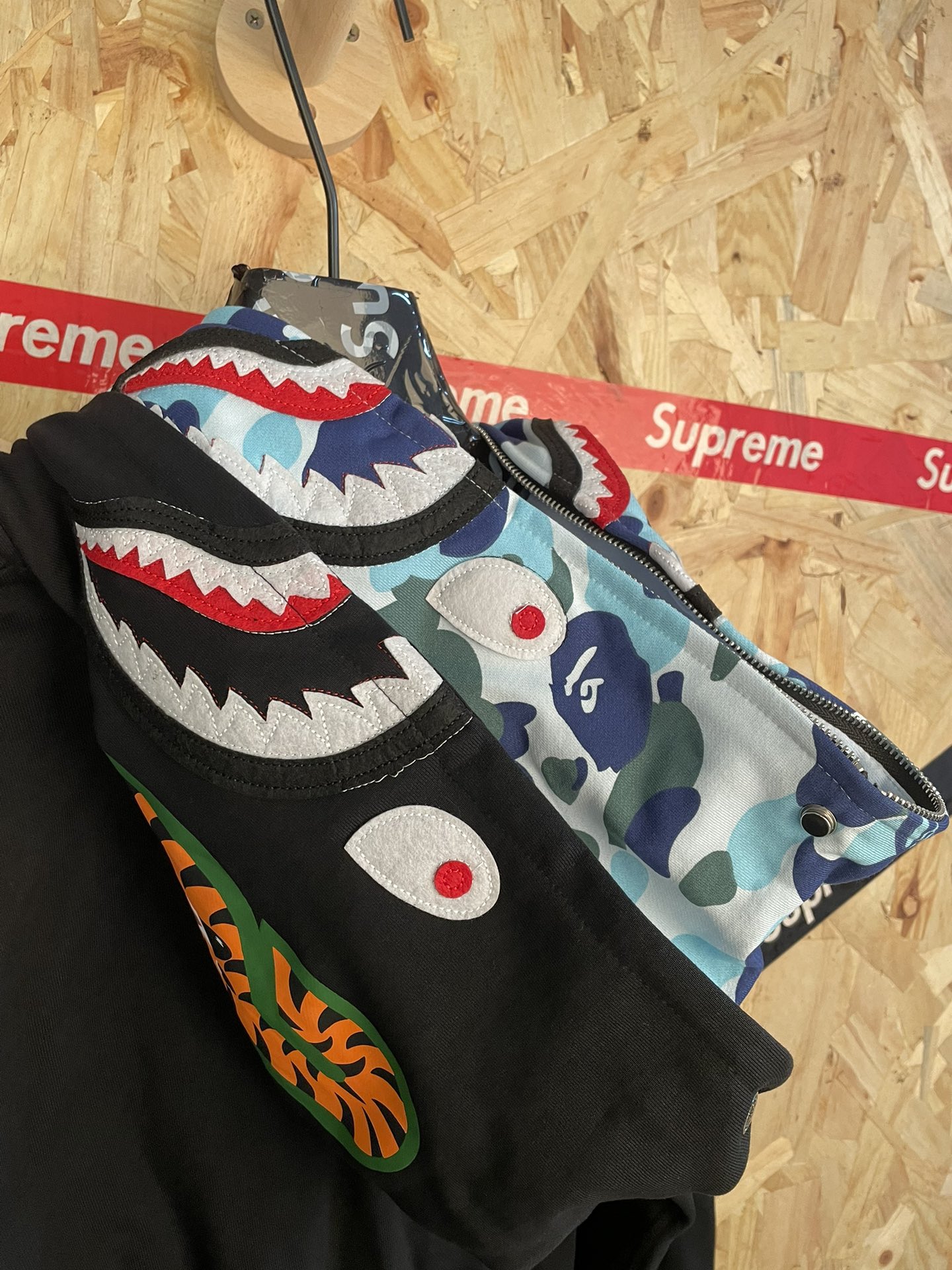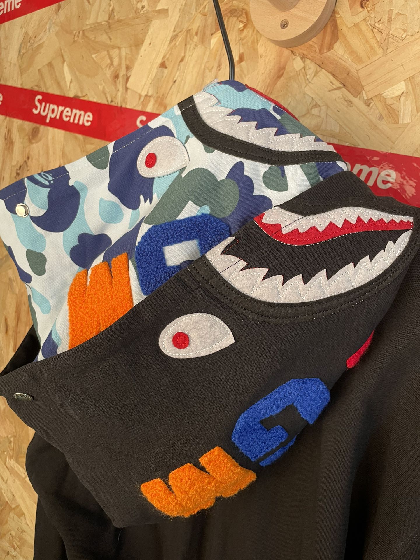 145230028 - 款号 sy69 Ba e美式潮牌撞色双帽鲨鱼拉链连帽外套 585081