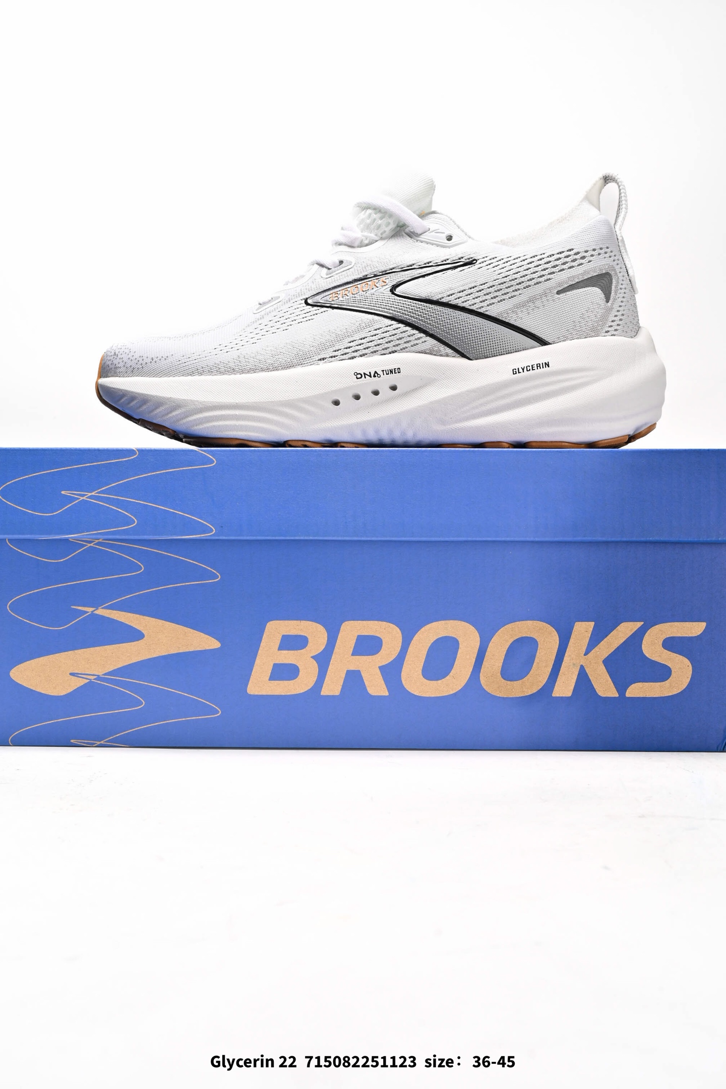 新品公司级 BROOKS布鲁克斯Glycerin 22甘油 跑步鞋男女新款透气缓震支撑运动 甘油22跑鞋是布鲁克斯 甘油22拥有非常亮眼的外观设计 采用了鲜艳夺目的色彩和稳定的造型 不显浮夸 并能吸引跑者的眼球 此外 它还采用了双层提花工程针织网眼鞋面 使其不仅具有良好的质感 而且能提供恰到好处的贴合性能 这种设计确保了在跑步过程中脚部的透气性和束紧感 而塑造出一种低调奢华的运动美学 鞋面的工程设计使其既适合日常通勤 又适合专业跑步训练 在缓震和回弹方面 甘油22确实表现出色 其搭载了最新的DNA Tuned中底科技 通过应用不同分子大小的材料 在前掌和后掌区域提供了差异化的性能表现 前掌区域采用小分子材料 增强了韧性和回弹力 而后掌区域则采用大分子材料 提供柔软的落地缓震 这些科技的结合使得跑者在跑步过程中每一步都能有效吸收冲击力 同时还能将其转化为前进的力量 从而减少腿部疲劳 提高运动效率