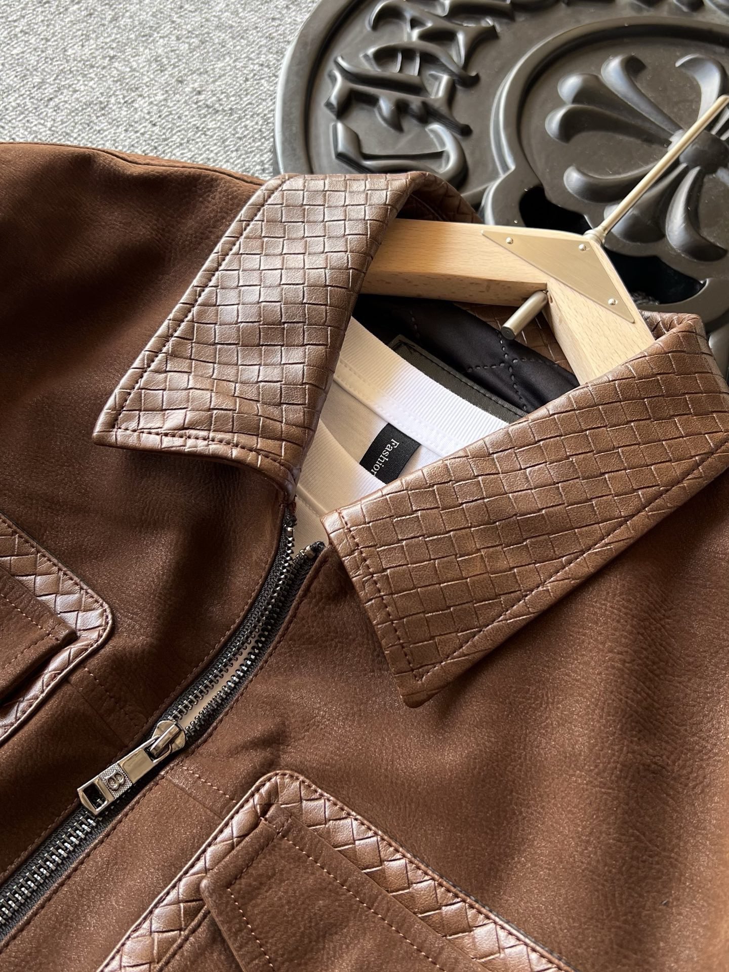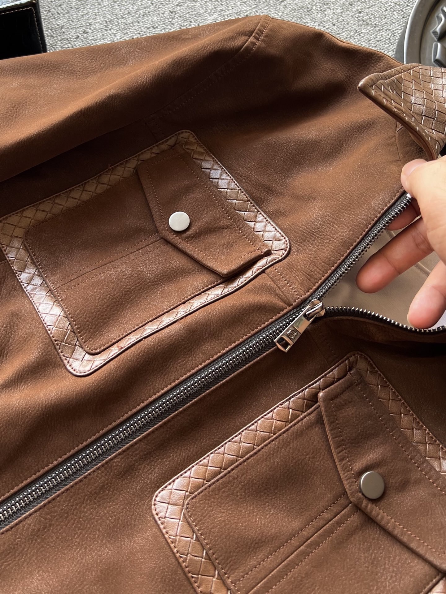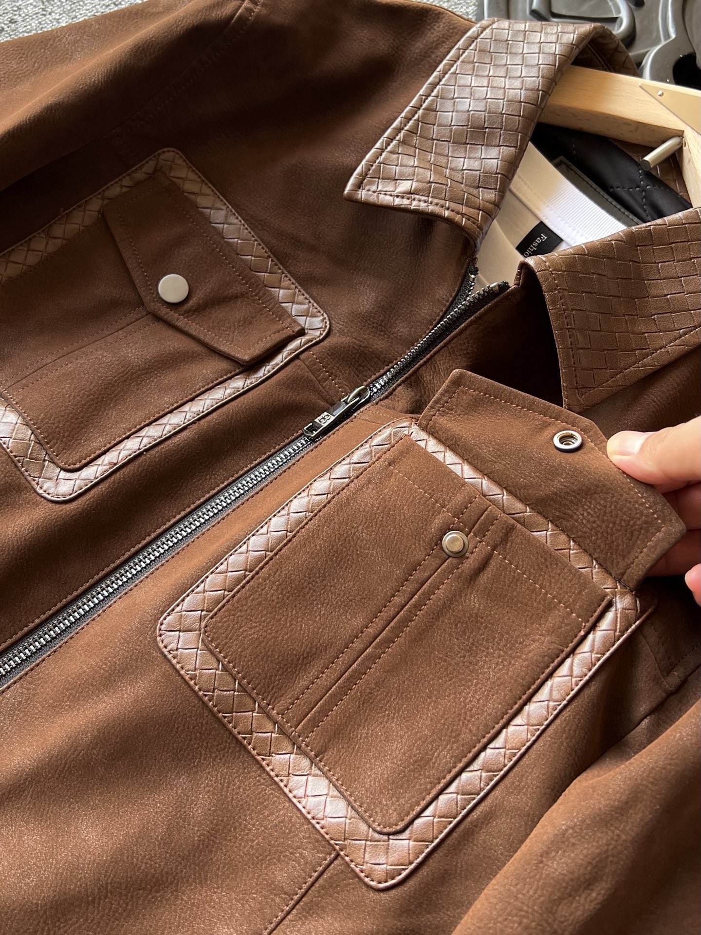 细节细节再细节 Zegna家商场新品三色羊皮加厚外套翻领皮衣 胸前双工装口袋设计 做了双层拼接工艺 领口钢印压花肌理 和口袋轮廓形成很好的立体感 内里做了热熔加固棉层设计 具有很好的锁温以及单向透气排湿性
