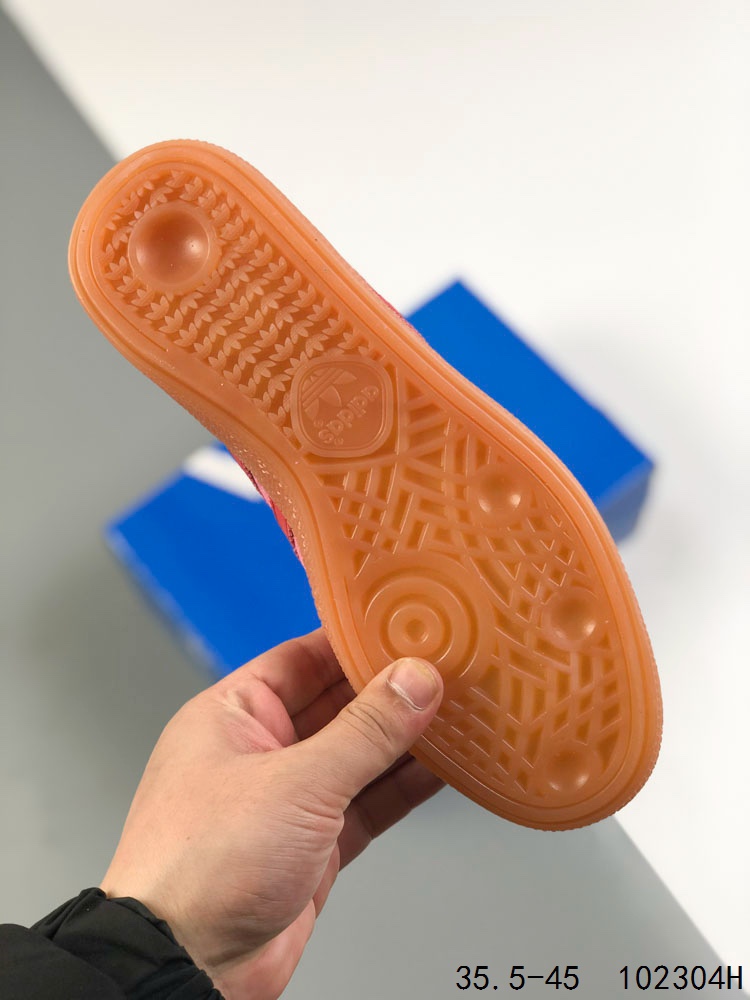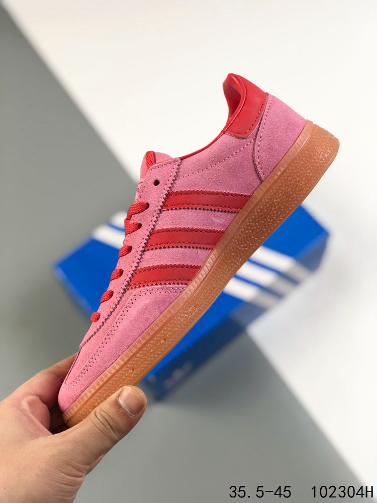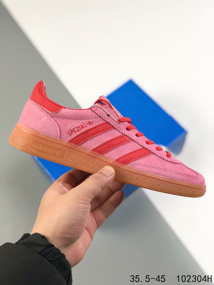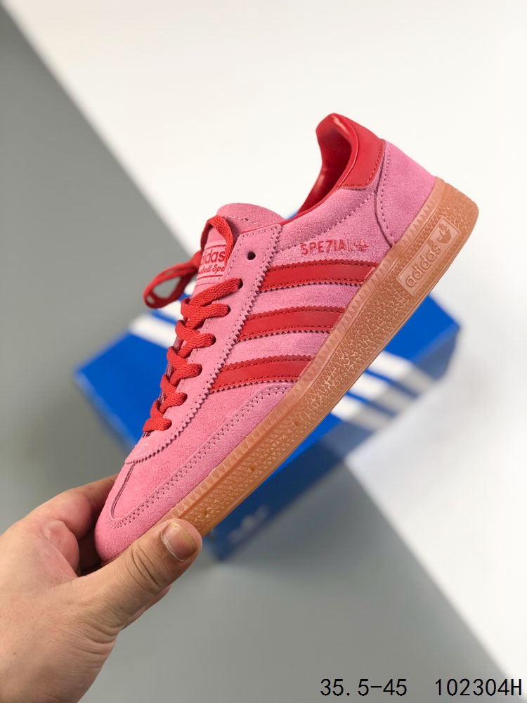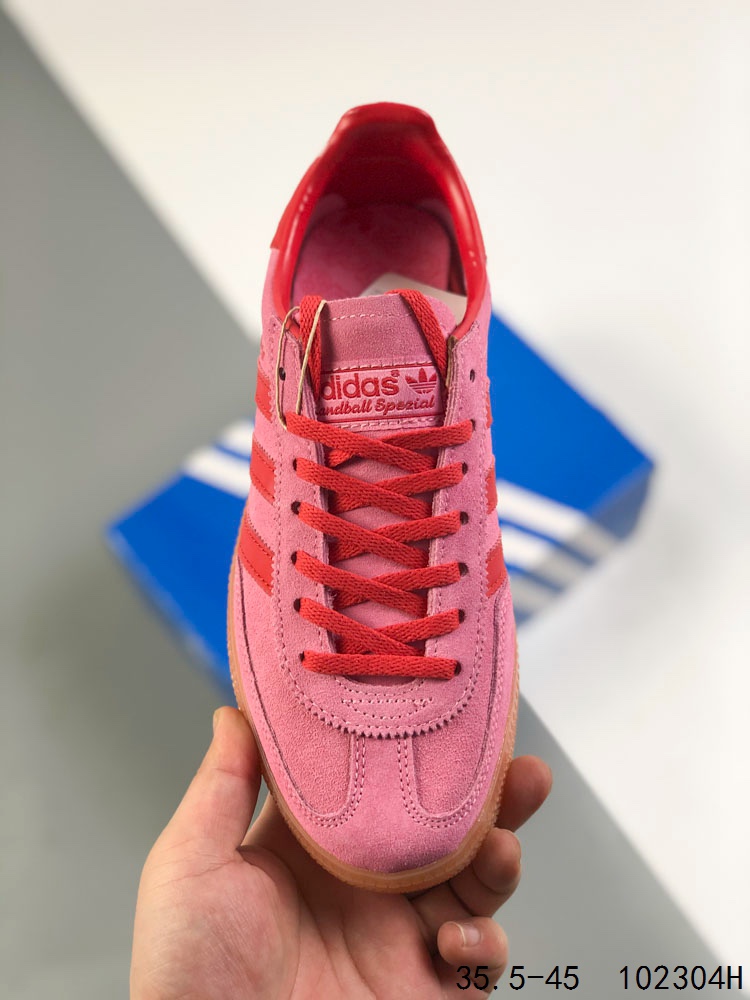 真标带半码 Adidas Handball Spezial 阿迪达斯经典款 德训复古休闲板鞋 全鞋采用反毛皮制作 牛筋耐磨大底 承载青春情怀的板鞋 经典三条杠装饰鞋侧 品牌辨识度清晰 ID 102304H