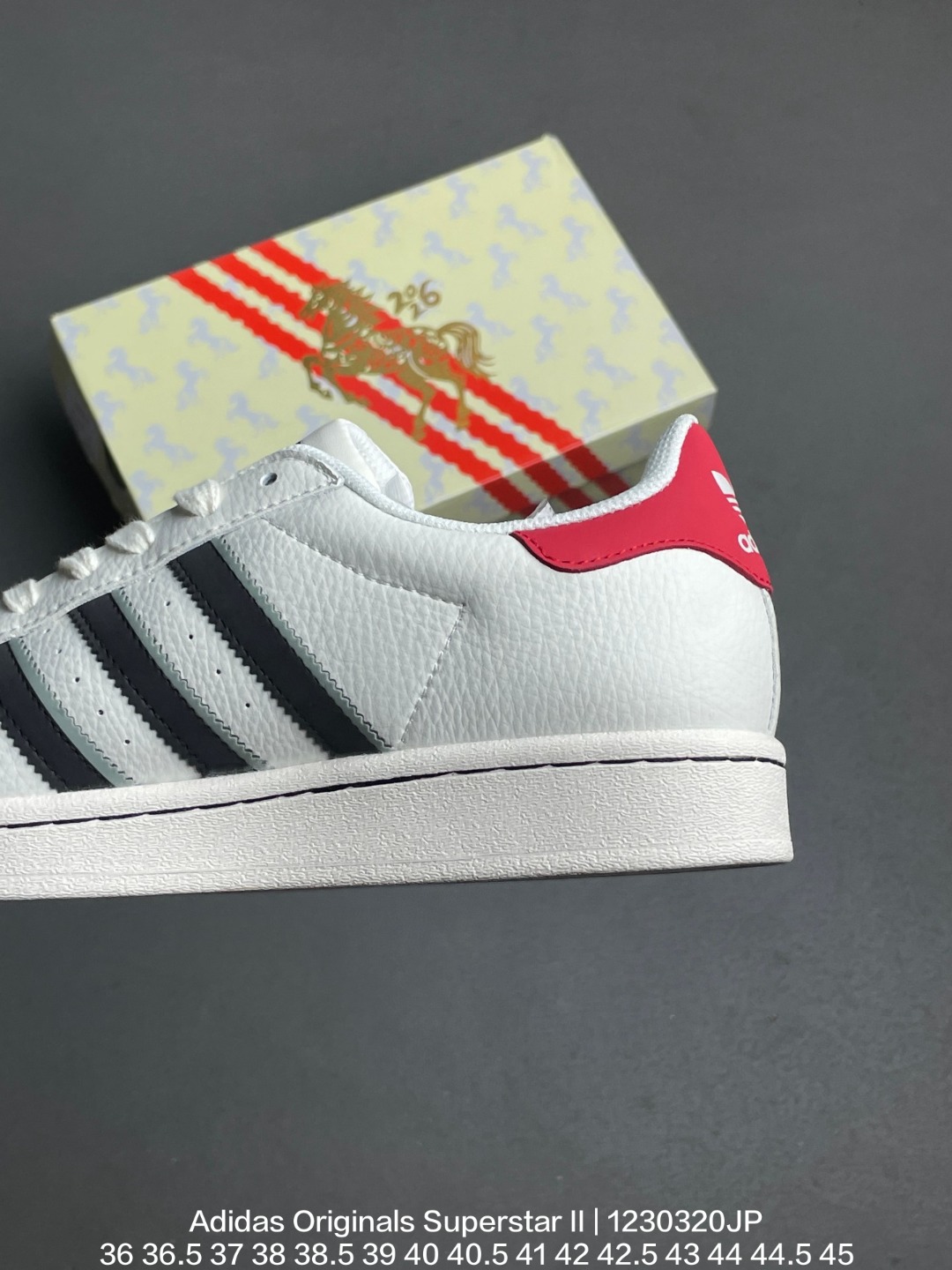 Adidas 阿迪达斯 升级原楦原纸版开发 采用牛剖革鞋面材质 2020改良全包围鞋垫 正确2020版鞋底模具及扇贝头盖片阿迪达斯 三叶草Adidas Originals Superstar II 经典贝壳头系列低帮百搭休闲运动板鞋
