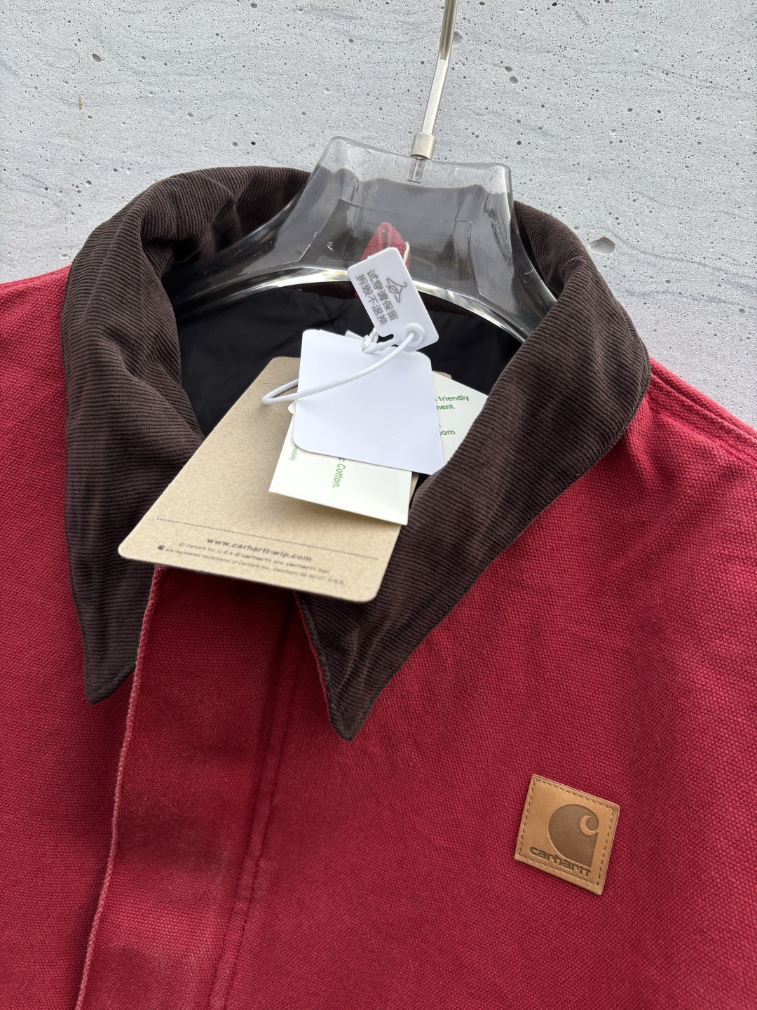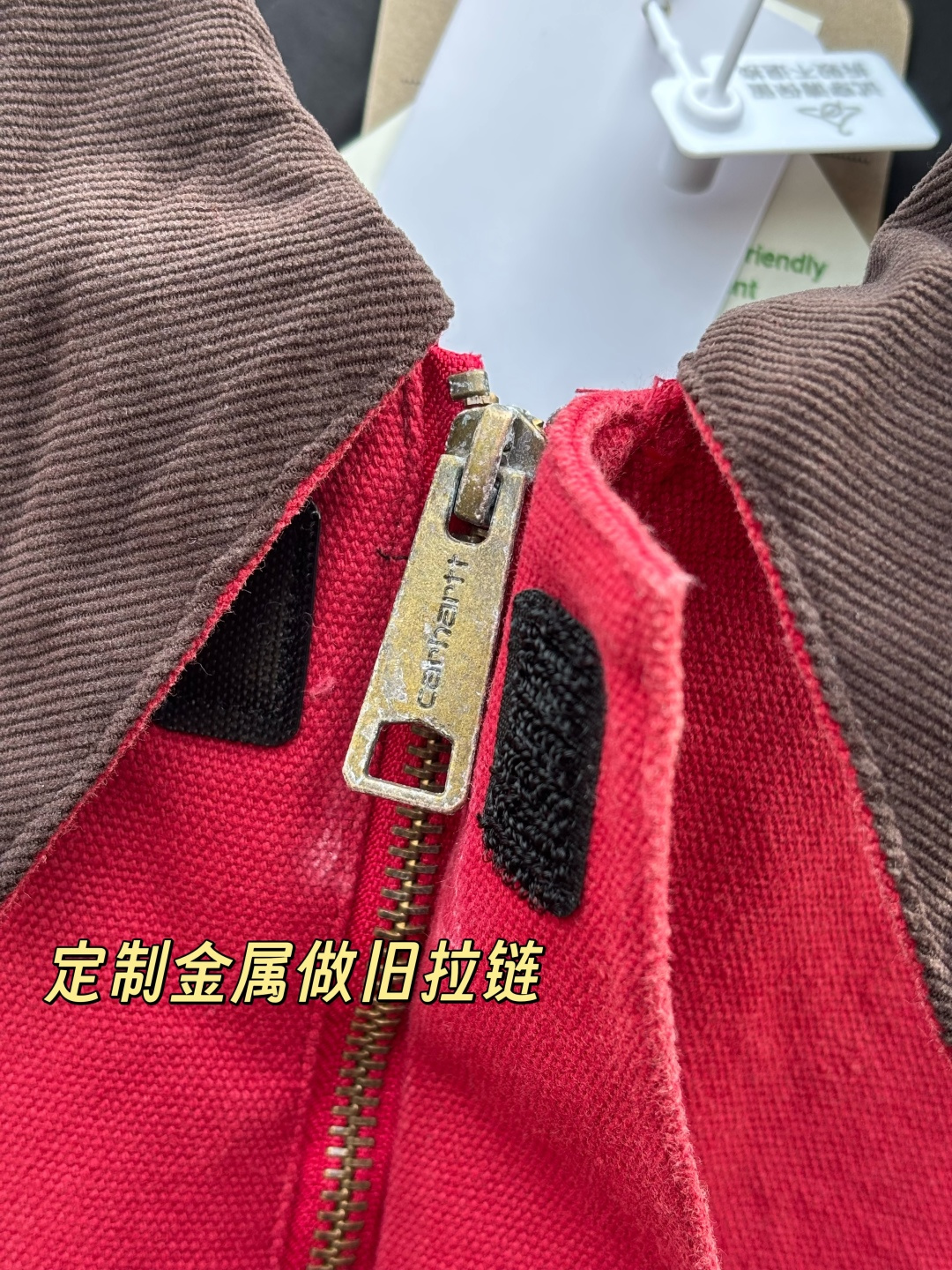 采用水洗做旧效果卡哈特以旧为美夹克版型特点肩部款 衣身短 收腰袖子宽且略长从背面看呈现倒三角形 这些都是美式夹克常见的特点在底特律夹克中被完美呈现及无限放大