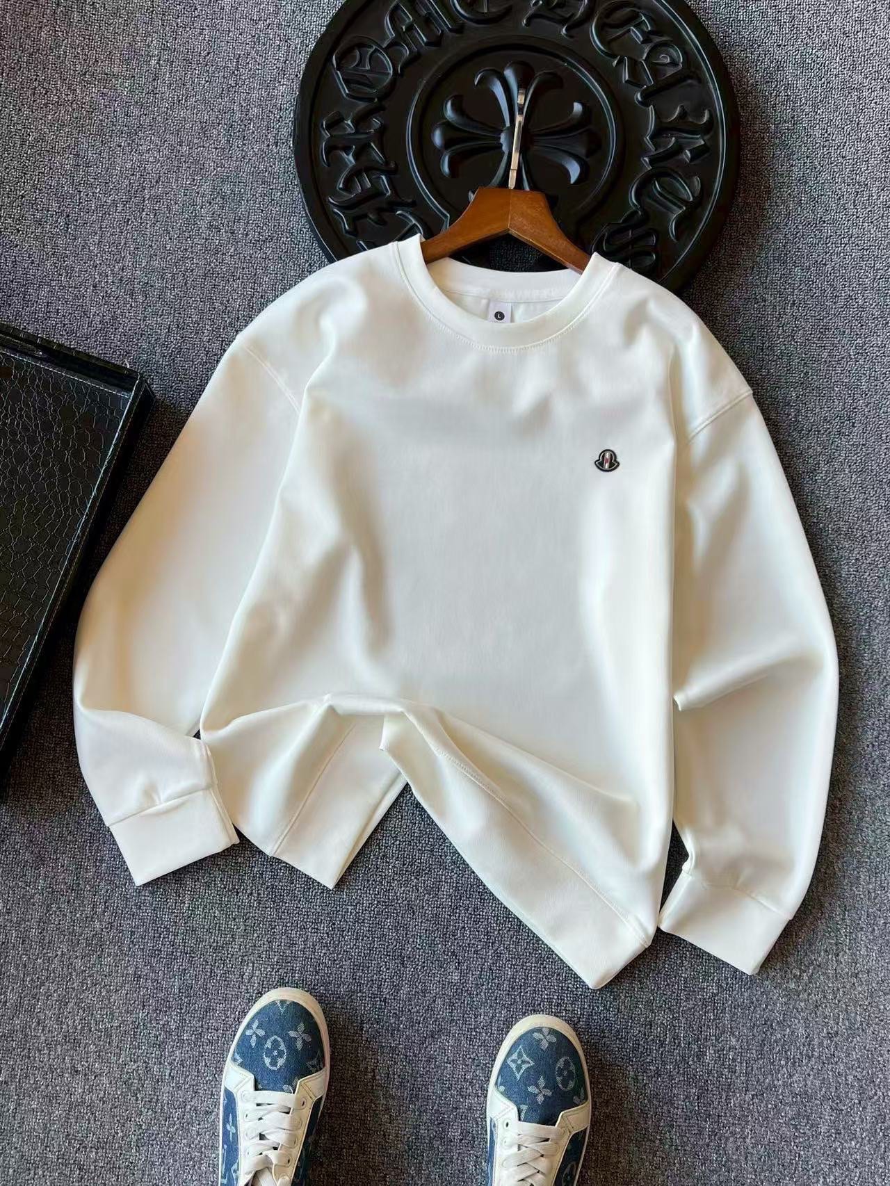 细节细节再细节 Moncler家专柜新品高奢圆领卫衣 全身精致简约 纯正牛奶白 高级黑 水泥灰 摩卡配色 胸前钨钢蒙口金属标 轮廓镶嵌立体浮雕硅胶工艺 中间做了红白分段式细节 十分精致 所有拼接接缝处全部做了双针压线 精湛做工天花板