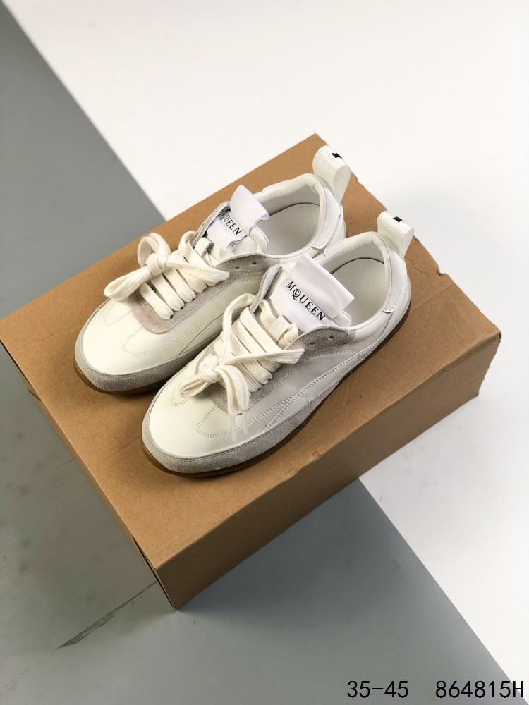 意大利高奢品牌Alexander McQueen亚历山大 麦昆 Sole Leather Sneakers涂鸦 低帮时装厚底休闲运动小白鞋
