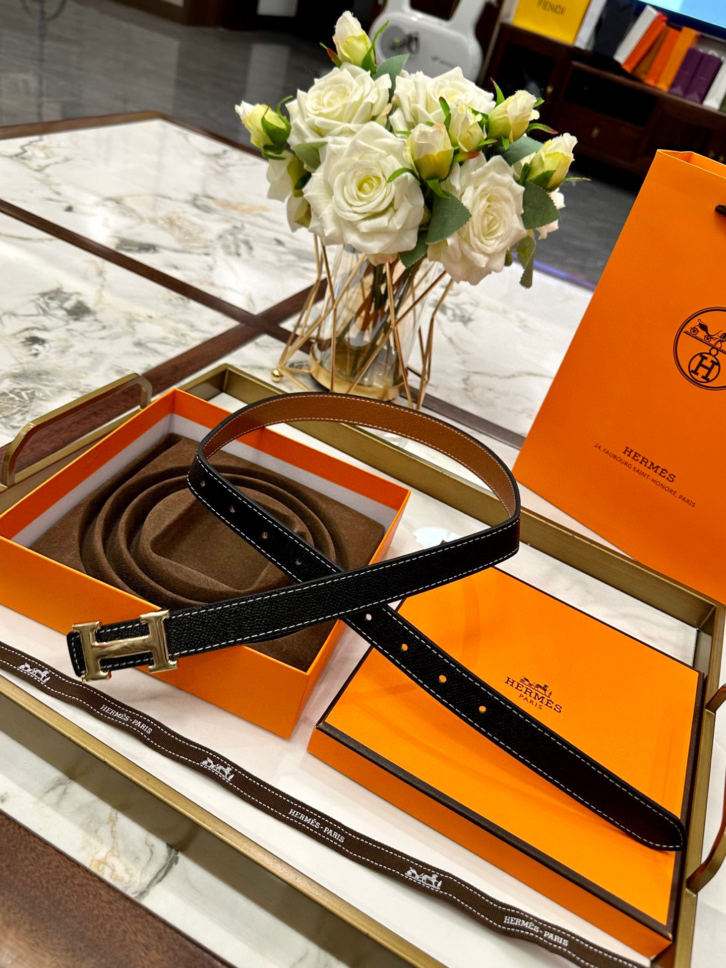 J H p65 配图片原版包装发票 爱马仕腰带专柜爆款皮带强 409556