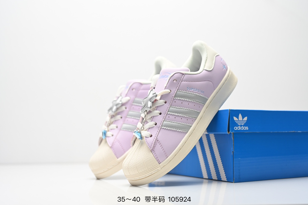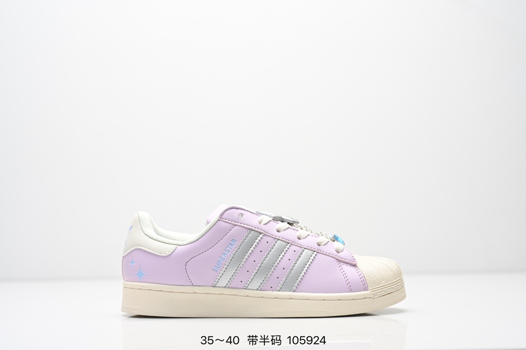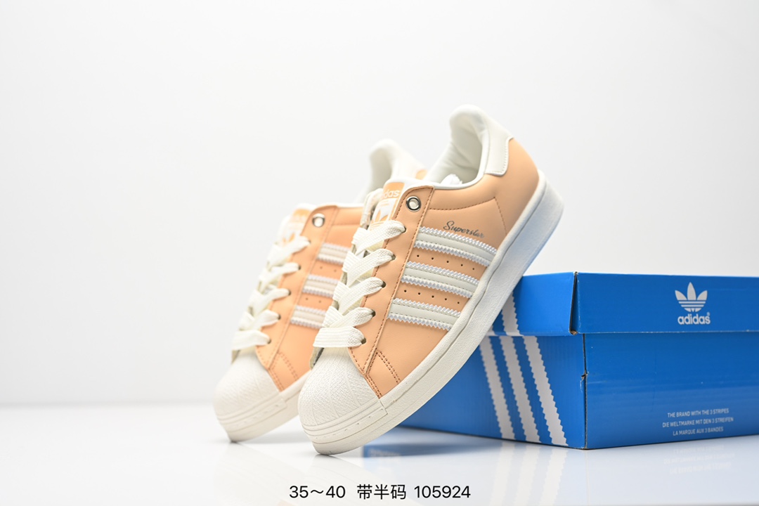 AD Originals Superstar 经典复古贝壳头板鞋 IE5532 诞生于1969年 是第一双将全皮面鞋 身与橡胶鞋头结合在一起的低帮篮球鞋 Superstar最开始 是作为高帮篮球鞋Pro Model的低帮版本而出现的 但因为其独特和醒目的橡胶鞋头造型而让大家熟知 被大家形象地称为 shelltoe 贝壳头 在70年代的美国职业篮球场上 接近3 4的NBA球员都将这双Superstar作为场上用鞋 80年代之后 经过不断的改良和发展 Superstar逐渐成为横跨时装 音乐 街头文化 休闲和运动等各大领域的时尚潮鞋