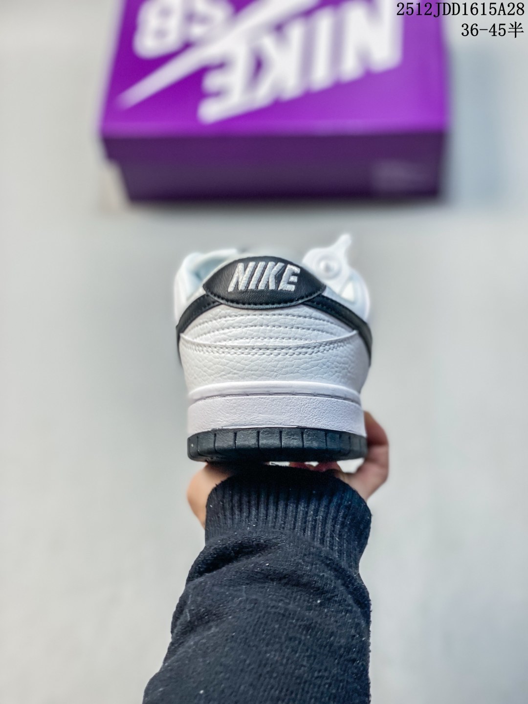 Nike 耐克 男女鞋半码制 更新数据窄楦版型 采用粒面牛剖革鞋面材质 内嵌EVA缓震物料鞋垫 正确双层EVA发泡缓震中底组合RB橡胶外底纯正复古街头韵味 耐克 Nike SB Dunk Low Pro White Black 扣篮系列低帮休闲运动滑板板鞋 皮革白黑钩子 HF3704 100