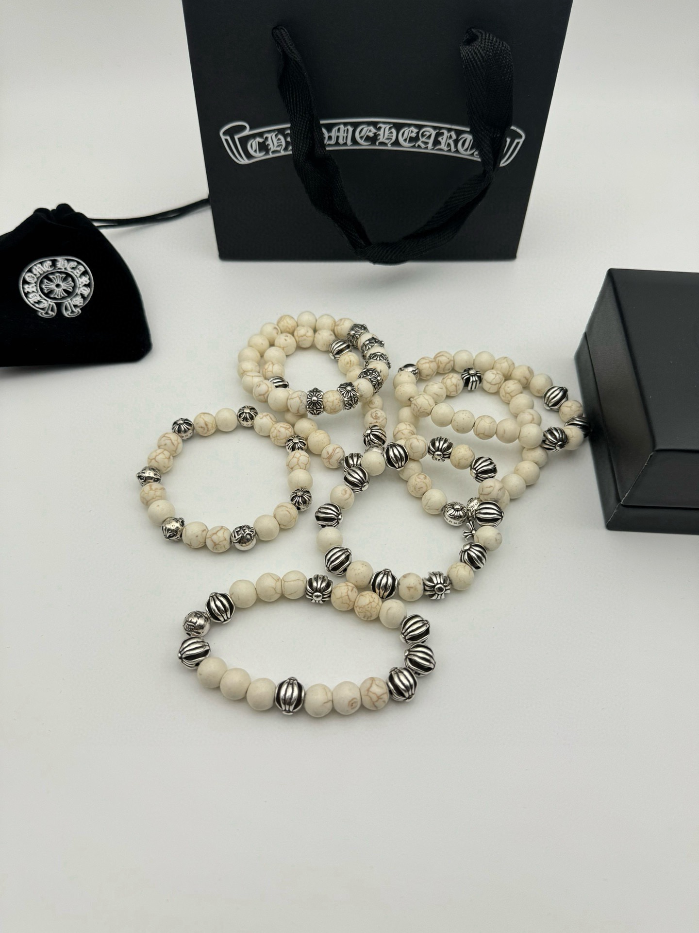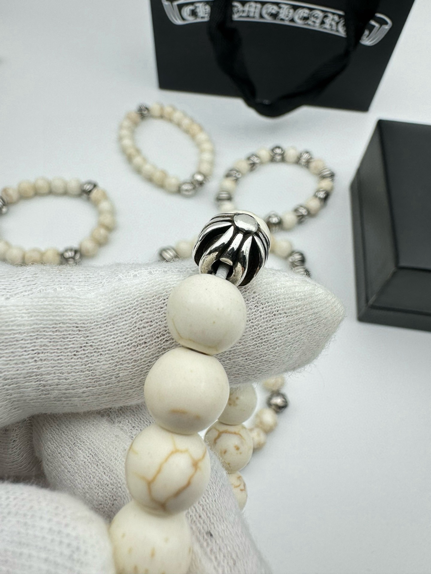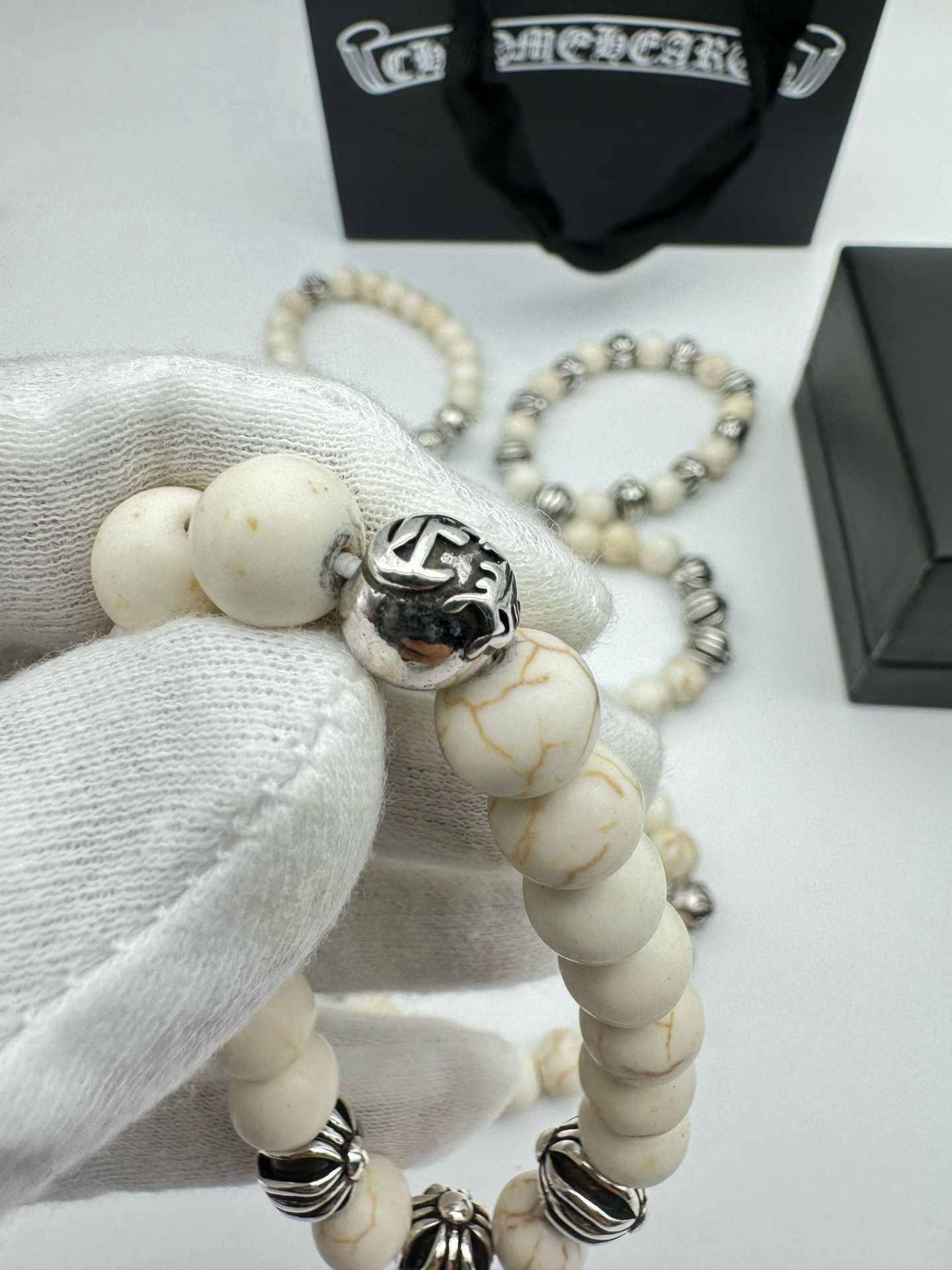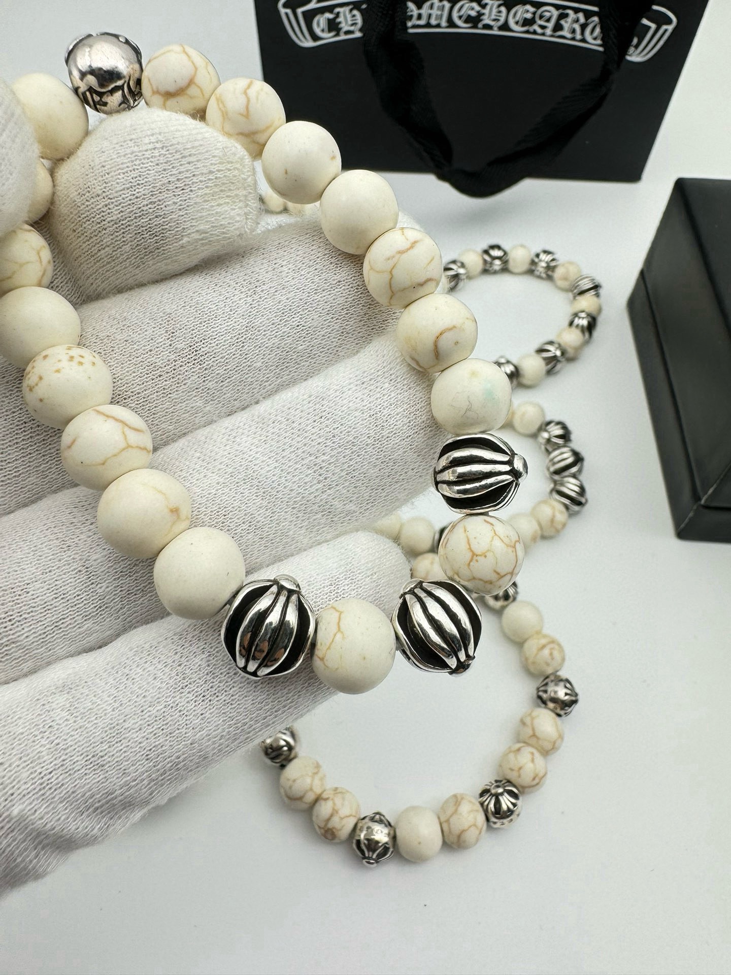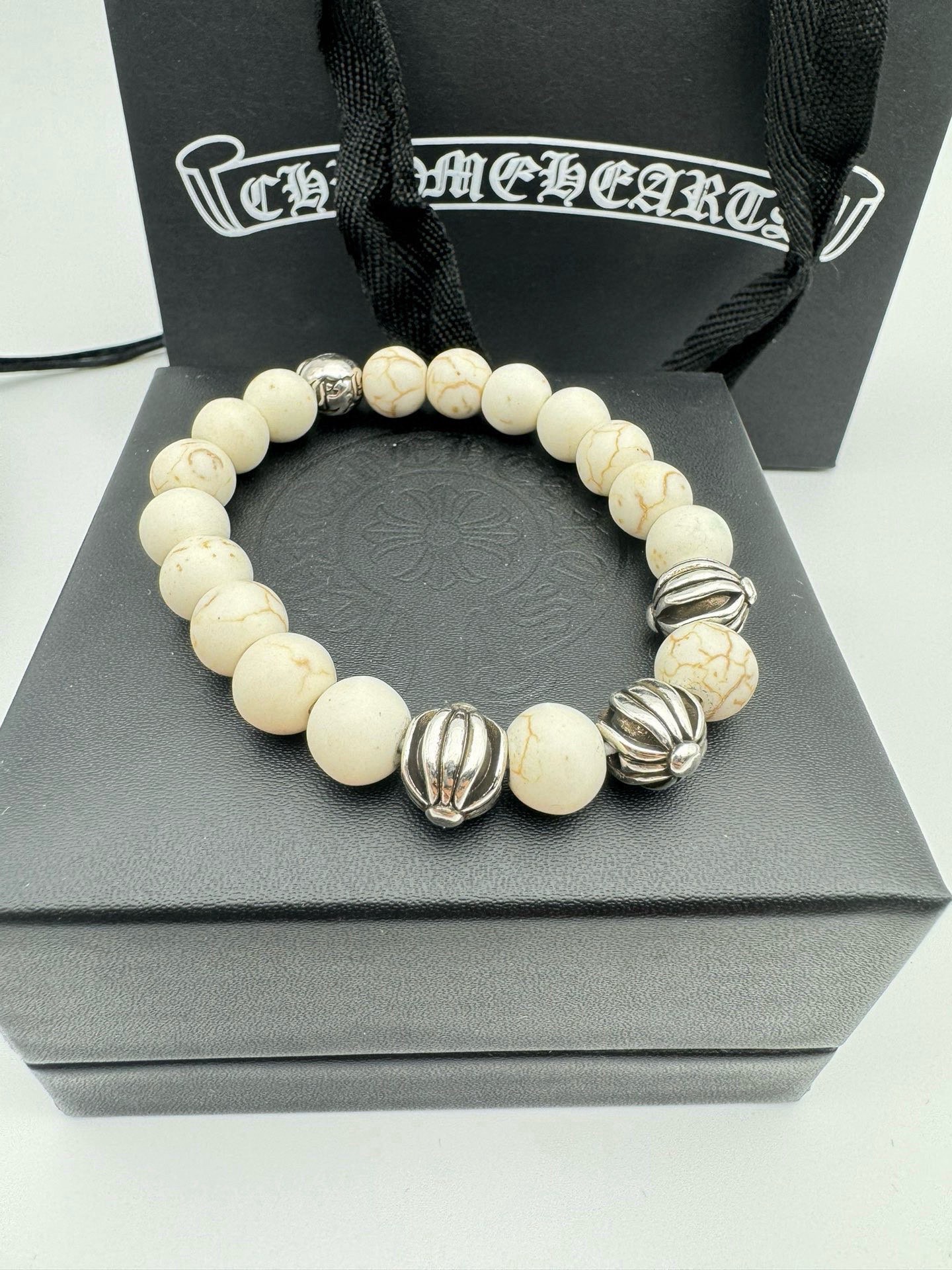 四珠 Chrome hearts克罗心白松石泰银手链