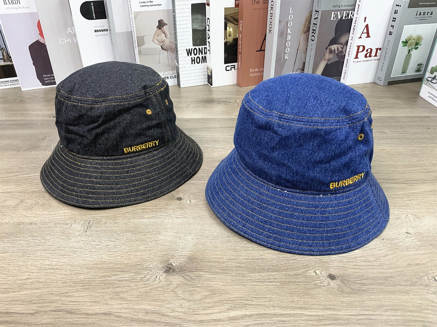 38229945 - BURBERRY牛仔渔夫帽小标刺绣经典盆帽男女休闲帽子百搭