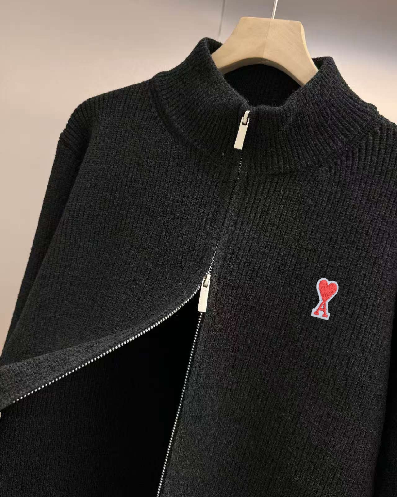 AMI 艾米新款羊毛衫冬季休闲开衫毛衣男士羊毛混纺针织衫男装拉链外套 商务风外套男 男款休闲保暖外套上衣 基础款百搭毛衣好东西 又来了 这一波高端好货必入 这批货拿到手真心是特别的惊喜 不管你买不买 都要认真的看一下 实在太好了 经典又时尚的百搭款 都可以驾驭 绝对好看又好穿的新款羊毛开衫夹克 无敌百搭 人手必入两件 款式上 这款设计很基础随搭 采用进口全棉定织面料 面料厚实 是秋冬的料子 平纹针织 面料平整 抗皱性很好 版型合身剪裁 不是修身紧身版 冬季内里搭配衬衫啥都是很好看的 除了设计以外 版型也必须是它的主打卖点之一 整体简约风格 胸前饱满德国机械刺绣 相当低调有内涵 基础色系经典受欢迎 不管怎么穿都非常好看