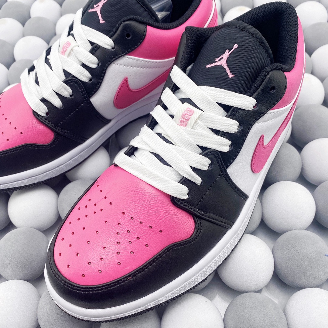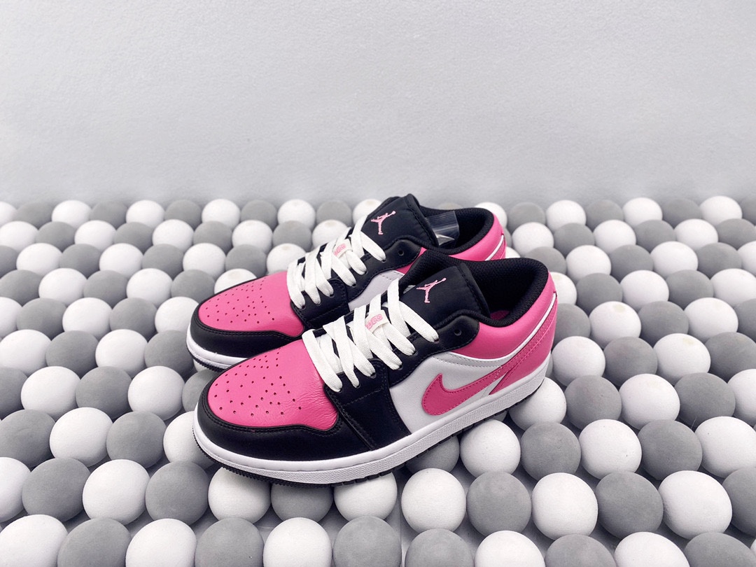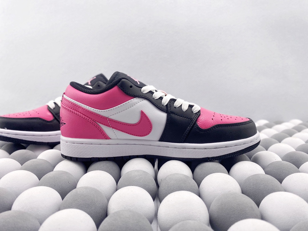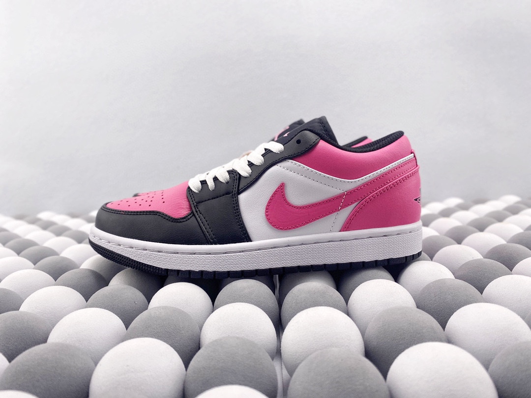 Nike Air Jordan 1 Low 低帮 黑白粉情人节 AJ1 乔丹1代 aj1 乔1 低邦 樱花粉 乔丹篮球鞋系列 鞋款整体以红粉色为主调 穿插以黑 白 粉让鞋整体搭配更加靓丽 鞋面材质也颇为丰富优质皮革和织物面料的组合拼接 鞋舌上Jumpfman Logo辅以红粉色点缀 最大的亮点在于鞋面外侧印有非常醒目白色和红粉色Swoosh Logo 后跟粉色底色Wingsd Logo以黑色刺绣呈现 整双鞋的个性程度与辨识度都明显提升