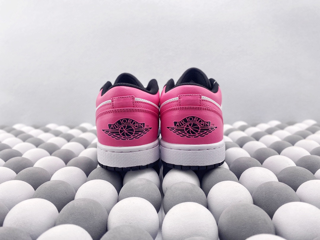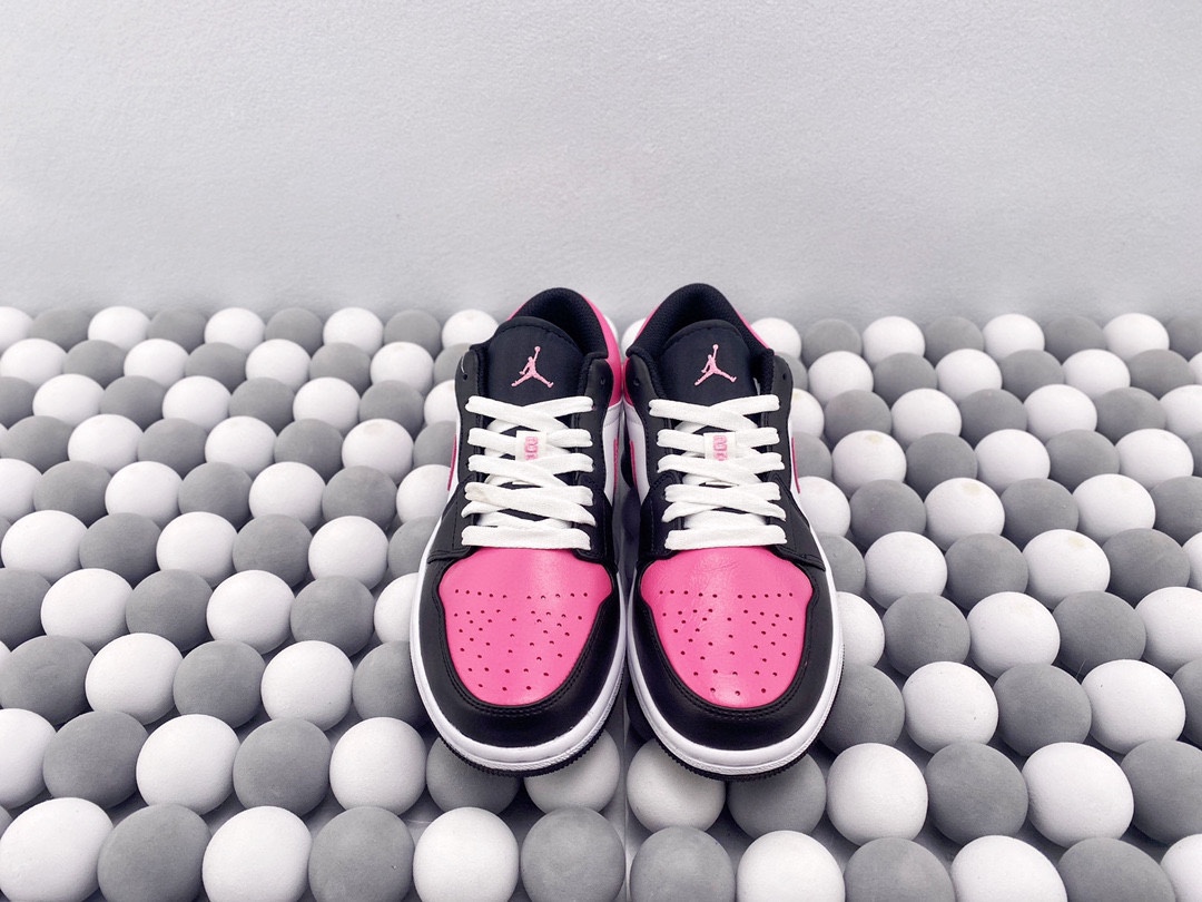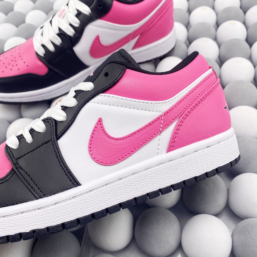 Nike Air Jordan 1 Low 低帮 黑白粉情人节 AJ1 乔丹1代 aj1 乔1 低邦 樱花粉 乔丹篮球鞋系列 鞋款整体以红粉色为主调 穿插以黑 白 粉让鞋整体搭配更加靓丽 鞋面材质也颇为丰富优质皮革和织物面料的组合拼接 鞋舌上Jumpfman Logo辅以红粉色点缀 最大的亮点在于鞋面外侧印有非常醒目白色和红粉色Swoosh Logo 后跟粉色底色Wingsd Logo以黑色刺绣呈现 整双鞋的个性程度与辨识度都明显提升