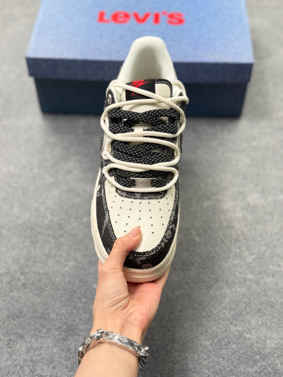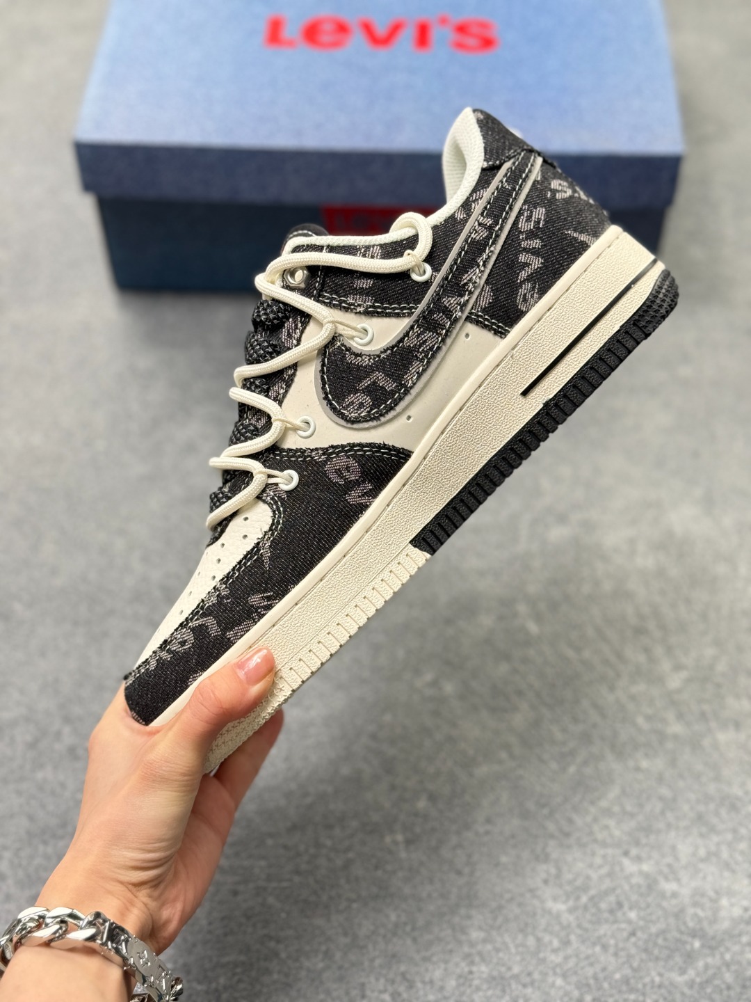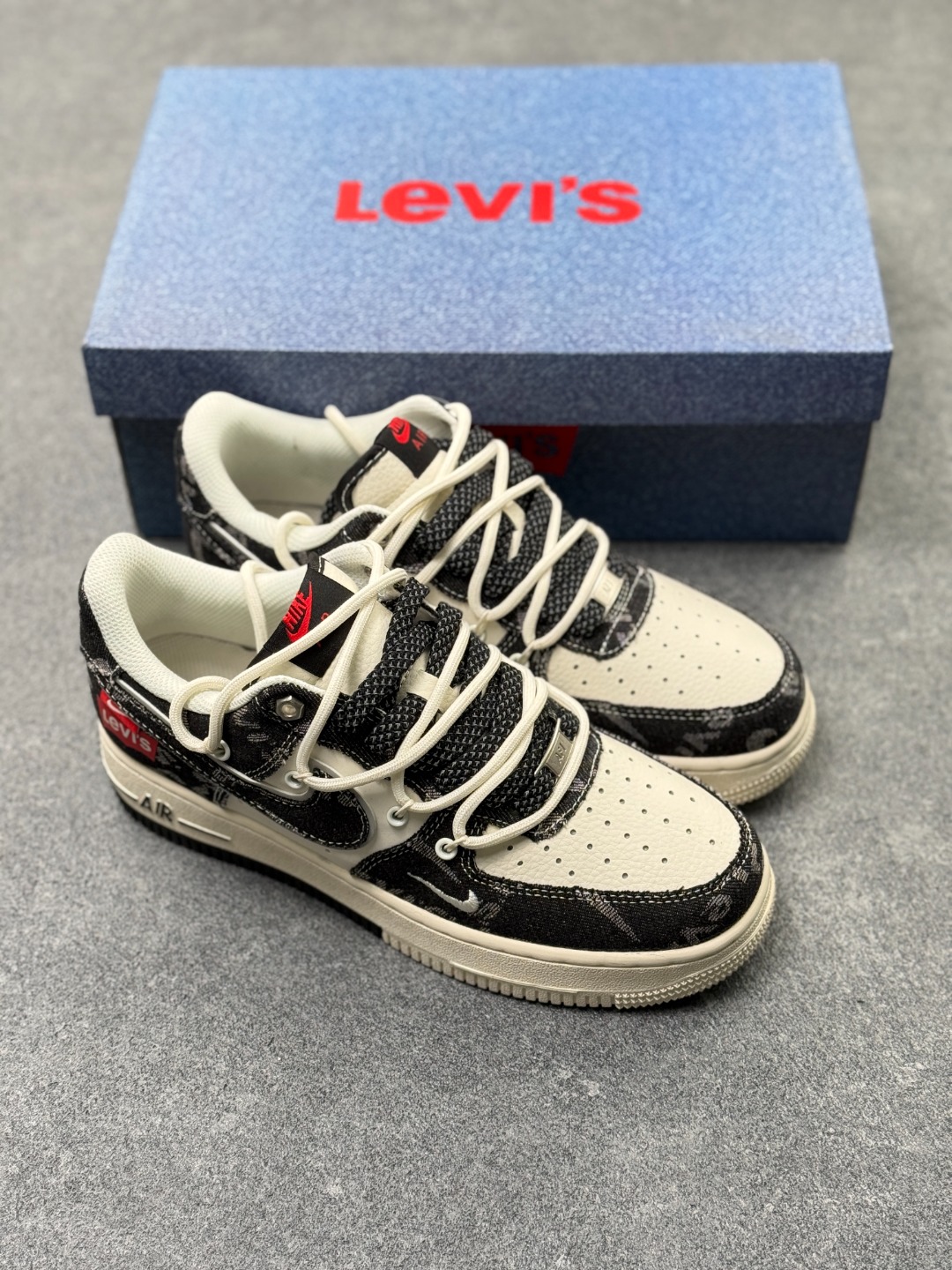 海外限量发售 公司级NIke Air Force 1 07 Low 李维斯联名 黑牛仔抽绳 空军一号 低帮 运动鞋 休闲鞋 折边针车 工艺难度大 原楦头原纸板 原装鞋盒 定制五金配件 内置全掌气垫 原厂鞋底