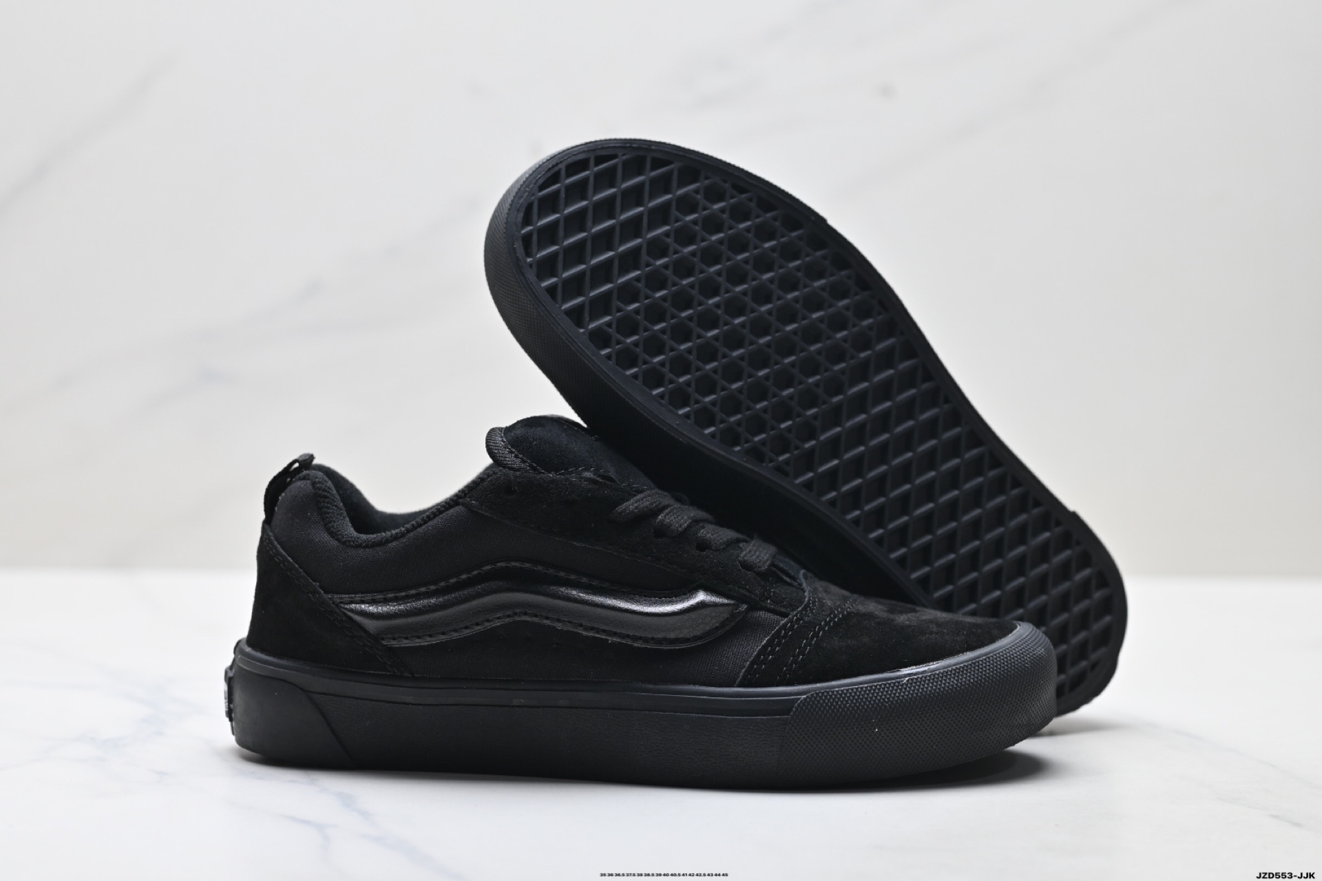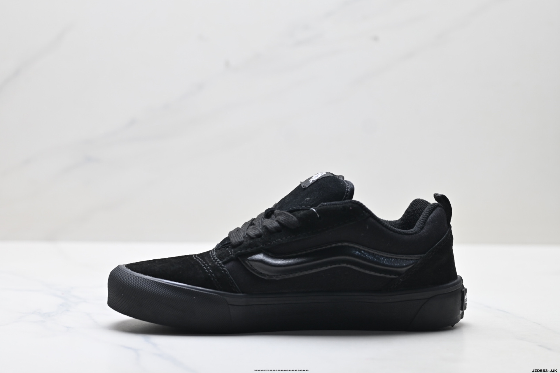 与 OG 版本的 Knu Skool 稍有不同的是 Knu Skool 轻薄的鞋底改为更加防滑的硫化华夫格鞋底 包边加宽加厚 这一变动是致敬 90 年代 Vans 经典鞋款以及顺应当下厚重的面包鞋外观 本系列新品也遵循了这一规格 外观复古又增强了上脚舒适度