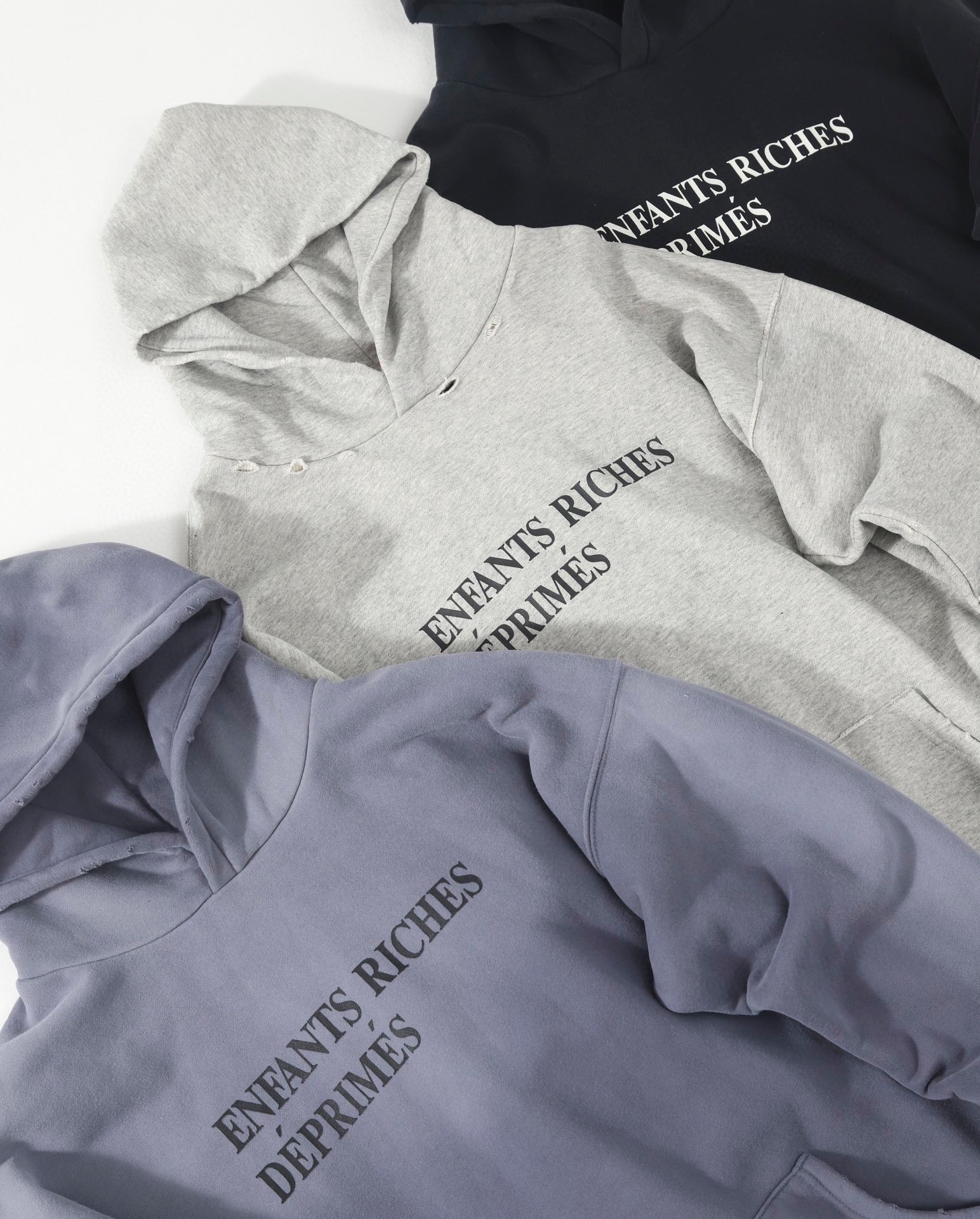 Enfants Riches Deprimes ERD忧郁的富二代字母印花Vintage水洗做旧破坏重磅高街加绒连帽卫衣 男女同款