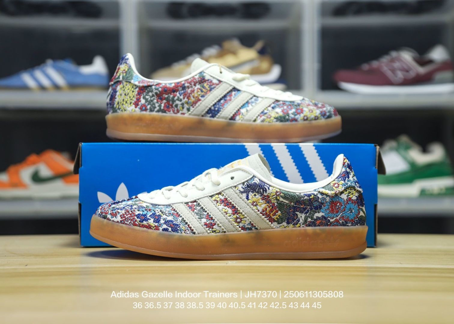 Adidas 阿迪达斯 德训系列 男女鞋半码制 原楦开发版型 采用猪巴革组合环保纤维革鞋面材质 内环保海玻璃鞋垫 外置RB橡胶大底将复古进行到底 阿迪达斯Adidas Gazelle Indoor Trainers 羚羊内训系列低帮复古百搭休闲运动德训风板鞋 JH7370
