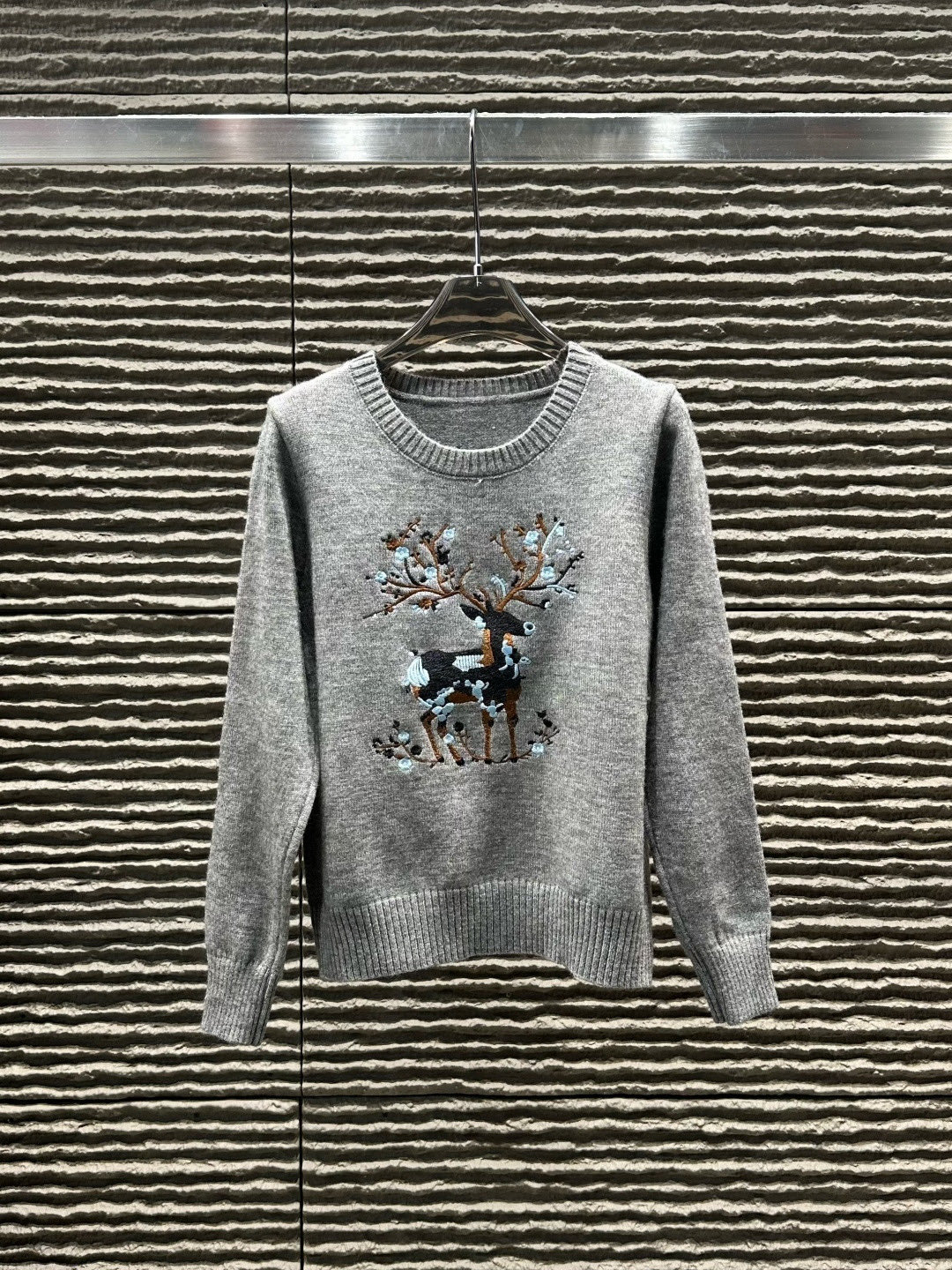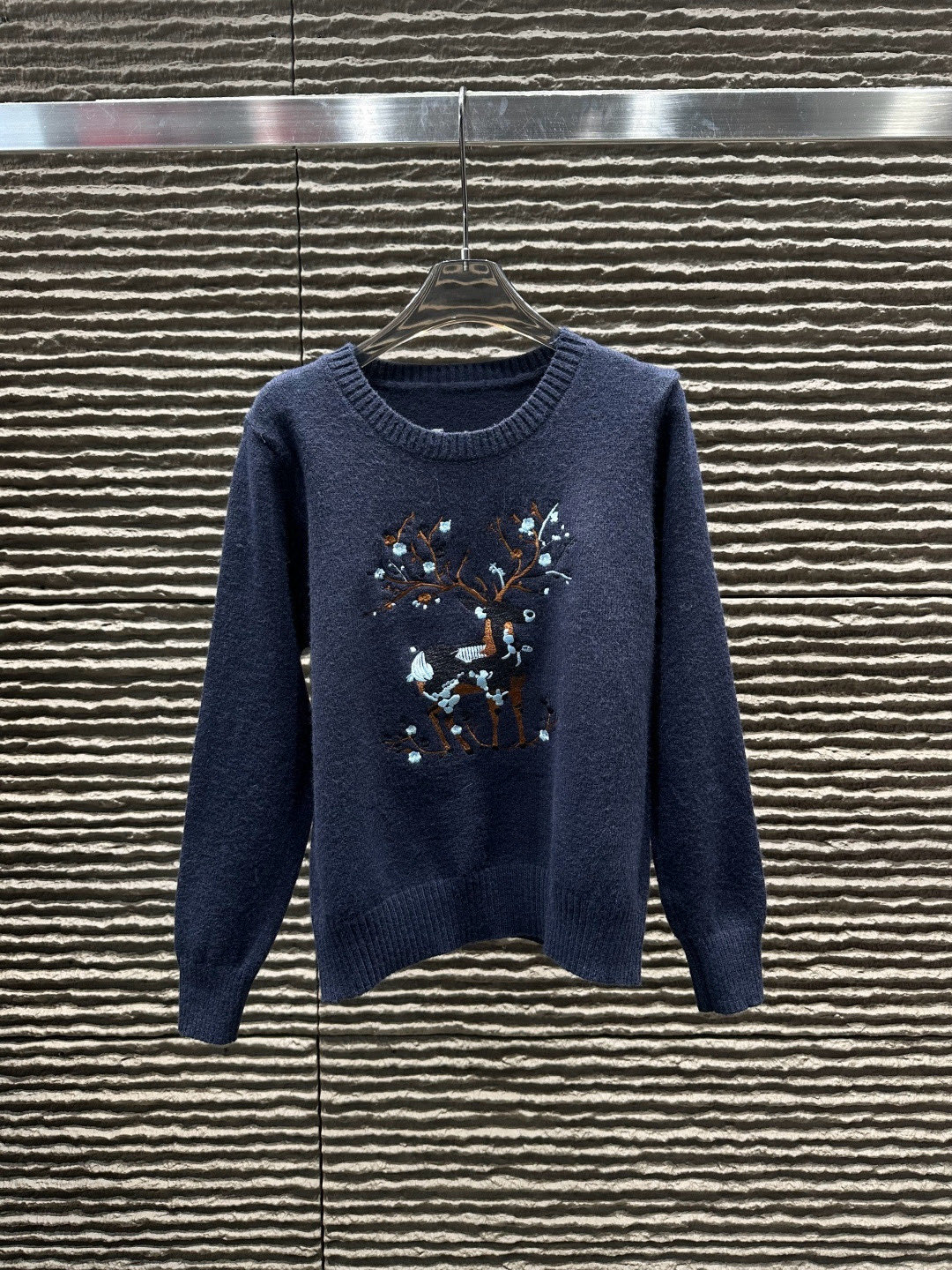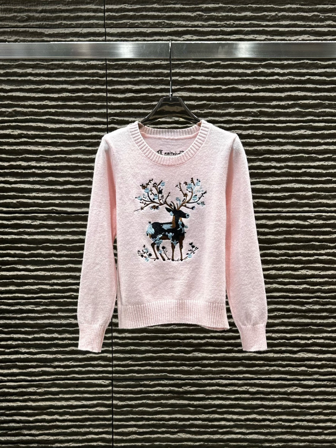 Dior迪奥小鹿重工刺绣圆领长袖针织毛衣