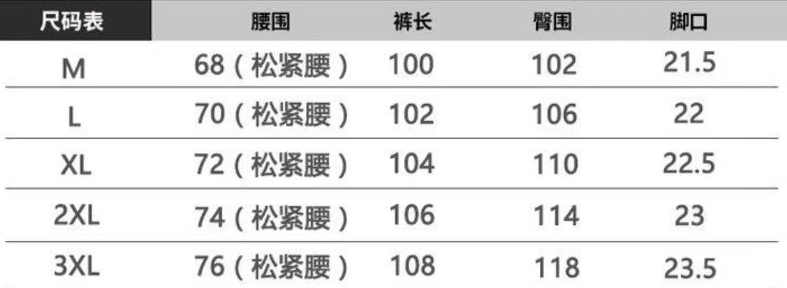 尺码M 3XL