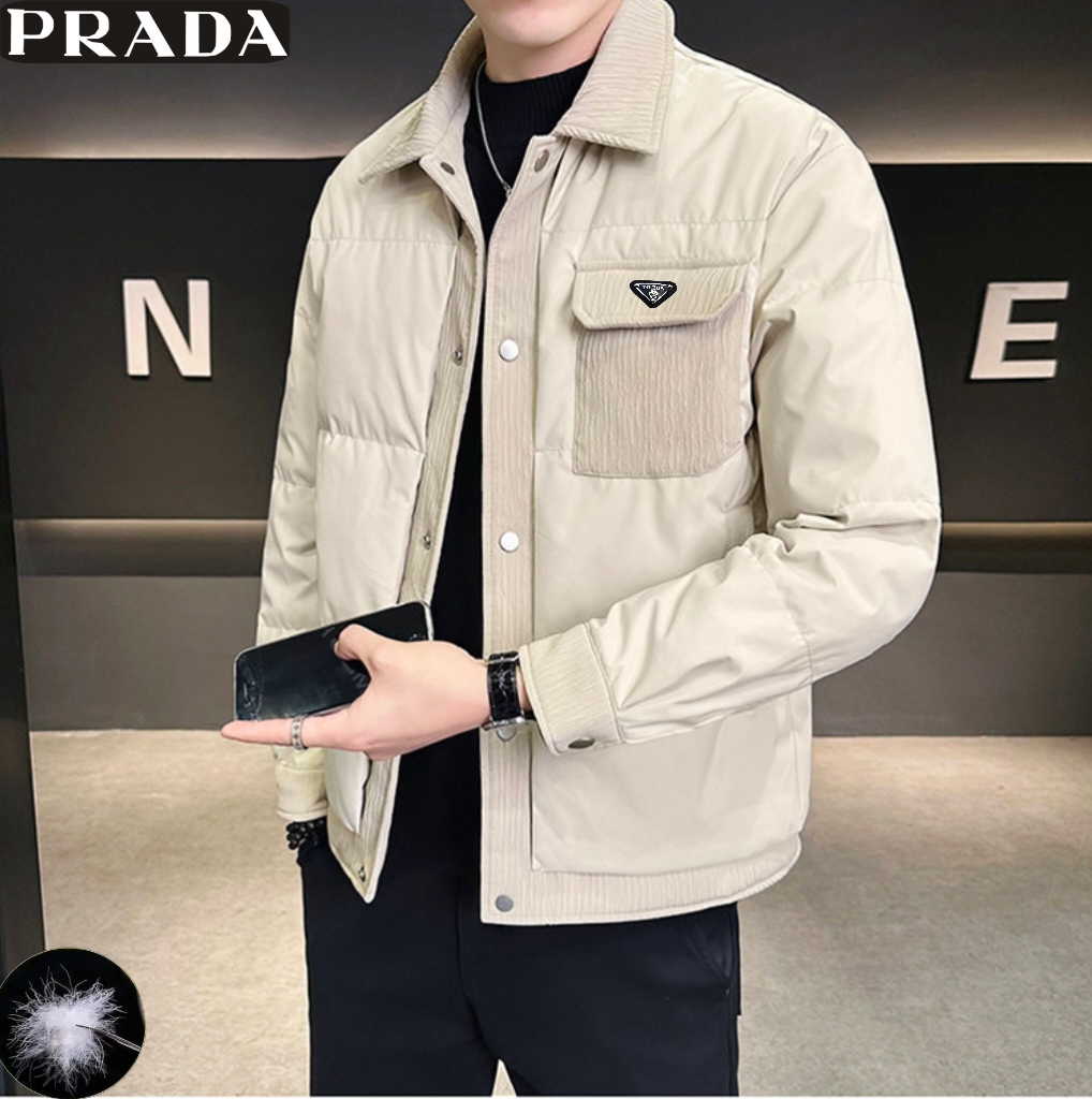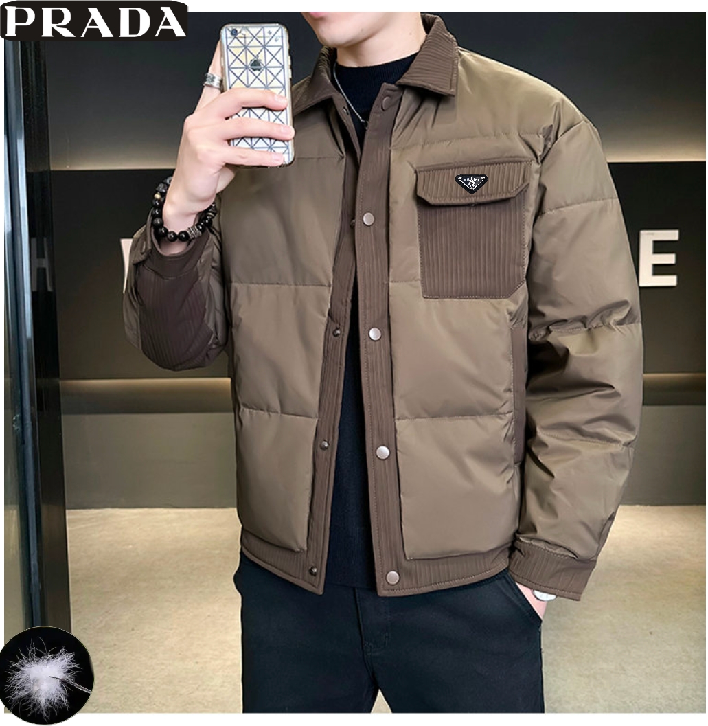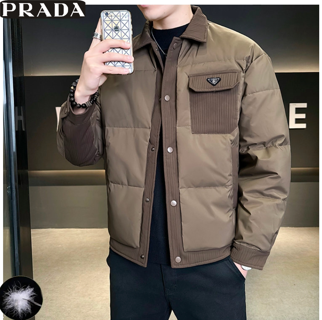 普拉达Prada冬季新款 男士高品质拼接50绒户外休闲时尚保暖工装羽绒外套 男士羽绒服