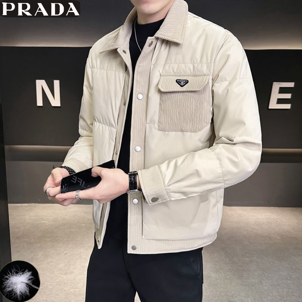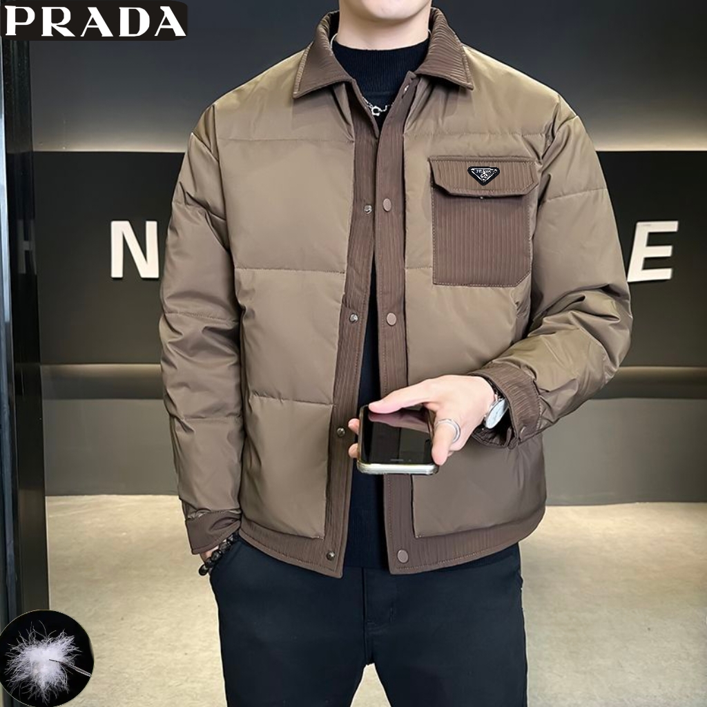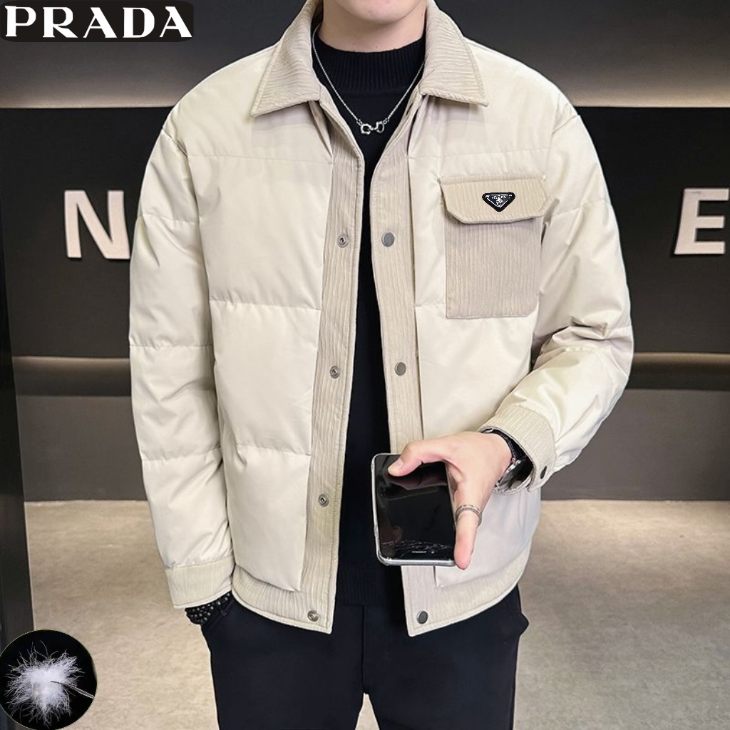 普拉达Prada冬季新款 男士高品质拼接50绒户外休闲时尚保暖工装羽绒外套 男士羽绒服