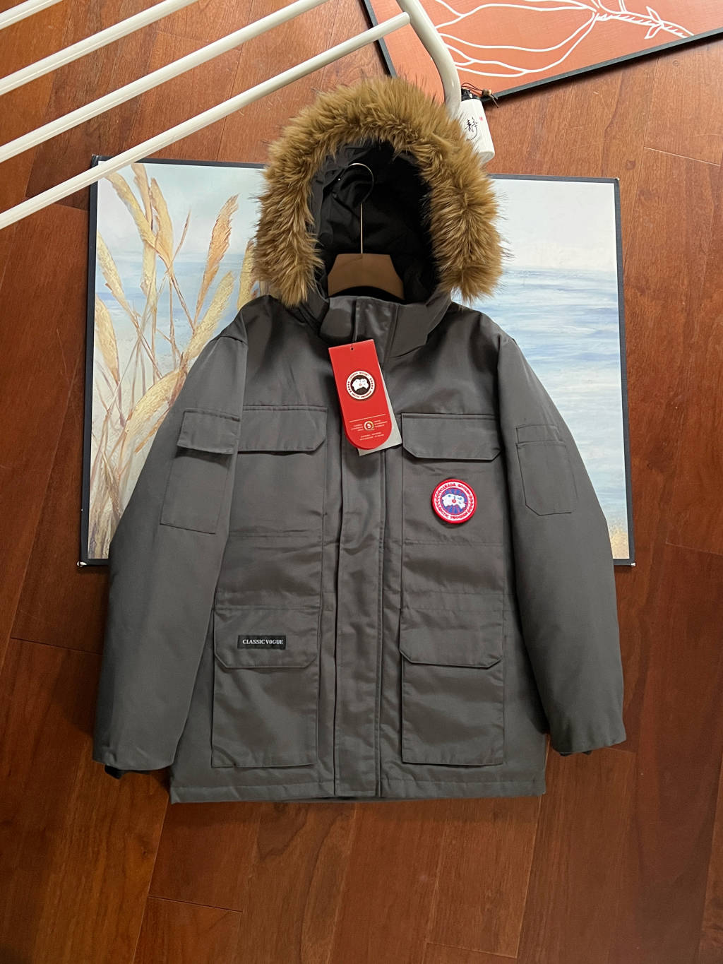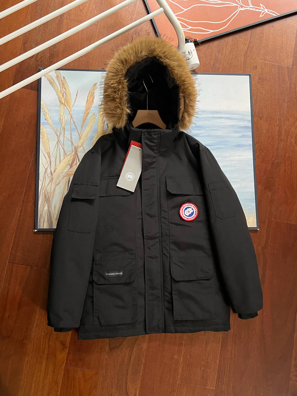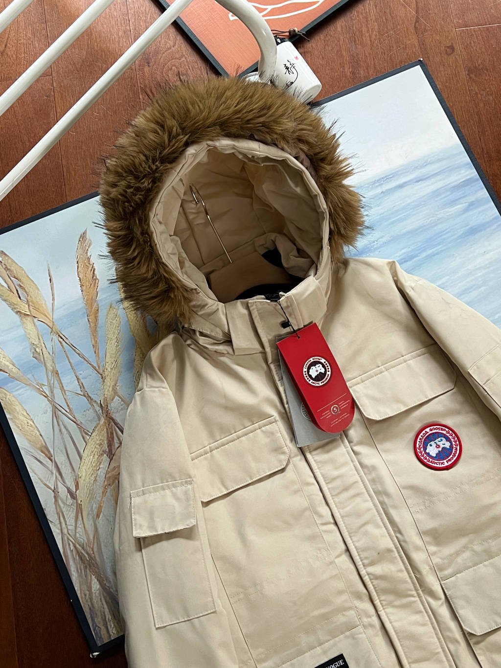 细节 胸口大鹅logo标 全新开发定制 对色对纱线材质 图案饱满且枫叶形状可对比正品原标 无差异 今年新款口袋处无打枣设计 区别去年设计 区别市面看图做货版本 领标与水洗标也全部按正版进行了重新的打版设计 区别看图做货版本 今年的版型也都重新开版设计 对比市面可知区别