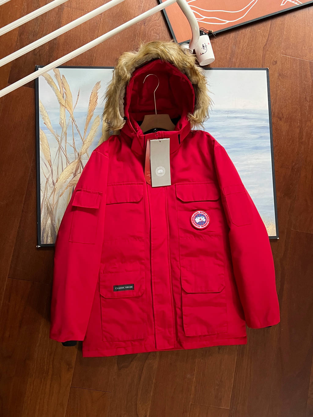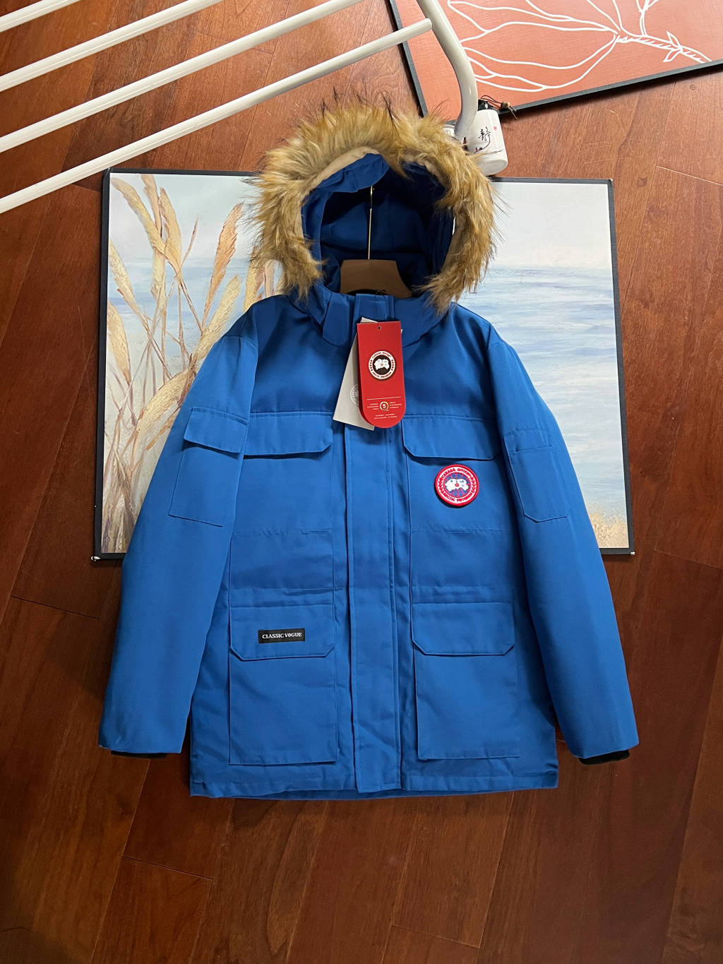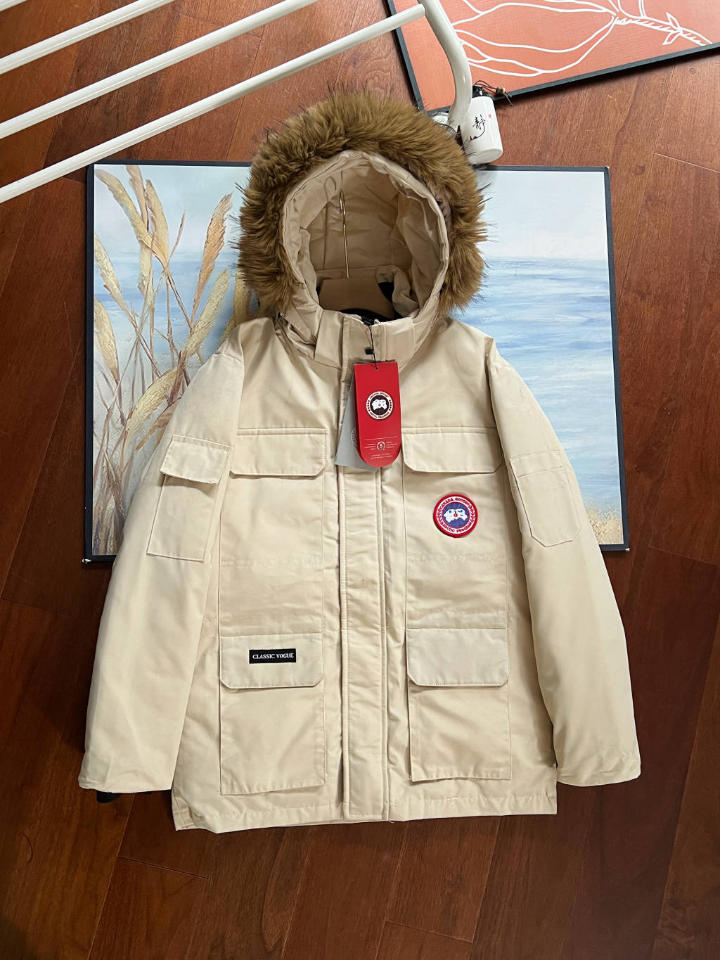 细节 胸口大鹅logo标 全新开发定制 对色对纱线材质 图案饱满且枫叶形状可对比正品原标 无差异 今年新款口袋处无打枣设计 区别去年设计 区别市面看图做货版本 领标与水洗标也全部按正版进行了重新的打版设计 区别看图做货版本 今年的版型也都重新开版设计 对比市面可知区别