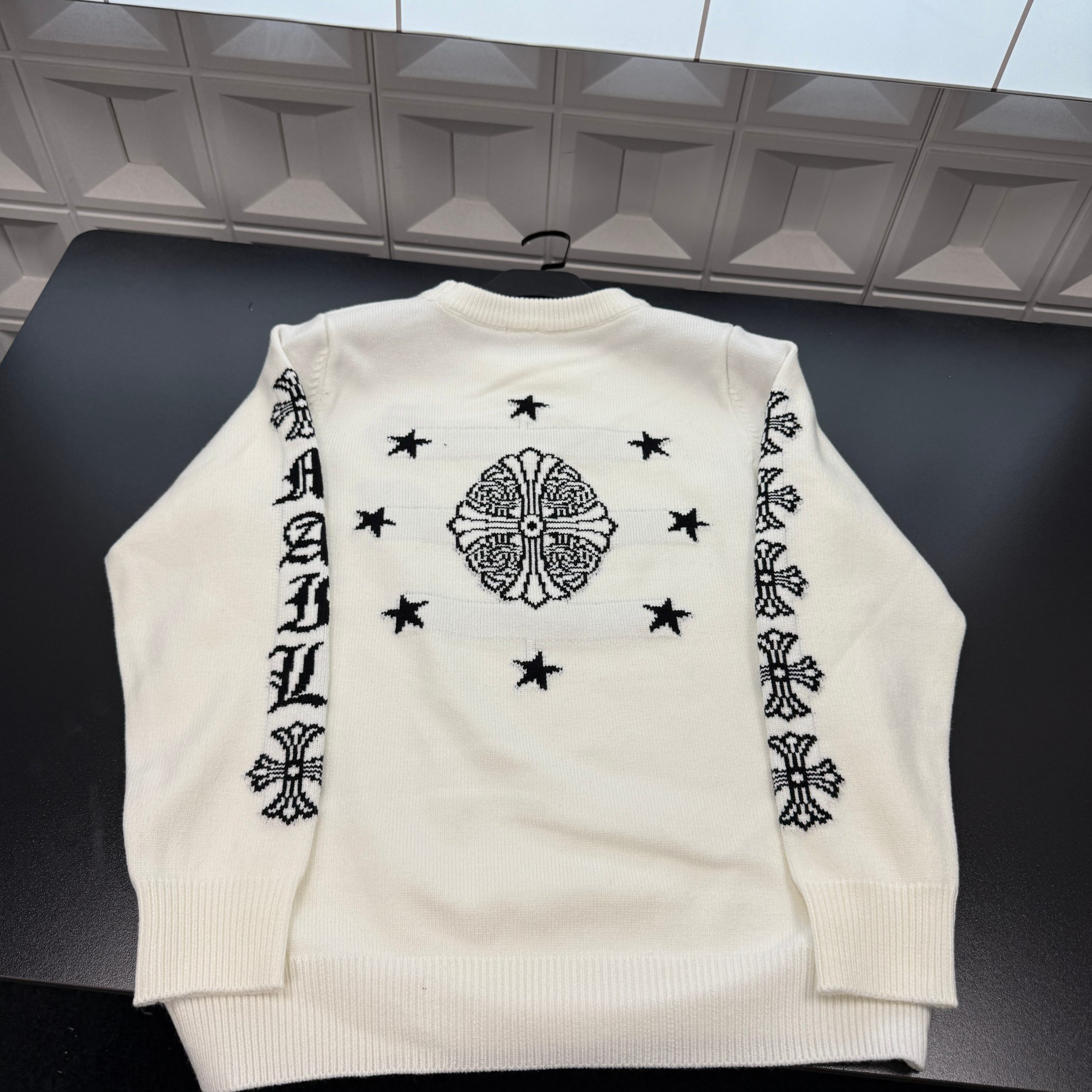 春季新款上新爆炸输出克罗心针织毛衣 后背十字架 满印星星图案 三标齐全官网一致 放大看细节原相机实物拍摄 颜色 白色 尺码 L 4xl L 80 105斤 XL 105 120斤 2XL 120 140斤 3XL 140 160斤 4XL 160 180斤