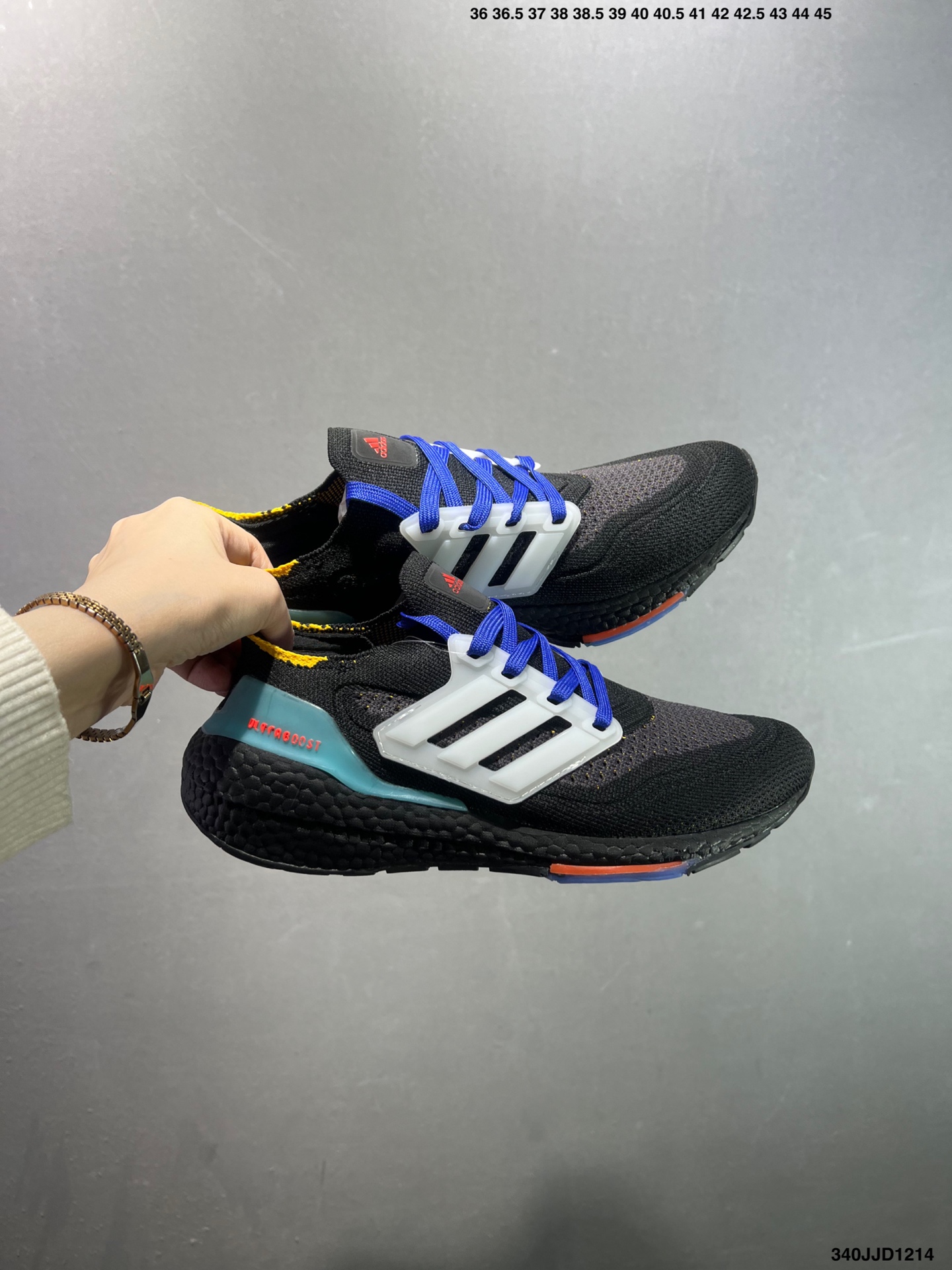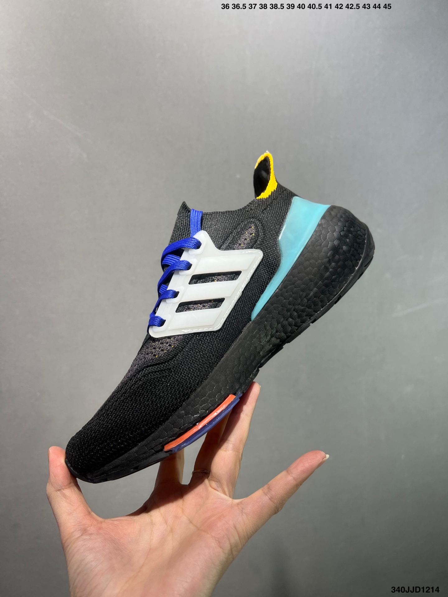 阿迪达斯Adidas UltraBoost 21 加厚爆米花袜套式针织鞋面休闲运动慢跑鞋 UB7 0 爆米花 新一代的ulrtra boost 21在中底的部分添加了更多的boost材质面积 除了部分标志性的细节处外 这次更新的款式以前凸后翘的流线型呈现 中底的支撑片也变成了造型奇特的U型 鞋子设计十分有速度感